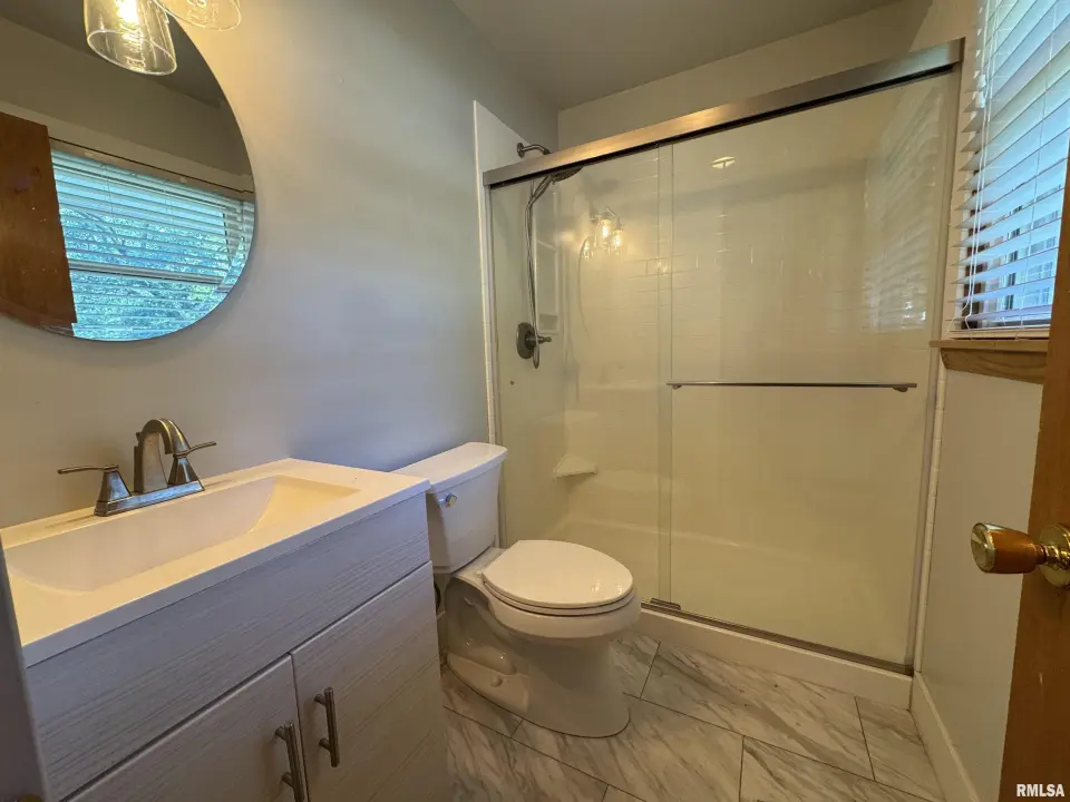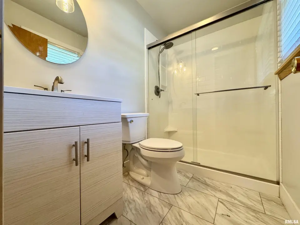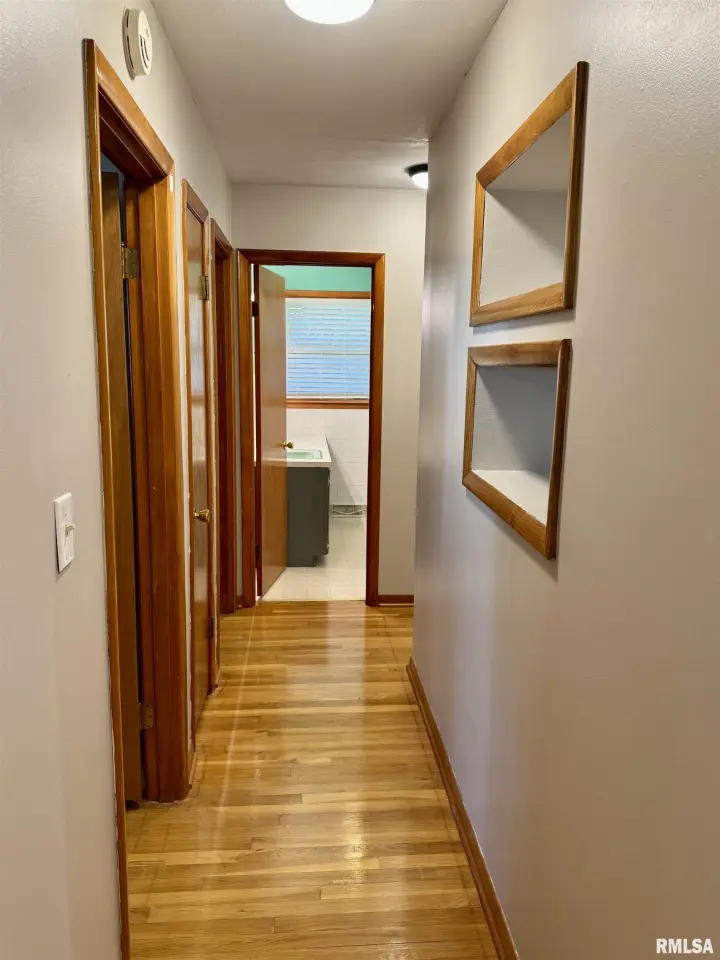 The primary bedroom has a large closet with floor to ceiling closet doors and has an updated attached bath with a tiled walk-in shower. The two other main floor bedrooms are good sized with large closets as well. The 11X20 eat in kitchen has solid hardwood cabinetry and has plenty of potential for more if needed. The second bathroom has original tile and cabinetry from the 60's. Working from home will be easy in the finished den located in the basement. There's also a finished family room, a large storage room with shelving and separate laundry room. Notables: Water proofing system 2010, windows 2016, Primary bath 2017, Basement wall and tile 2017, Kitchen upgrades 2017, HVAC 2019 and Radon System.