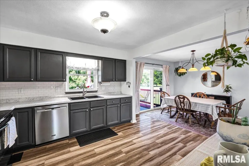 Featuring 3 bedrooms on the main floor and a 4th bedroom in the walk-out lower level, this home provides ample space for family living, guests, or a home office setup. Enjoy an abundance of natural light throughout the main living areas, accentuated by updated vinyl flooring in the kitchen, dining, and living rooms. The kitchen shines with a stylish tile backsplash and flows seamlessly into the dining area, perfect for everyday meals or entertaining. Step outside to your level, fenced-in backyard ? ideal for pets, play, or relaxing weekends. Outdoor living is a breeze with both a patio and a deck, offering versatile space for gatherings or quiet evenings. Additional highlights include: Updated roof and windows (2021), water heater (2018), generous storage space in the garage, walk-out lower level with direct access to the backyard. This home combines charm, updates, and practicality ? a must-see for anyone looking for space, light, and a move-in ready property!