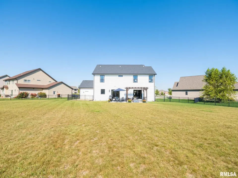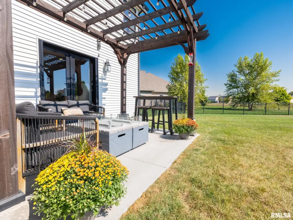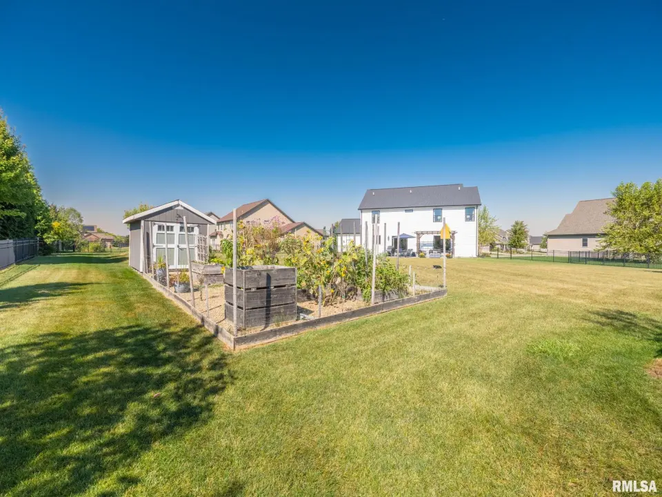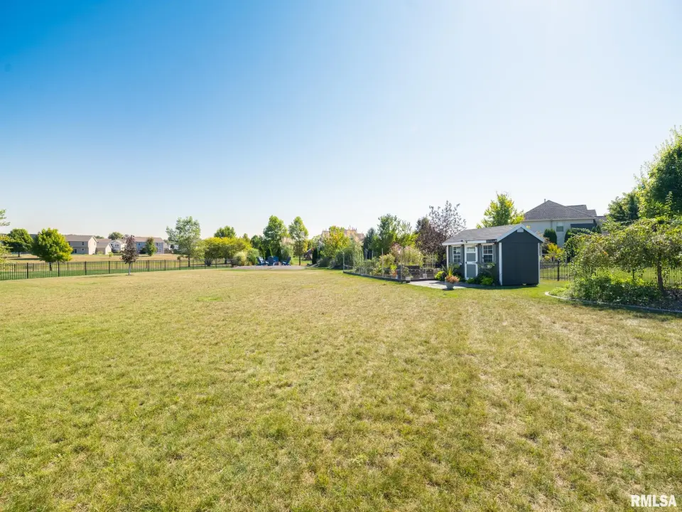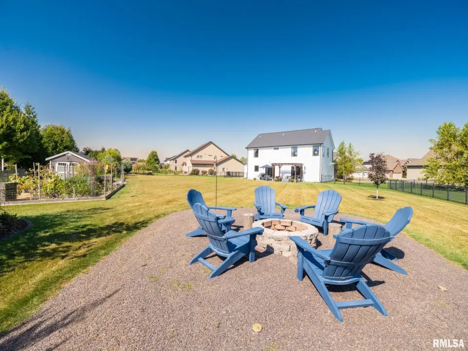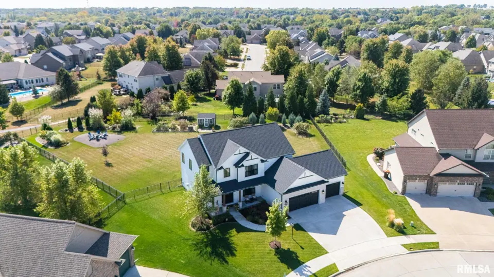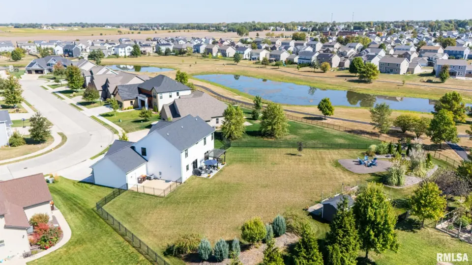 Buyers will love the open concept layout that features a great room with focal point shiplap and tile fireplace, and built in bookshelves. Beautiful informal dining space that flows into the custom kitchen offering an extra large island with seating, white shaker cabinets, stainless steel appliances, tile backsplash, quartz countertops, and a spacious pantry. Flex space on the main level with French doors could be used for an office or formal dining space. Main floor also features a convenient mud room and 1/2 bath. The tidy 3 stall garage includes a pet sink. Upstairs offers 3 beds that share a full bathroom with double vanity and a separate convenient laundry room. The primary suite is sure to please with vaulted ceilings, pond views, walk-in closet with additional storage, and en-suite full bath with double vanity, custom walk-in tile shower, and bonus makeup vanity. The mostly finished basement with 9ft ceilings has even more square footage with a large rec room that includes a custom wet bar, 3rd full bathroom, and 5th bedroom. Double sets of French doors in the great room open up to the true showstopper-the backyard! Fully fenced and beautifully landscaped, this spacious lot features a stamped concrete patio, fire pit area, raised flower garden, and darling shed. Buyers will truly love all the customization and attention to detail that this home offers!
