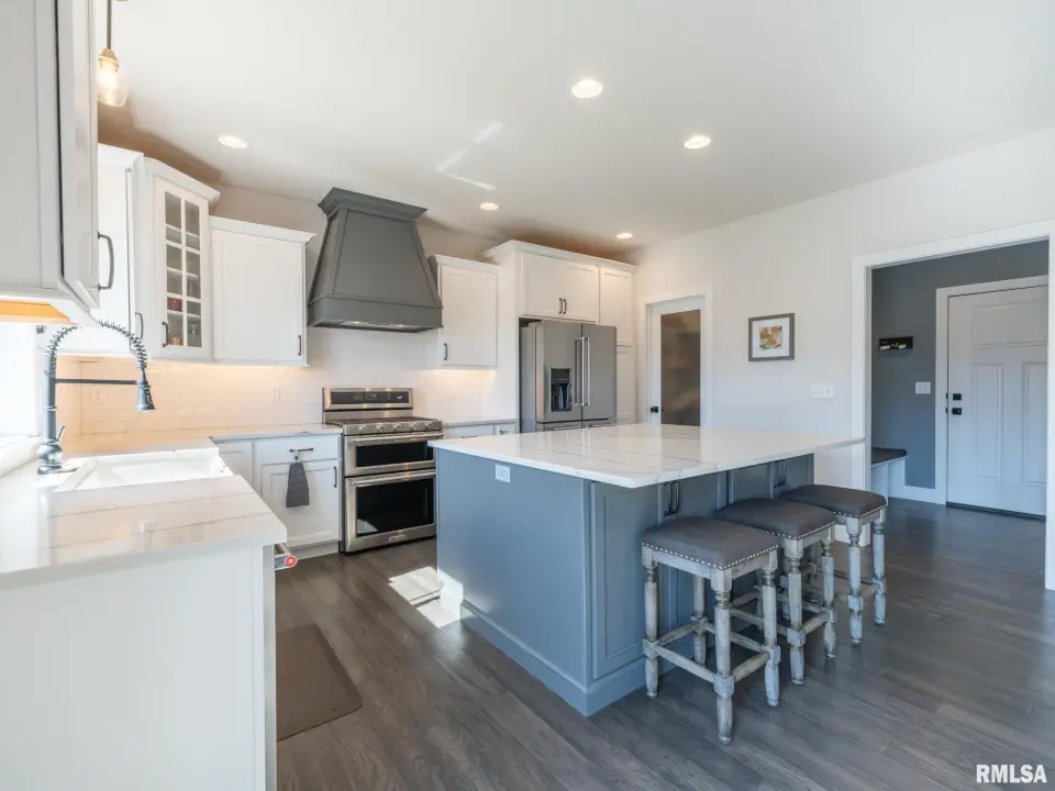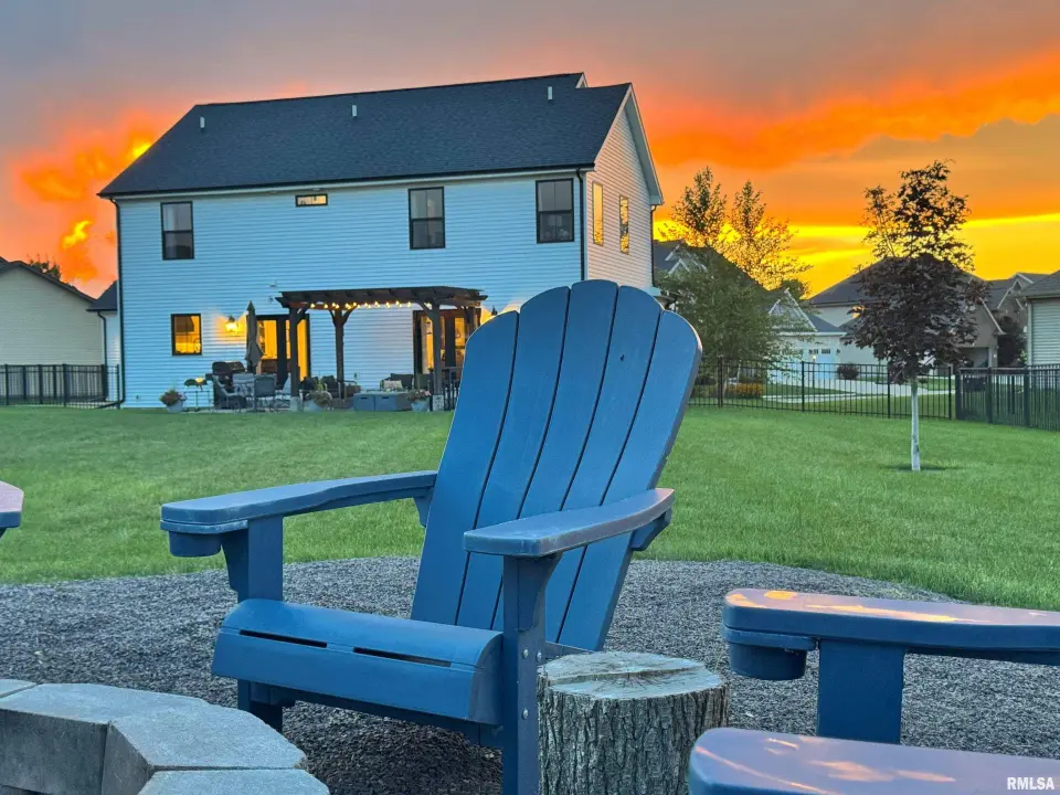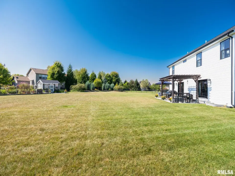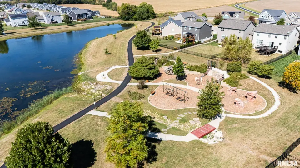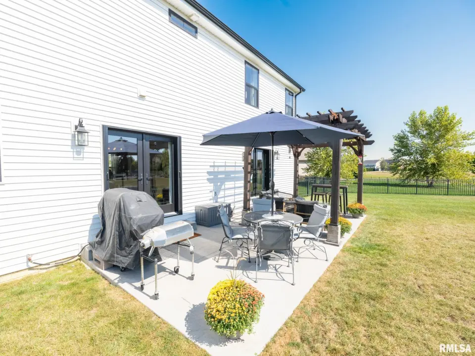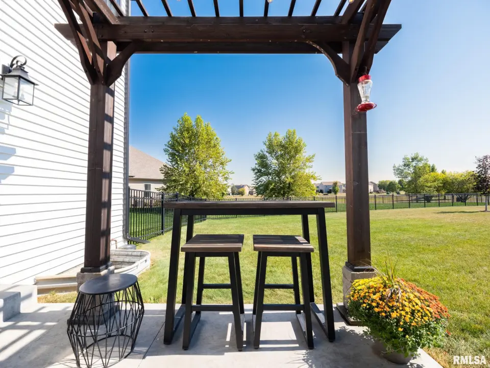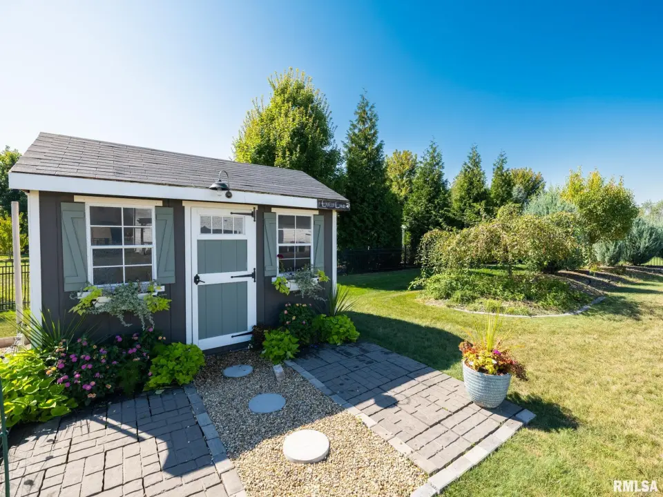 Buyers will love the open concept layout that features a great room with focal point shiplap and tile fireplace, and built in bookshelves. Beautiful informal dining space that flows into the custom kitchen offering an extra large island with seating, white shaker cabinets, stainless steel appliances, tile backsplash, quartz countertops, and a spacious pantry. Flex space on the main level with French doors could be used for an office or formal dining space. Main floor also features a convenient mud room and 1/2 bath. The tidy 3 stall garage includes a pet sink. Upstairs offers 3 beds that share a full bathroom with double vanity and a separate convenient laundry room. The primary suite is sure to please with vaulted ceilings, pond views, walk-in closet with additional storage, and en-suite full bath with double vanity, custom walk-in tile shower, and bonus makeup vanity. The mostly finished basement with 9ft ceilings has even more square footage with a large rec room that includes a custom wet bar, 3rd full bathroom, and 5th bedroom. Double sets of French doors in the great room open up to the true showstopper-the backyard! Fully fenced and beautifully landscaped, this spacious lot features a stamped concrete patio, fire pit area, raised flower garden, and darling shed. Buyers will truly love all the customization and attention to detail that this home offers!
