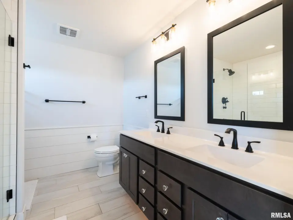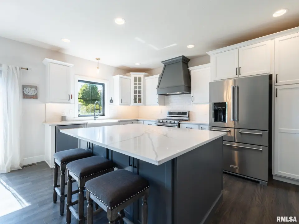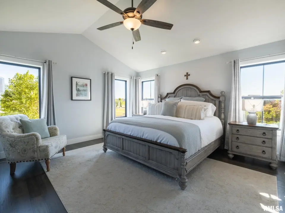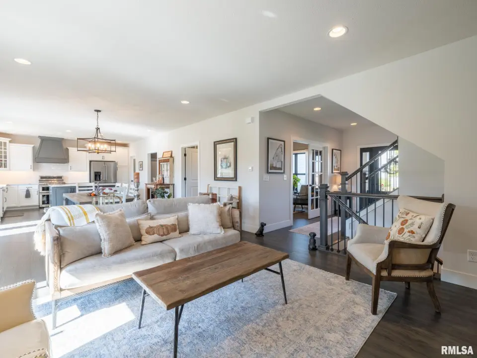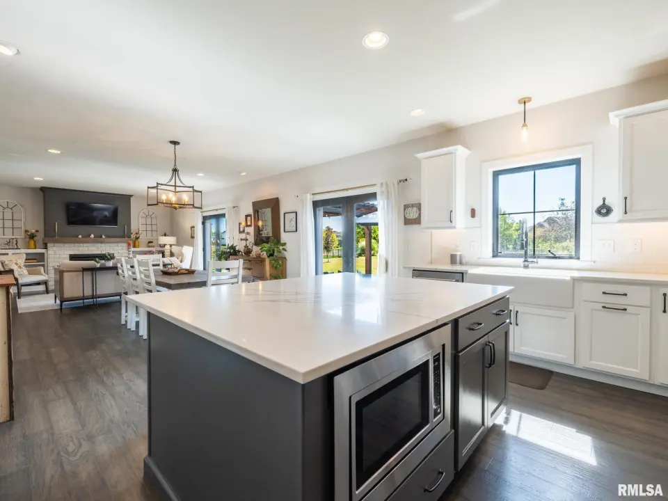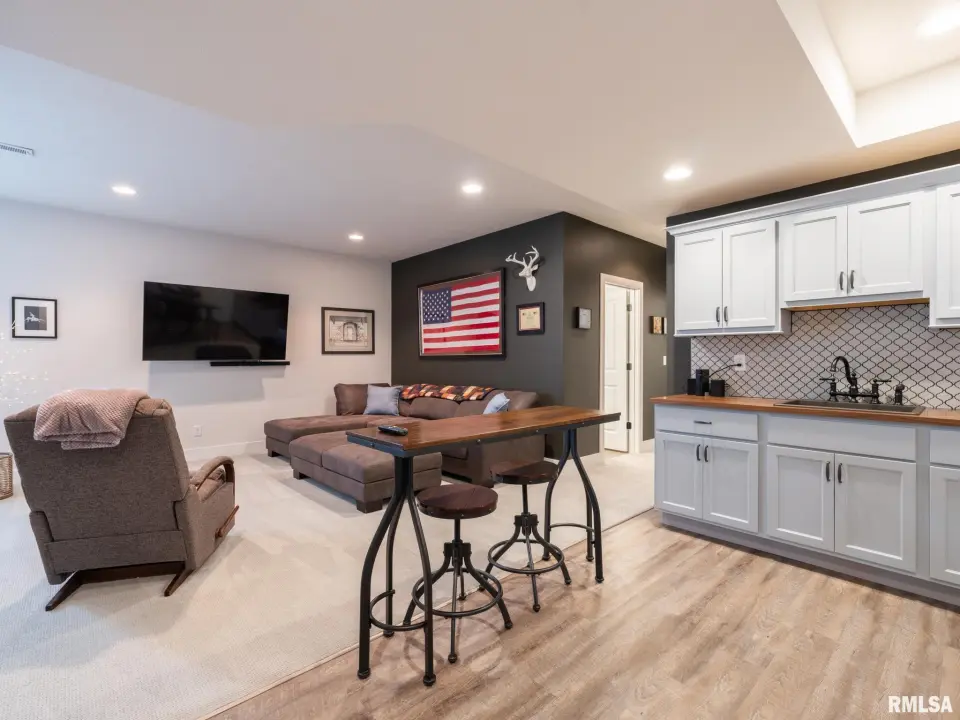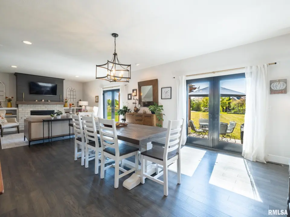 Buyers will love the open concept layout that features a great room with focal point shiplap and tile fireplace, and built in bookshelves. Beautiful informal dining space that flows into the custom kitchen offering an extra large island with seating, white shaker cabinets, stainless steel appliances, tile backsplash, quartz countertops, and a spacious pantry. Flex space on the main level with French doors could be used for an office or formal dining space. Main floor also features a convenient mud room and 1/2 bath. The tidy 3 stall garage includes a pet sink. Upstairs offers 3 beds that share a full bathroom with double vanity and a separate convenient laundry room. The primary suite is sure to please with vaulted ceilings, pond views, walk-in closet with additional storage, and en-suite full bath with double vanity, custom walk-in tile shower, and bonus makeup vanity. The mostly finished basement with 9ft ceilings has even more square footage with a large rec room that includes a custom wet bar, 3rd full bathroom, and 5th bedroom. Double sets of French doors in the great room open up to the true showstopper-the backyard! Fully fenced and beautifully landscaped, this spacious lot features a stamped concrete patio, fire pit area, raised flower garden, and darling shed. Buyers will truly love all the customization and attention to detail that this home offers!