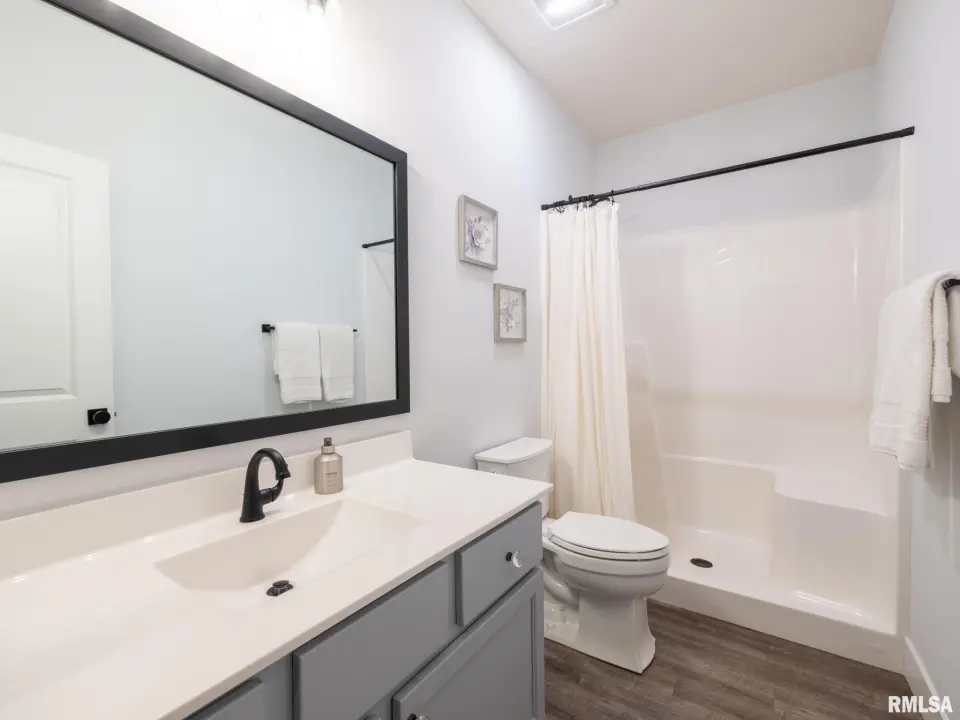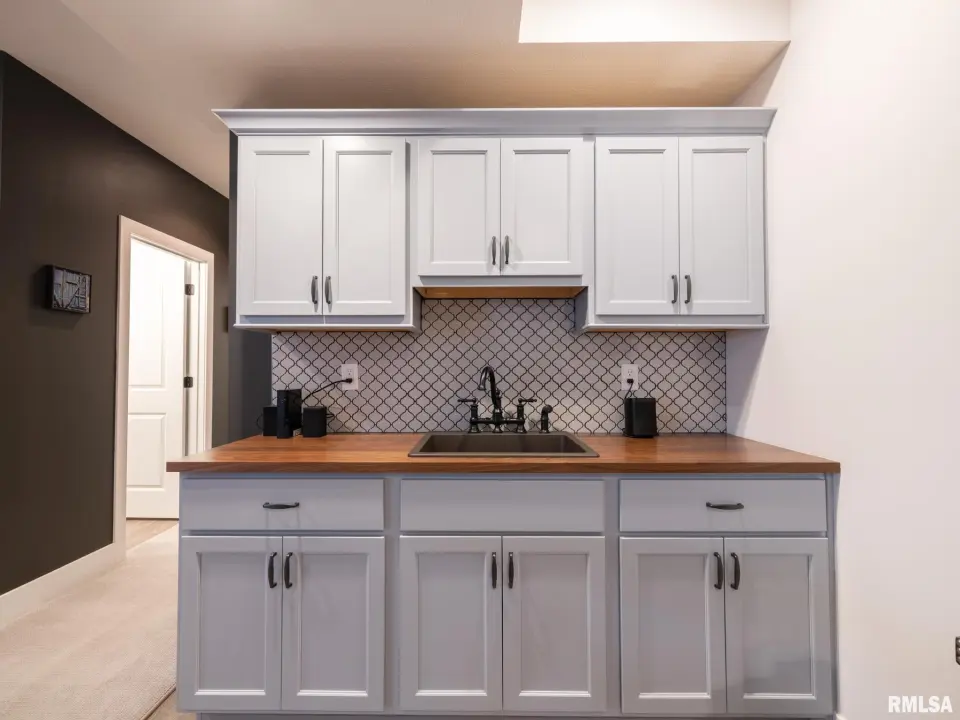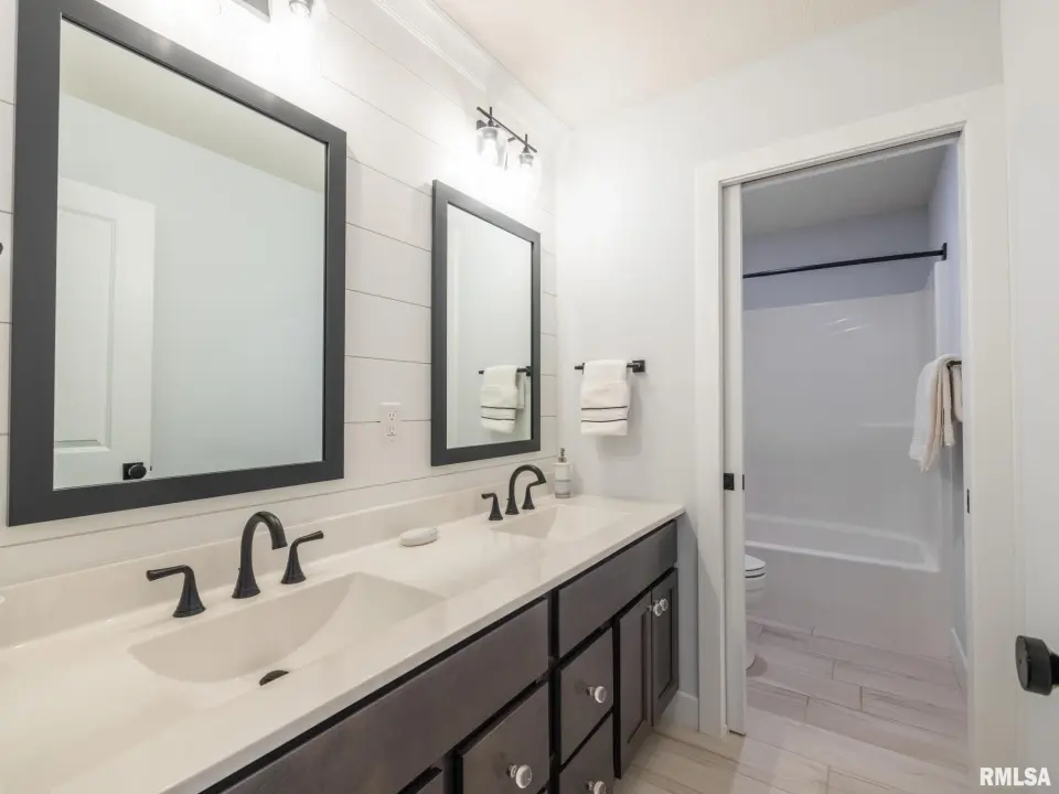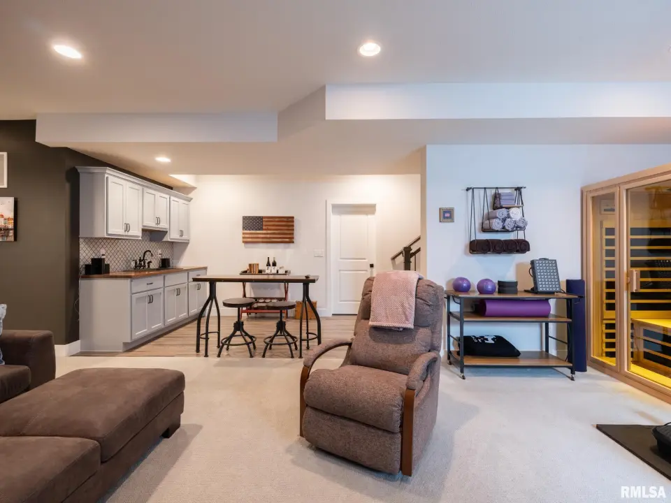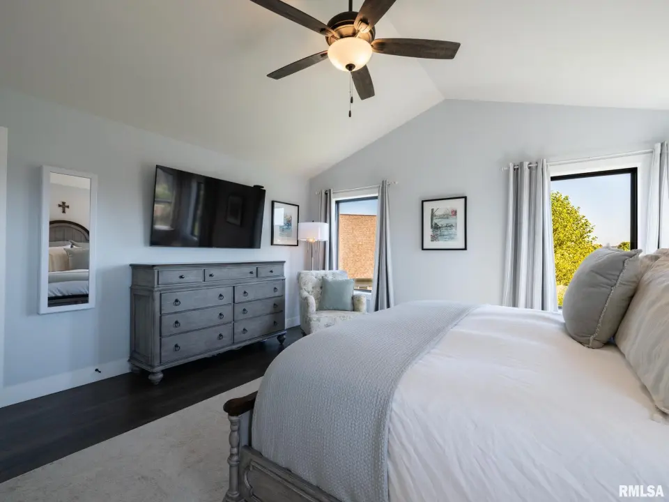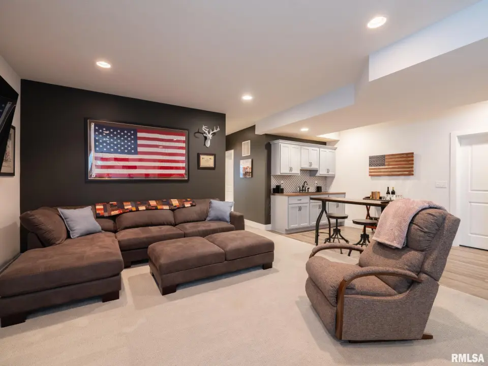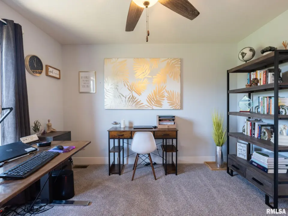 Buyers will love the open concept layout that features a great room with focal point shiplap and tile fireplace, and built in bookshelves. Beautiful informal dining space that flows into the custom kitchen offering an extra large island with seating, white shaker cabinets, stainless steel appliances, tile backsplash, quartz countertops, and a spacious pantry. Flex space on the main level with French doors could be used for an office or formal dining space. Main floor also features a convenient mud room and 1/2 bath. The tidy 3 stall garage includes a pet sink. Upstairs offers 3 beds that share a full bathroom with double vanity and a separate convenient laundry room. The primary suite is sure to please with vaulted ceilings, pond views, walk-in closet with additional storage, and en-suite full bath with double vanity, custom walk-in tile shower, and bonus makeup vanity. The mostly finished basement with 9ft ceilings has even more square footage with a large rec room that includes a custom wet bar, 3rd full bathroom, and 5th bedroom. Double sets of French doors in the great room open up to the true showstopper-the backyard! Fully fenced and beautifully landscaped, this spacious lot features a stamped concrete patio, fire pit area, raised flower garden, and darling shed. Buyers will truly love all the customization and attention to detail that this home offers!