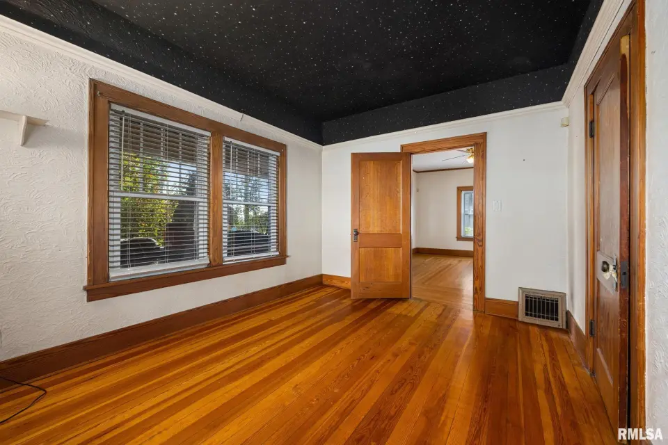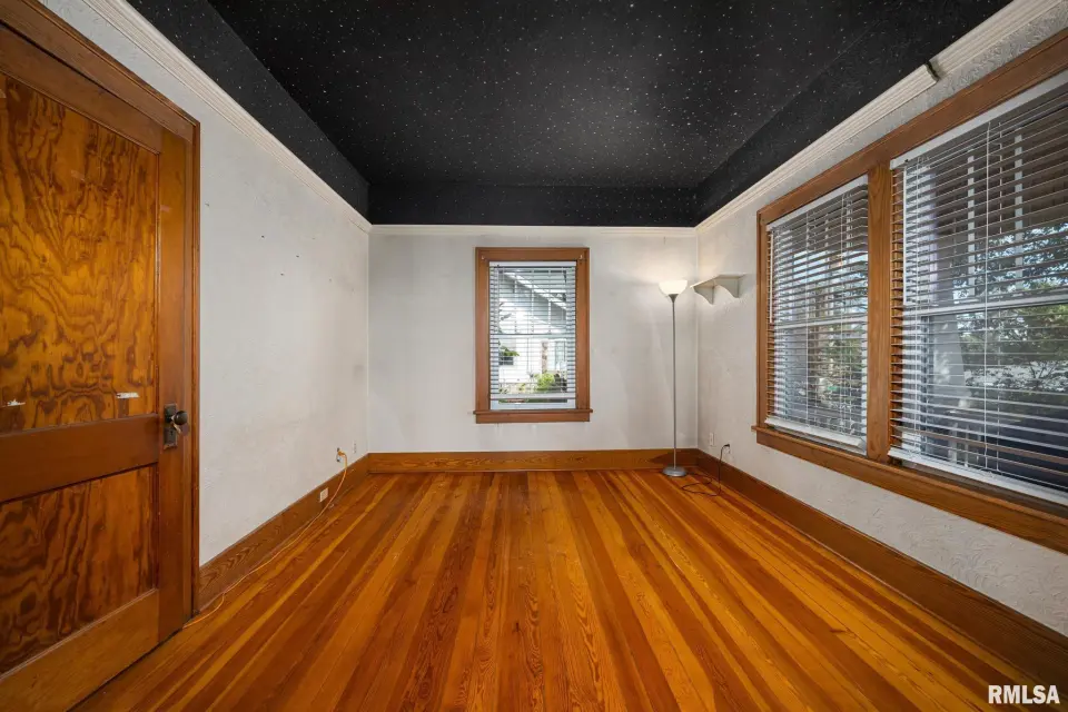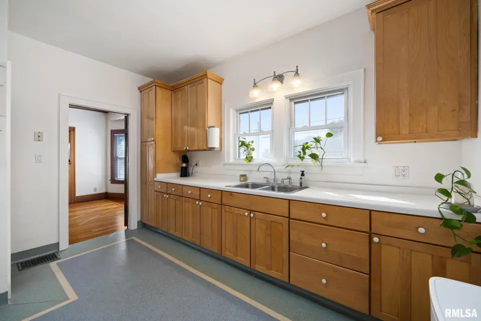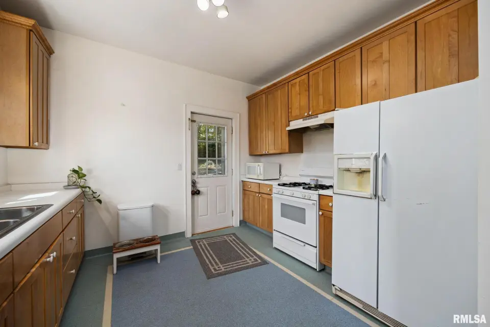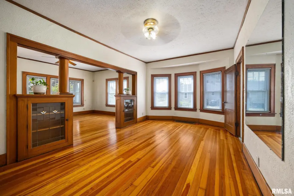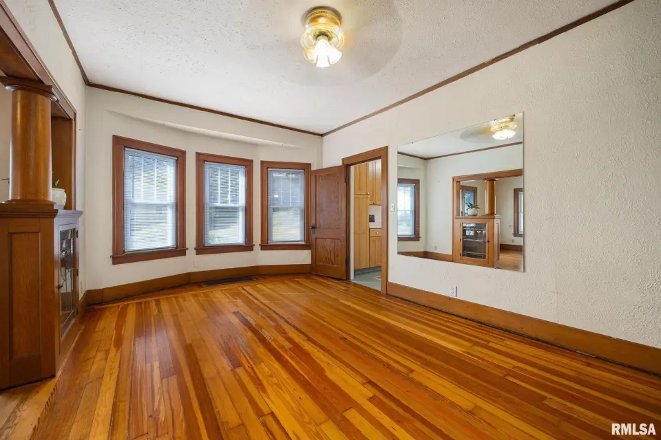 Features include unpainted woodwork, high ceilings, original colonnade bookcases with leaded glass and hardwood floors. The main level offers a spacious living room, a formal dining room with bay windows, a galley kitchen with period-appropriate linoleum flooring, three bedrooms and one full bathroom. The carpeted upper level is dedicated to the primary suite, complete with a walk-in closet and ensuite bathroom. A large basement provides laundry and generous storage space. Furnace, AC and water heater replaced in 2021. Appliances are not warranted and sold as-is.