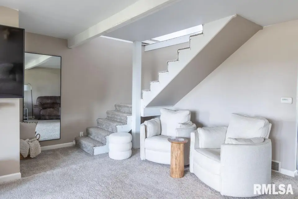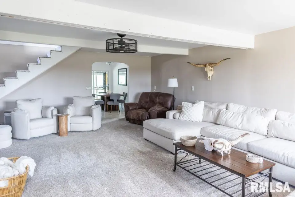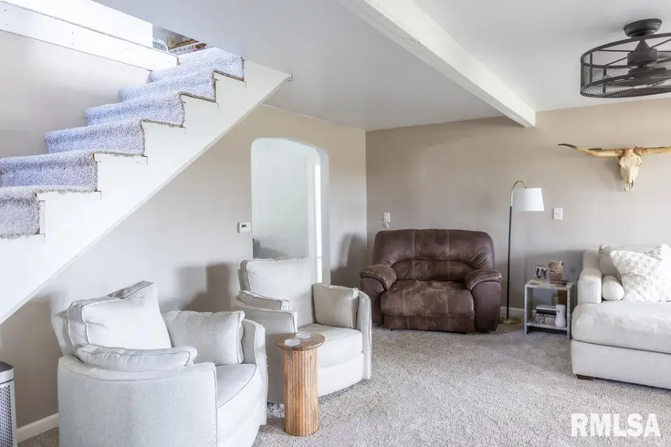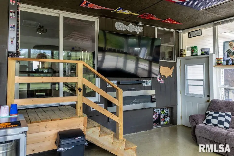 A unique open staircase leads to an upstairs bedroom and additional flex space. Relax in the stunning sun porch/man cave, equipped with a large TV, fireplace, kegerator, and built-in shelving for your collectibles — the ultimate entertainment zone. The unfinished basement offers tons of potential — ideal for a family room, gym, or home office. Outside, enjoy fruit trees, peaceful views, and room to roam. Bonus: Furniture is negotiable!