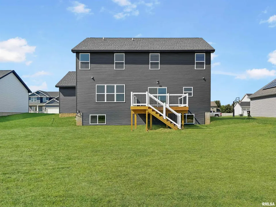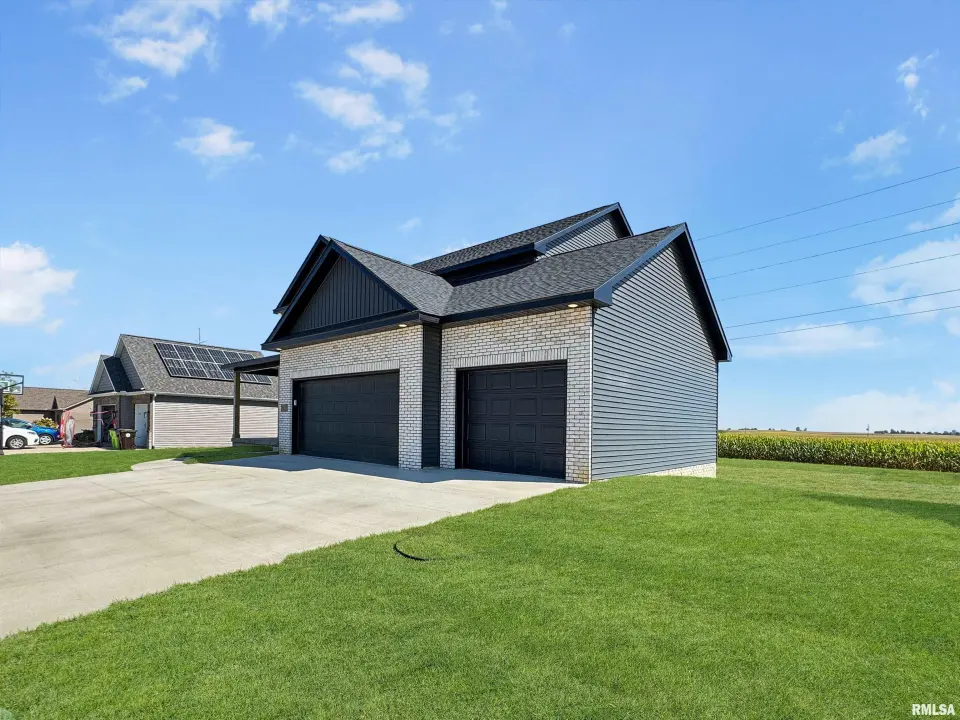 This quality-built residence is designed for the modern homeowner, offering over 3,200 square feet of finished living space on a spacious 0.31-acre lot with a daylight basement. Every detail has been carefully selected, from the high-end lighting fixtures to the state-of-the-art Carrier HVAC system that ensures year-round comfort and energy efficiency. The living area is centered around a modern, rectangular fireplace with custom floating shelving, creating a beautiful focal point. The home features 5 generously sized bedrooms, 3.5 bathrooms, and a luxurious custom closet system in the master suite. The oversized 3-stall garage offers plenty of room for vehicles and storage, rounding out this exceptional property.