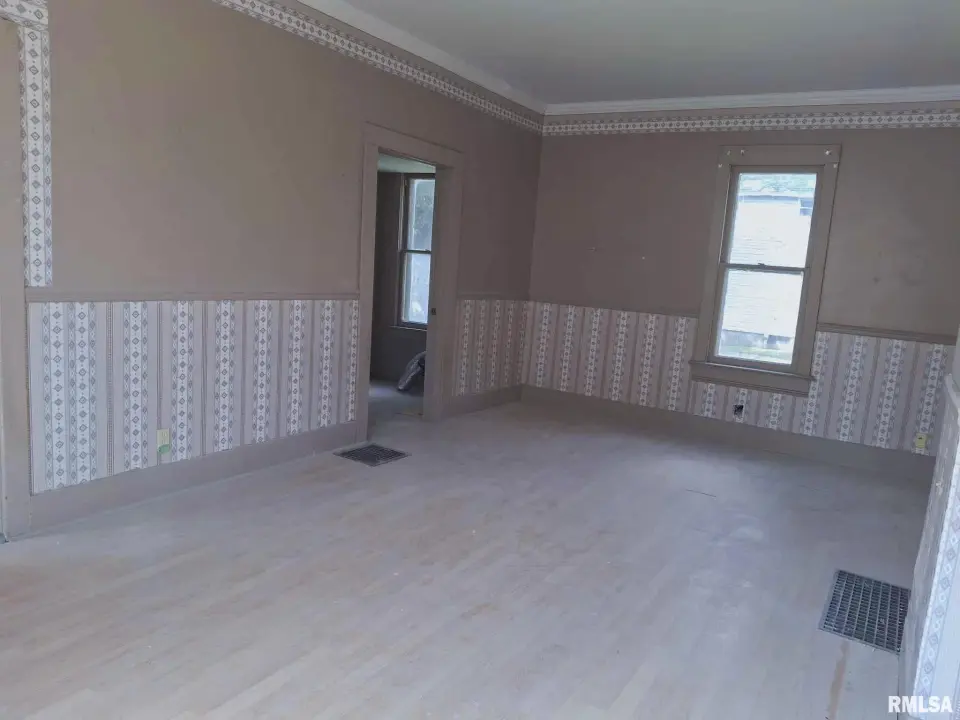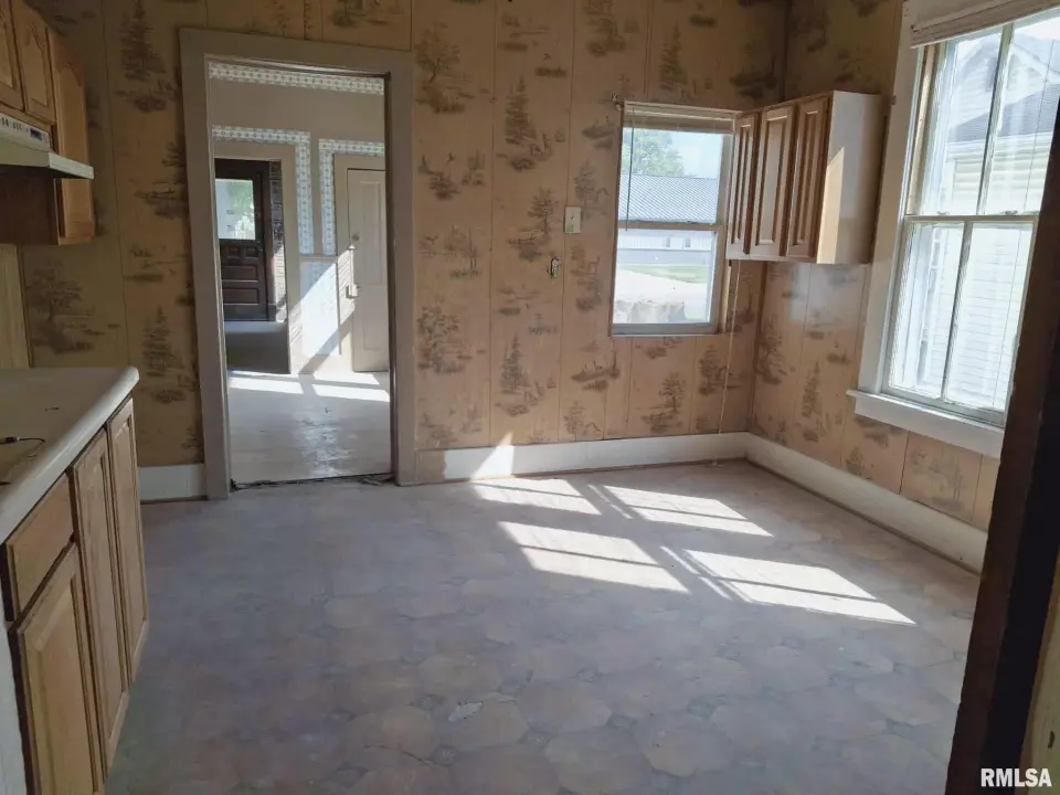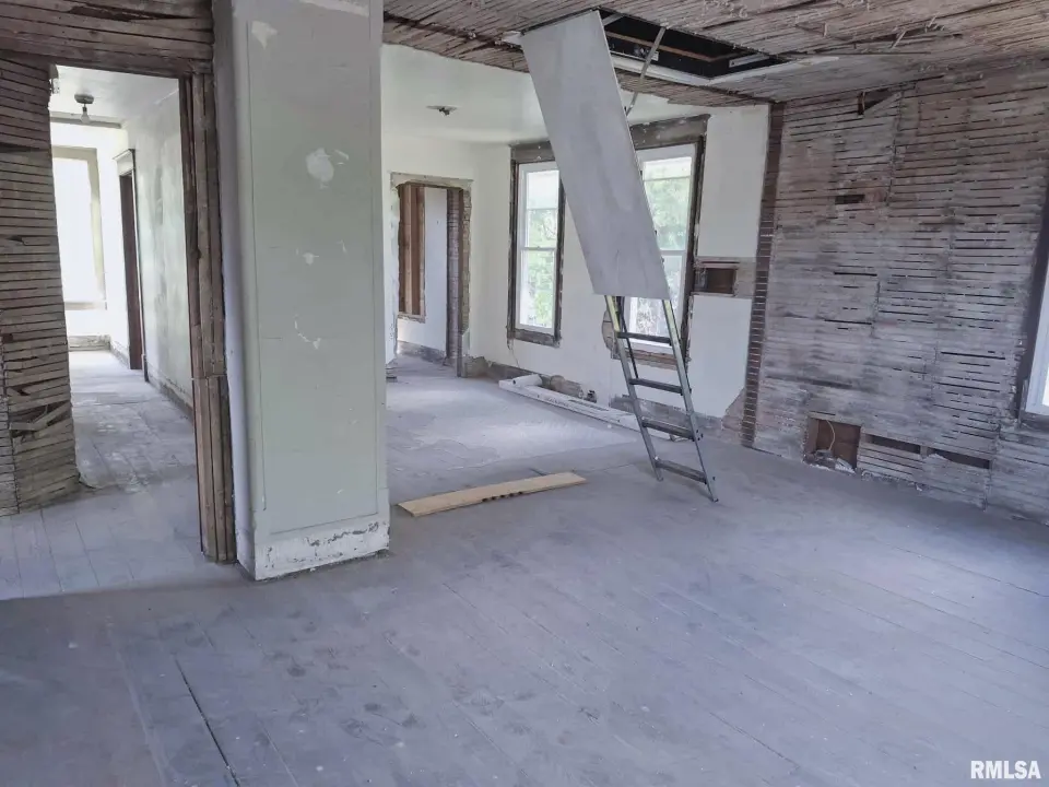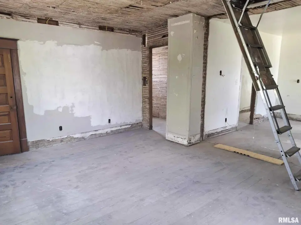Main floor has laundry, 2 baths, formal dining room, kitchen, living room and dining room. Three bedrooms upstairs. Seller opened up two rooms to make one large bedroom. Previously was a bath upstairs that could be replaced. Laundry on main floor in 2 places. Outside service entrances are live but no wiring hooked up inside. Plumbing not connected. Seller has done much of the removal of the old walls and fixtures (ready for you to finish as you like). Upstairs windows are newer. Floor plan on main and upper can be re-arranged to fit your needs as you finish remodeling. Seller had planned to use radiant heat upstairs and GFA downstairs. Listing "Sold As Is" with no warranties,