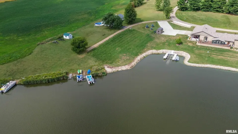 Situated on a generous double lot, it's a perfect retreat for those seeking the tranquility of lake living. The heart of the home is an open kitchen, living, and dining area, perfect for gatherings. Plenty of beautiful hickory cabinetry and sleek quartz countertops. You'll love the double oven, and the island making hosting a breeze! The main level offers a spacious primary suite, complete with a stand-up shower and luxurious jacuzzi tub for those relaxing evenings. Main floor laundry enhances convenience, while a second full bath adds functionality. Downstairs, a fully finished basement extends your living space, offering a cozy family room and space for a possible third bedroom or office. Storage will never be an issue here! This all electric home with a geo thermal system also has a fenced back yard area! Parking is effortless with a two-stall attached garage. Whether you love fishing or simply relaxing by the water, this home offers a dreamy lakefront lifestyle.