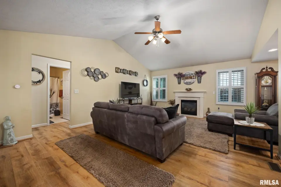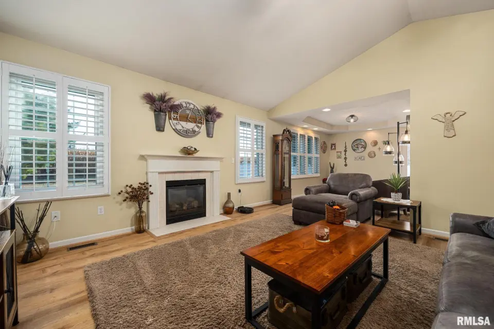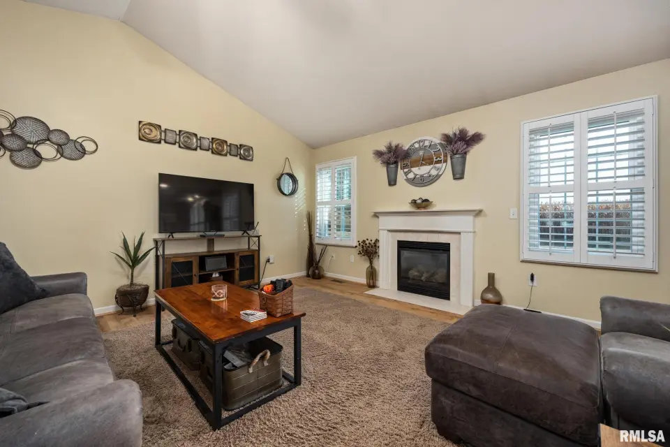 Main floor laundry, neutral décor, a two-car attached garage, and a full basement. Nestled on a quiet cul-de-sac with no neighbors behind, you’ll enjoy added privacy and peaceful surroundings. Step inside to a spacious great room showcasing vaulted ceilings and a cozy gas fireplace—perfect for relaxing or entertaining. Enjoy both formal and informal dining areas, ideal for gatherings of any size. The open-concept layout provides seamless flow throughout the main living space. The large primary suite offers a private retreat with a vaulted ceiling, walk-in closet, dual vanities, a soaking tub, and a separate stand-up shower. The unfinished basement with an egress window is ready for your finishing touches—add another bedroom and living area, or use it as a storage or recreation room. Unwind on the private back porch and take in the quiet views behind the home. Conveniently located near shopping, hospitals, and just 12 miles from downtown Peoria, this home combines comfort, space, and accessibility in one perfect package.