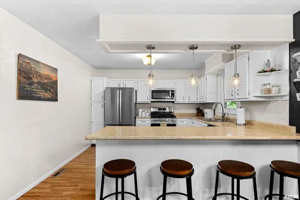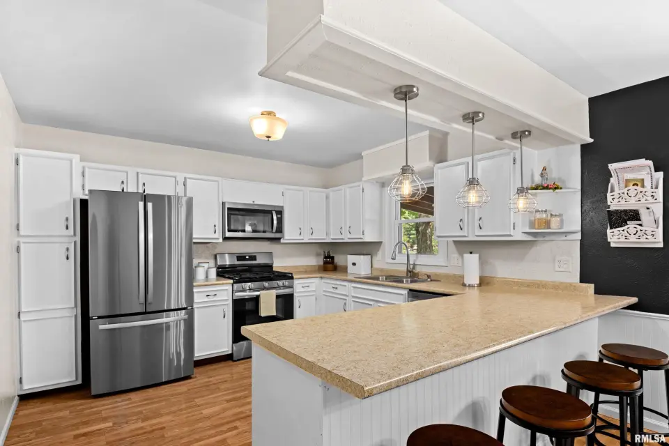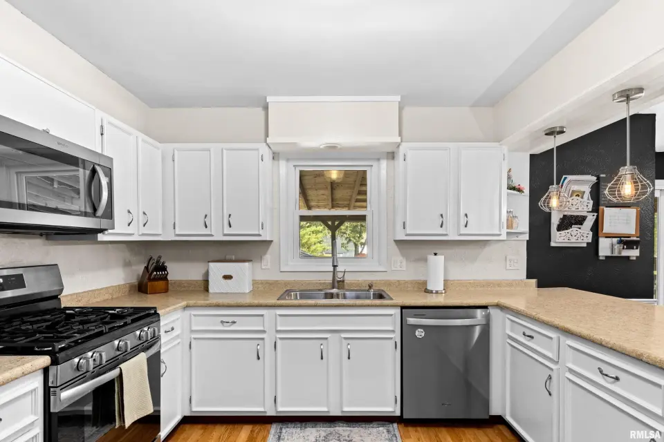 A fresh, neutral color palette and vaulted ceilings create a bright and airy living room, complete with a cozy fireplace for gathering. The spacious eat in kitchen is the heart of the home, featuring updated lighting, all new appliances in the last year, and easy access to a covered deck where you can enjoy meals outdoors while overlooking the oversized backyard. The lower level, remodeled in 2018 with custom built-ins, offers a comfortable retreat for movie nights, game days, or simply relaxing. Outside, a thoughtfully built shed is perfect for hobbies, gardening, or extra storage. With a new concrete driveway added in 2018, this home combines charm, comfort, and modern updates—ready to be enjoyed inside and out! New roof in 2022, custom Levolor blinds throughout the home and numerous mechanical updates with complete list in associated documents. Reserved items: basketball hoop, and deep freezer in basement.
