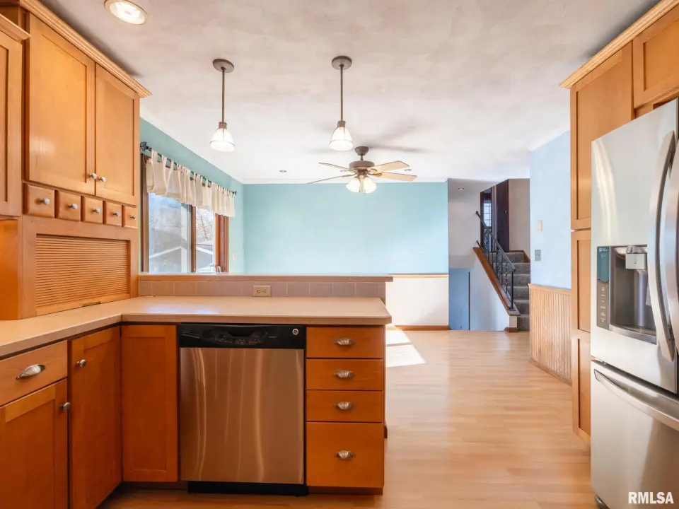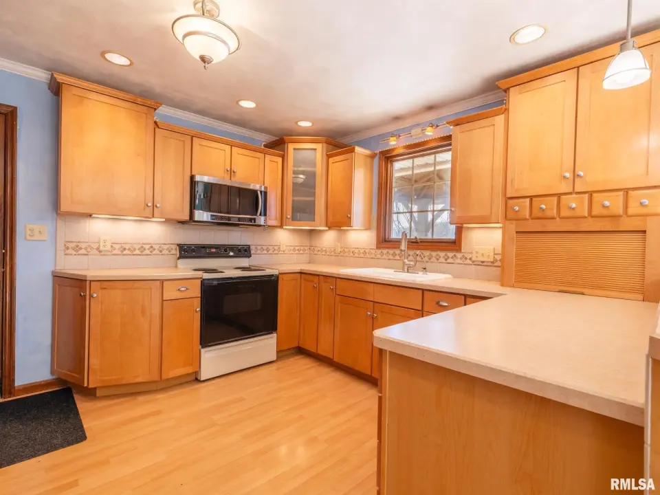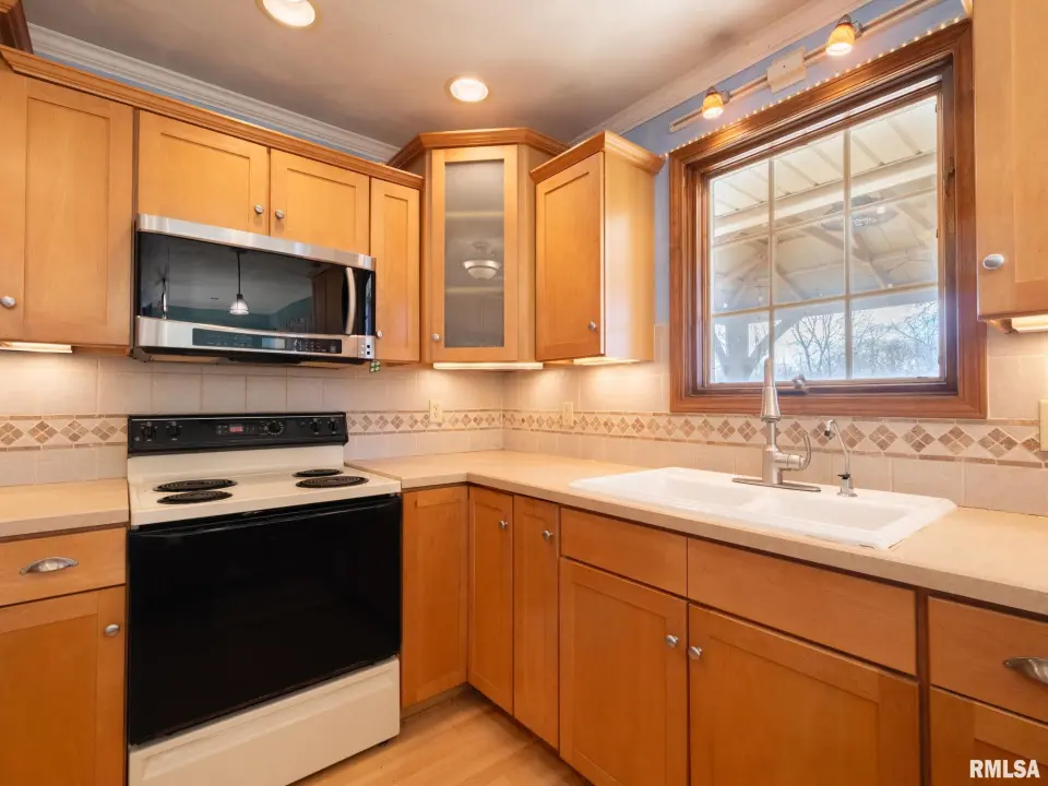 The gazebo is new on the deck and remains with the home. Beautiful hand dug pond for koi fish and attracts other wildlife. Deer and other birds and friendly critters will often come visit the backyard. Fully updated kitchen and dining room with newer cabinets for great storage and a walk out to the vast deck to enjoy the beautifully maintained backyard and all of it's amenities. Updated primary bathroom just in the last couple years. Lot's of storage and walkup from the basement to the garage for easy access. Full large shed at the bottom of the yard for extra storage. Fully brick masonry construction on the front of the home. All appliances remain, but are sold as is and are not warrantied. Property being sold as is in an estate
