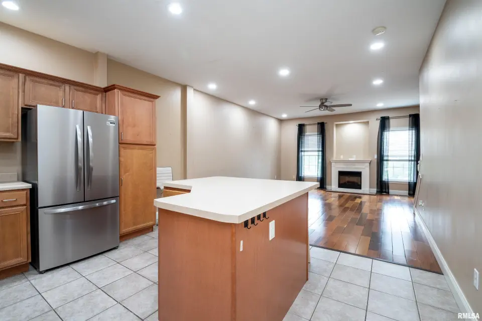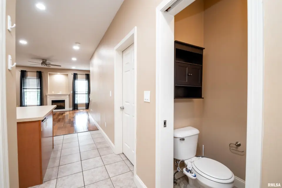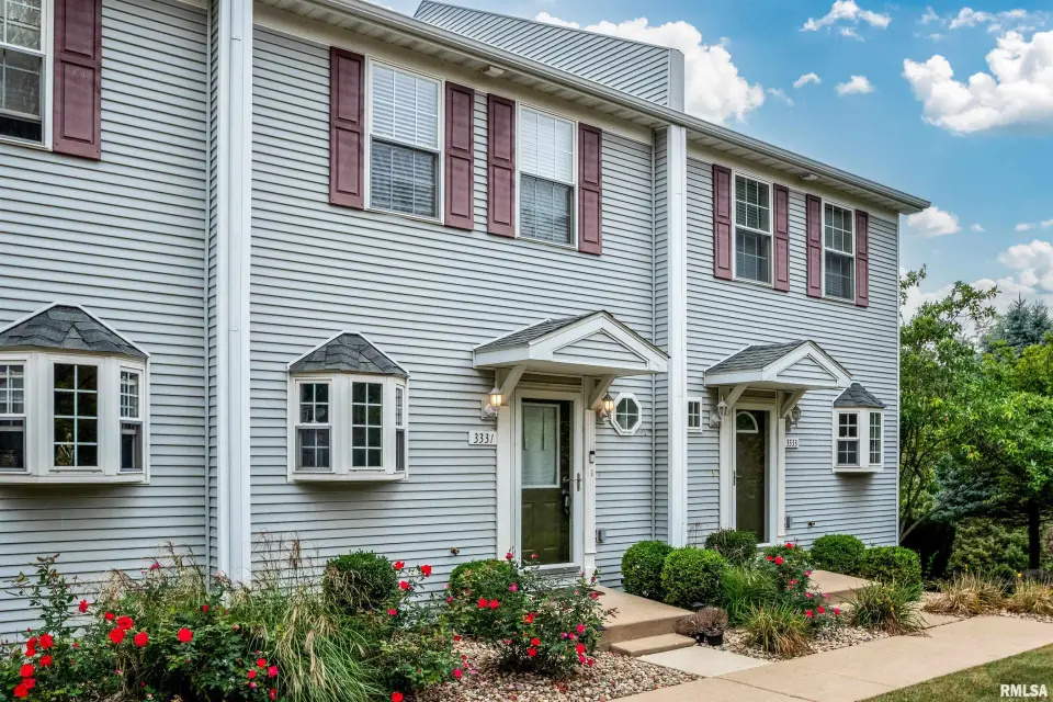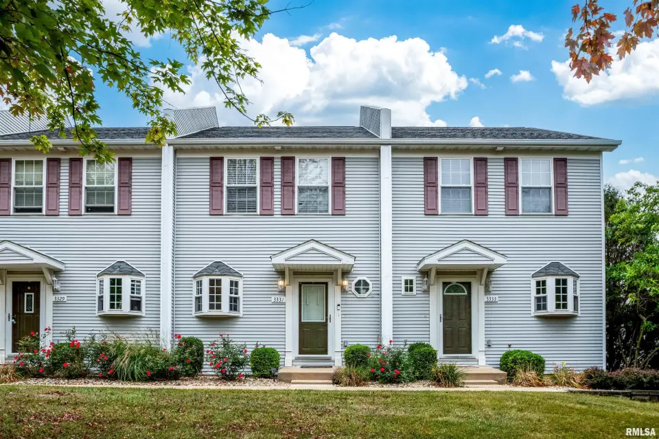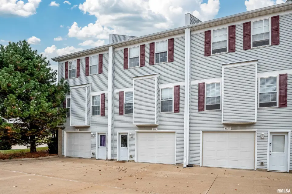 The kitchen features quality cabinetry, a charming bay window, and a spacious island perfect for casual dining, entertaining, or extra storage. The main level also includes a convenient half bath for guests, a large coat closet, and a stunning great room with a cozy fireplace, gleaming hardwood floors, and a partially open staircase leading to the upper level. Upstairs, you'll find two ensuite bedrooms. The primary suite offers a walk-in closet, while the second bedroom also provides generous closet space. The lower level includes an attached garage, laundry area, and plenty of storage. Multiple outdoor spaces at both the front and back doors offer great options for relaxing or entertaining. This move-in ready condo with immediate occupancy offers easy interstate access and is close to shopping, dining, and more-don't miss this opportunity.