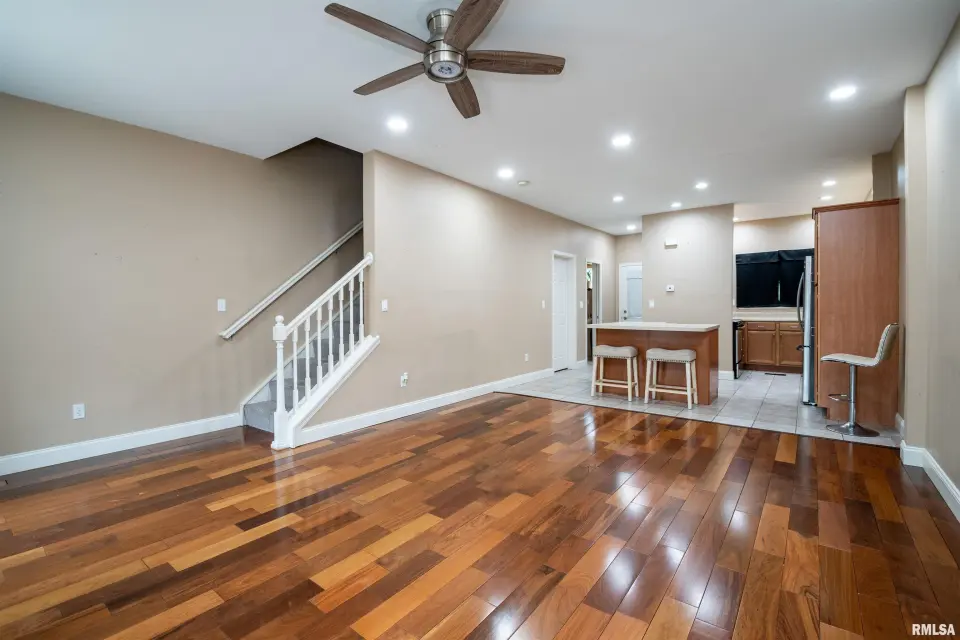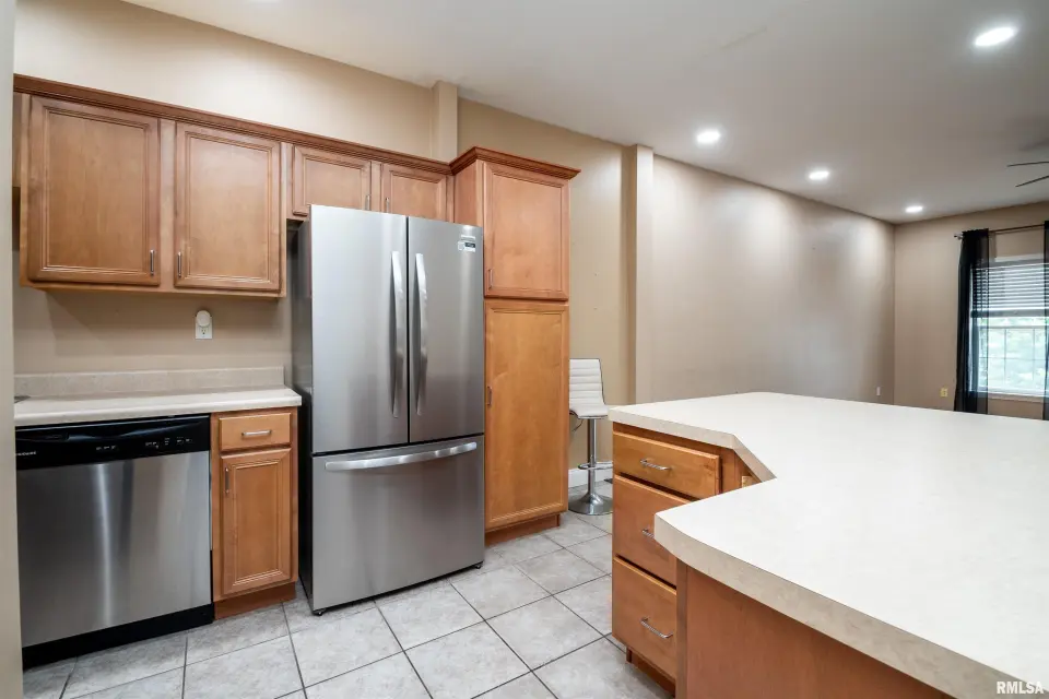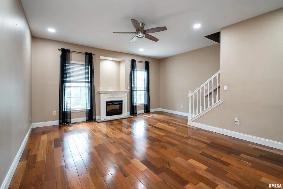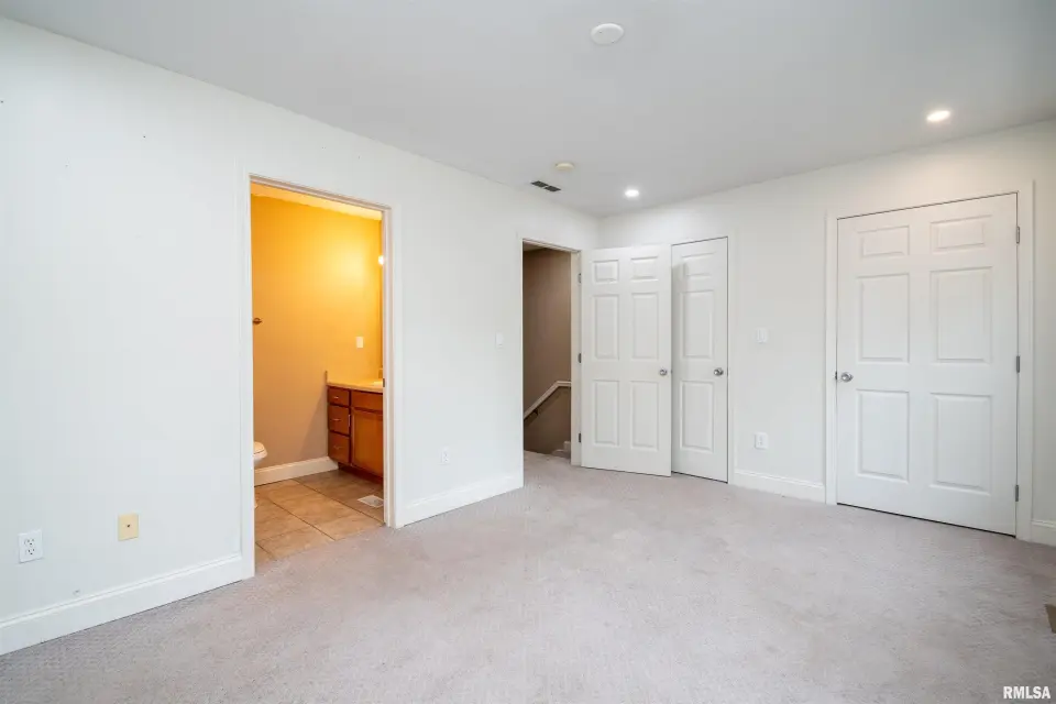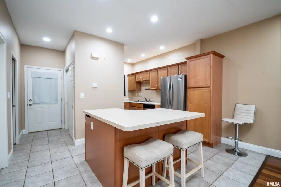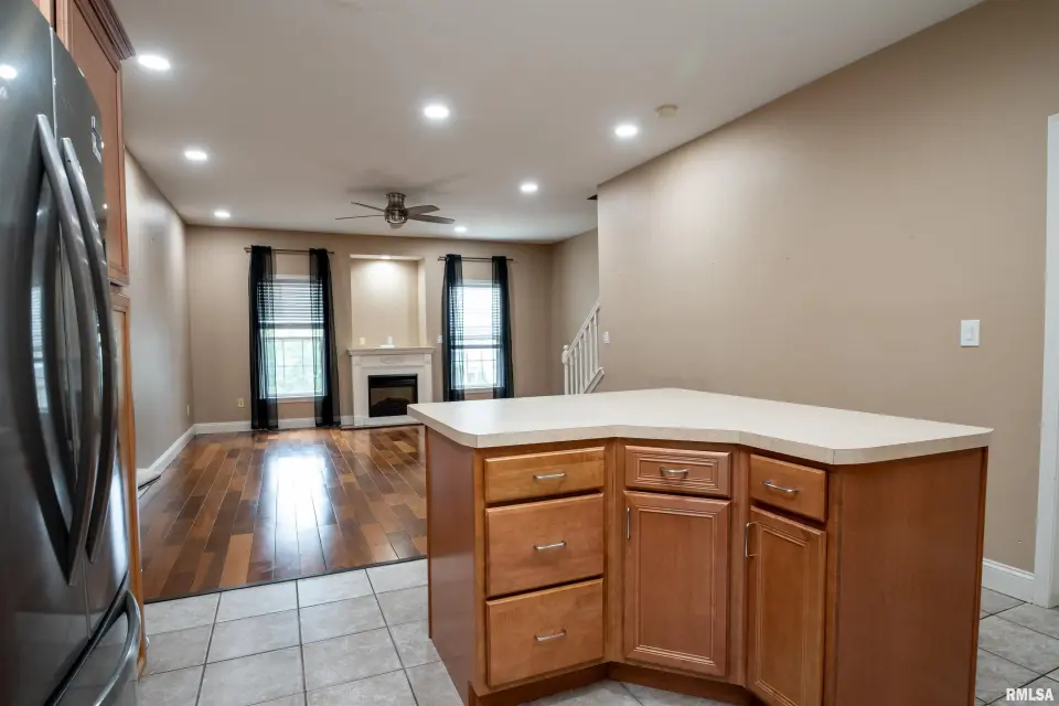 The kitchen features quality cabinetry, a charming bay window, and a spacious island perfect for casual dining, entertaining, or extra storage. The main level also includes a convenient half bath for guests, a large coat closet, and a stunning great room with a cozy fireplace, gleaming hardwood floors, and a partially open staircase leading to the upper level. Upstairs, you'll find two ensuite bedrooms. The primary suite offers a walk-in closet, while the second bedroom also provides generous closet space. The lower level includes an attached garage, laundry area, and plenty of storage. Multiple outdoor spaces at both the front and back doors offer great options for relaxing or entertaining. This move-in ready condo with immediate occupancy offers easy interstate access and is close to shopping, dining, and more-don't miss this opportunity.