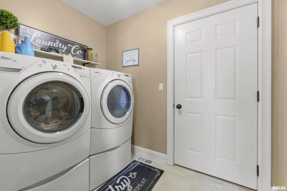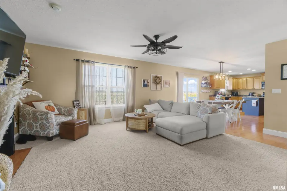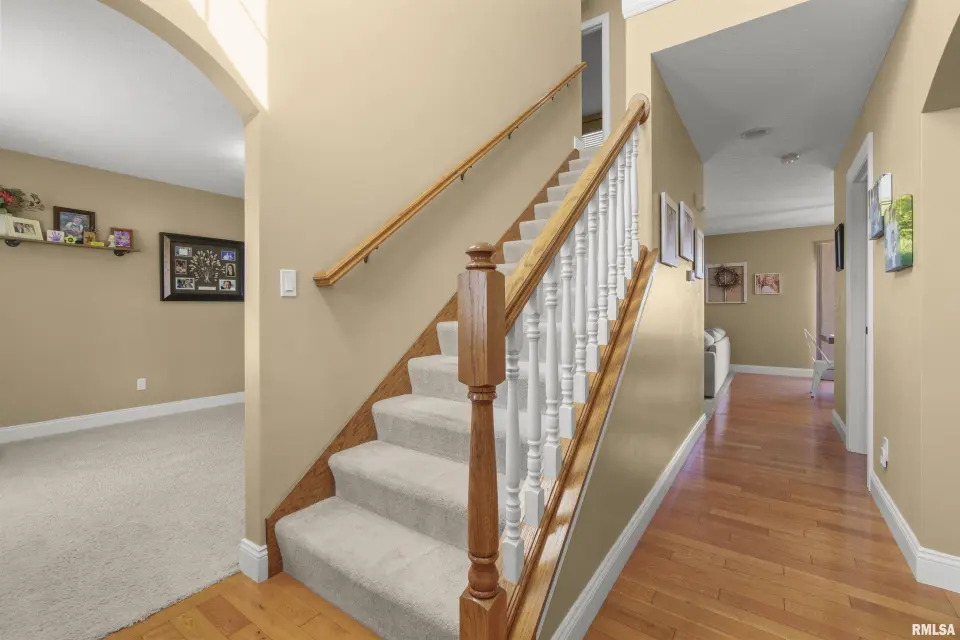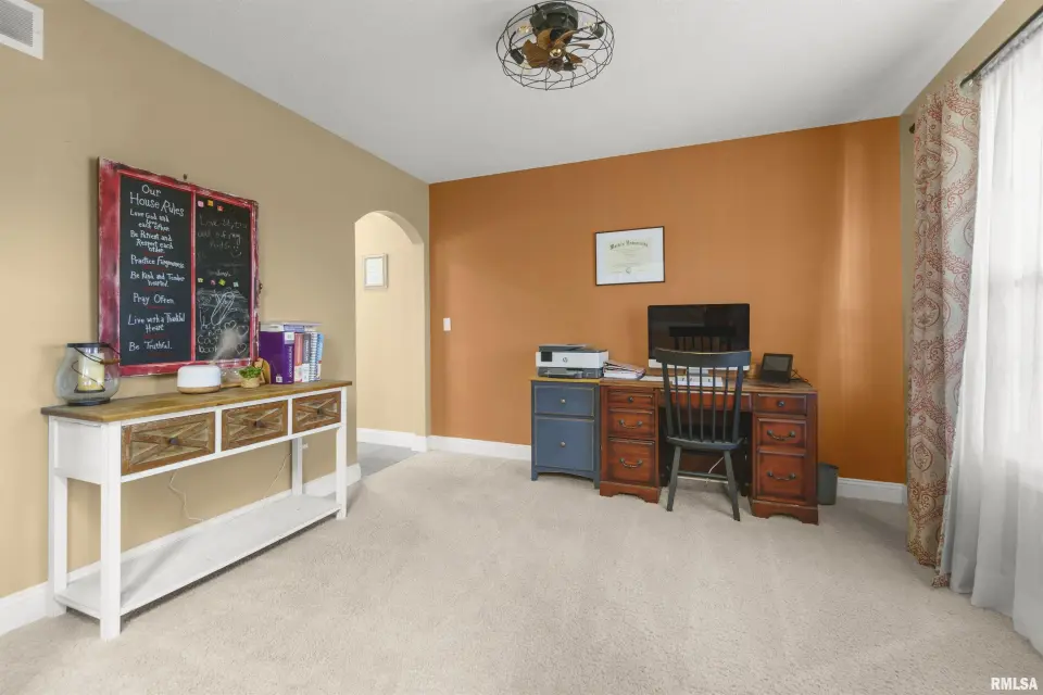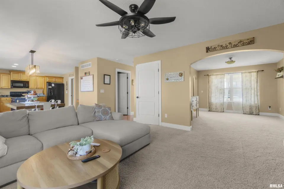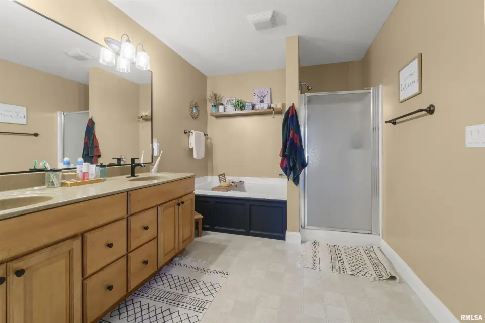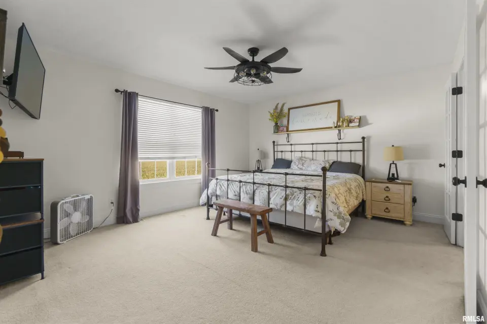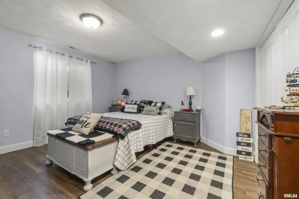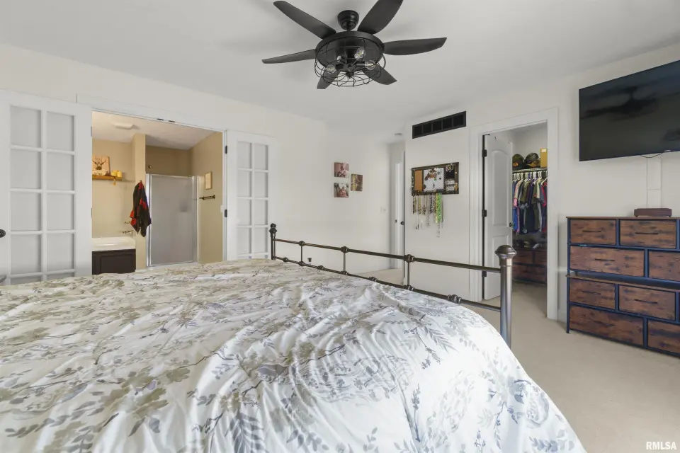 The master suite offers a walk-in closet, French doors, and a private bath with whirlpool tub and separate shower. Enjoy a fully finished basement with a bedroom (egress window), full bath, flex spaces, and storage with built-in shelving. Main-floor laundry, plus major updates including a new roof, window screens, and downspouts installed in 2022.