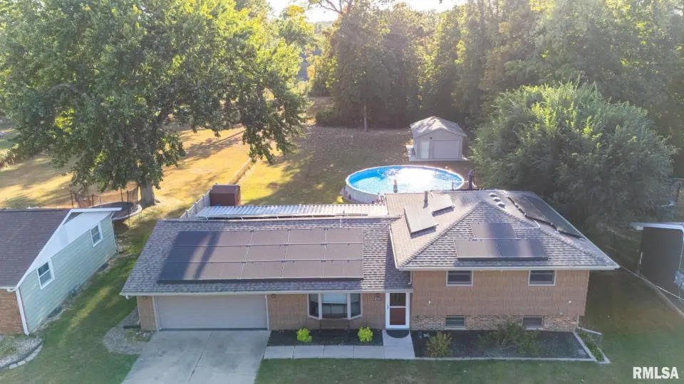 Step inside to an inviting open floor plan filled with natural light, featuring a spacious living area that flows into an informal dining room and breakfast bar. The kitchen offers updated appliances and a bright, functional layout for everyday living and entertaining. Upstairs you’ll find three nicely sized bedrooms and a full bath, while the lower level provides even more living space with a cozy fireplace, family room, laundry area, and an additional full bath. Outdoor living is a dream here—sliding doors open to a large covered patio overlooking the above-ground pool, fenced yard, and detached garage, creating a true backyard oasis perfect for gatherings and relaxation. The oversized attached garage is a standout with vaulted ceilings, built-in cabinetry, and baseboard heat—ideal for projects, storage, or hobby space. This home blends comfort, convenience, and fun both inside and out. Don’t miss the opportunity to make it yours! 25 year Solar lease $154 monthly. Subject to seller find home of their choice.