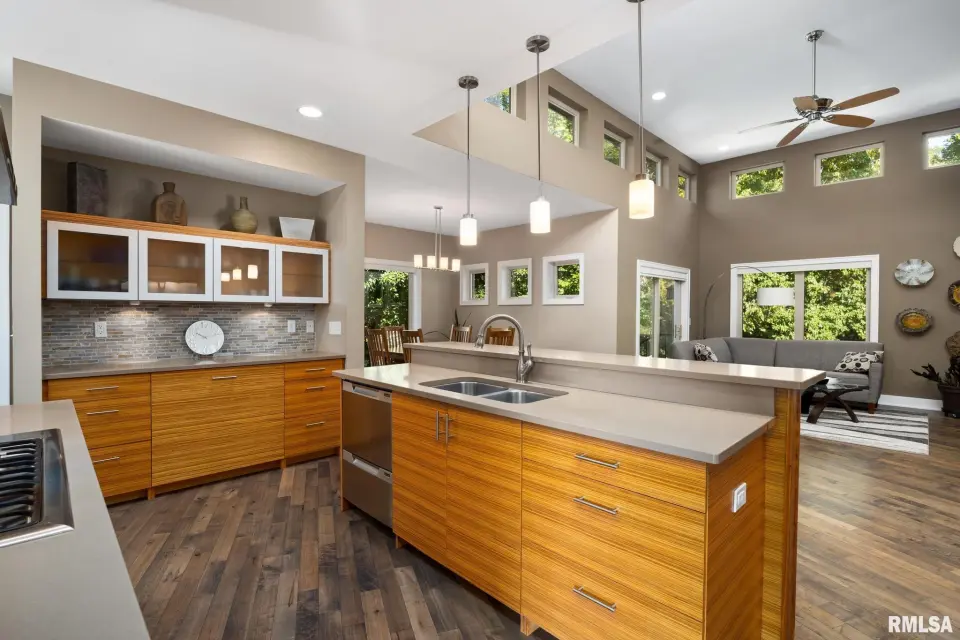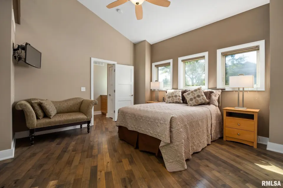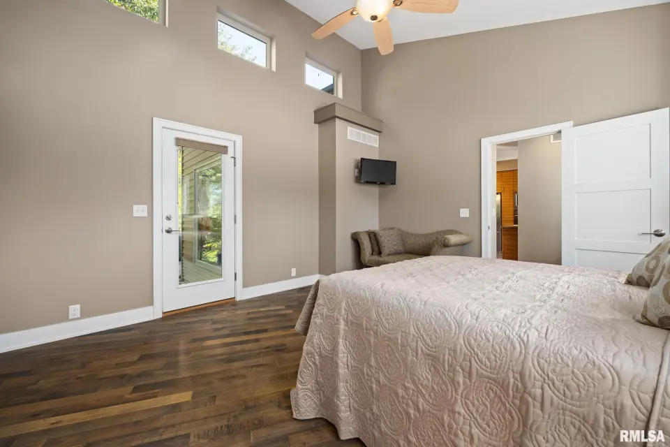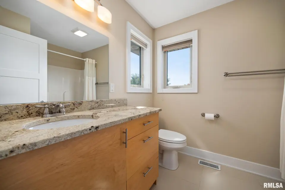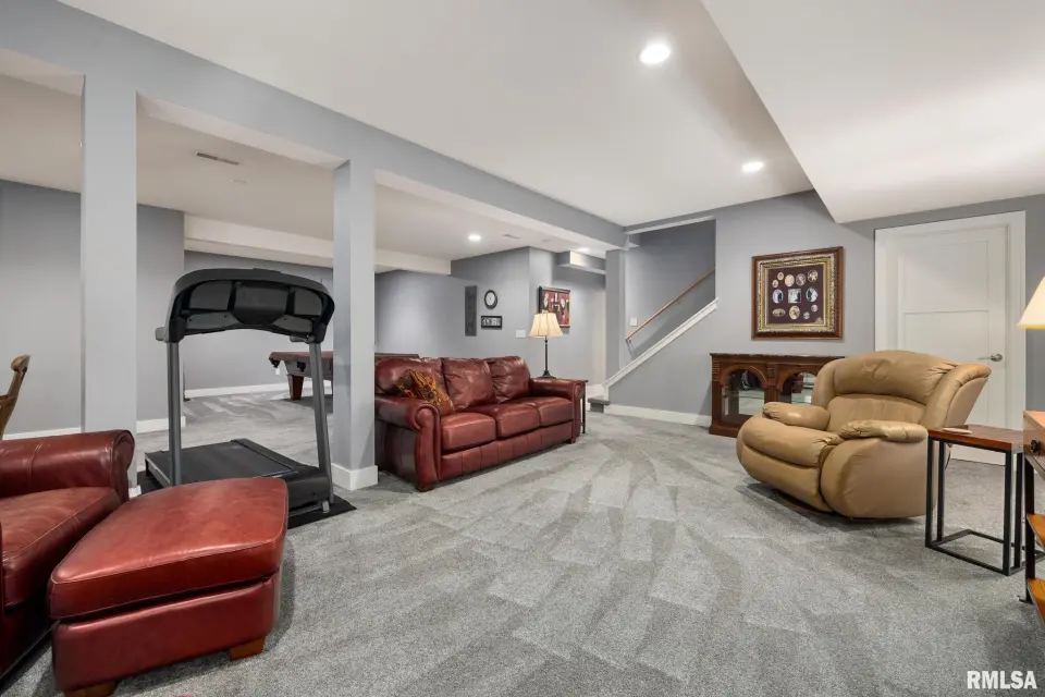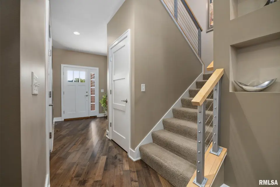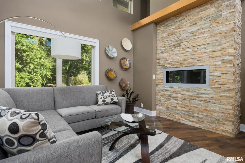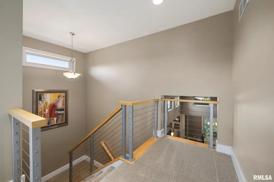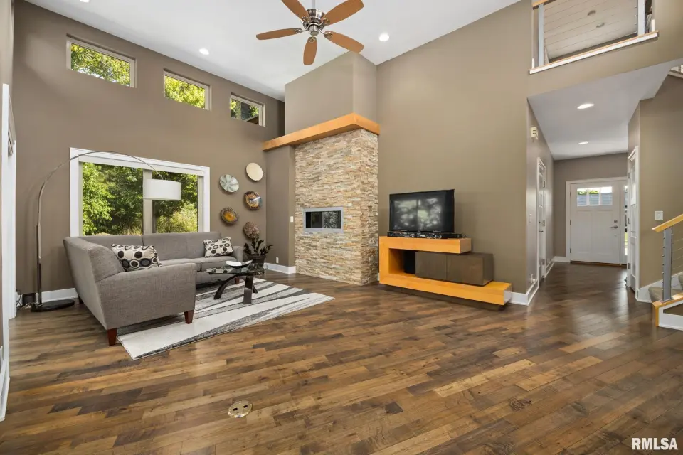 Featuring 4 spacious bedrooms and 3.5 luxurious baths, this home seamlessly blends elegance, comfort, and functionality. The main-floor primary suite is a true retreat, offering custom built-in closet cabinetry, a spa-like ensuite with a unique tile walk-in shower, soaking tub, and dual-sink vanity. The open-concept floor plan is flooded with natural light, thanks to an abundance of large windows that showcase the beautiful surroundings. The fully applianced kitchen is a chef’s dream, boasting tiger wood custom cabinetry, a walk-in pantry, and a convenient coffee bar. The great room centers around a striking stone gas fireplace, creating a cozy yet modern ambiance. A main-floor laundry room with stylish tile flooring adds everyday convenience and completes the thoughtful layout. Upstairs, a custom cable banister leads you to two generously sized bedrooms, each with access to a joint private balcony—perfect for morning coffee or evening relaxation. A full bathroom completes the upper level. The finished basement adds even more living space with a large family room, a full bath, and a separate storage room. Outside, you'll find an attached 2-car garage and a 7x9 attached shed—ideal for storing all your outdoor tools and equipment. A MUST SEE!