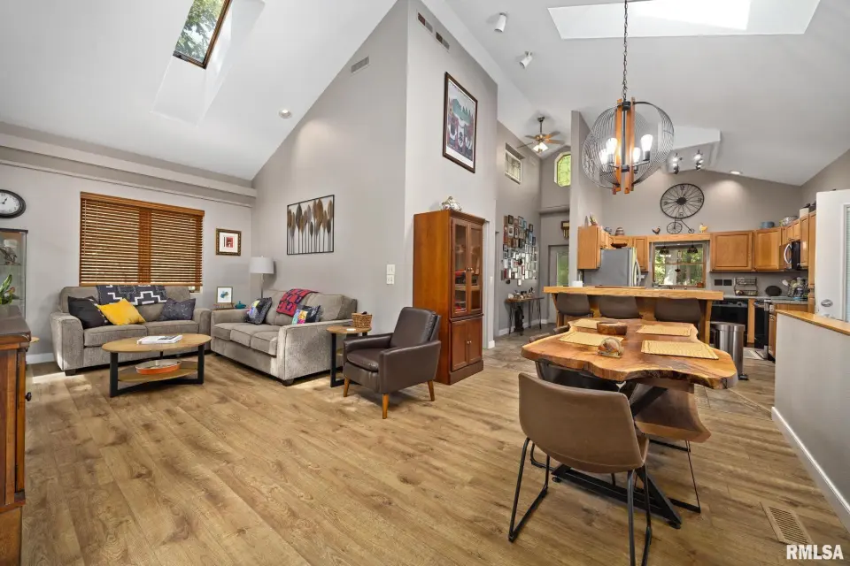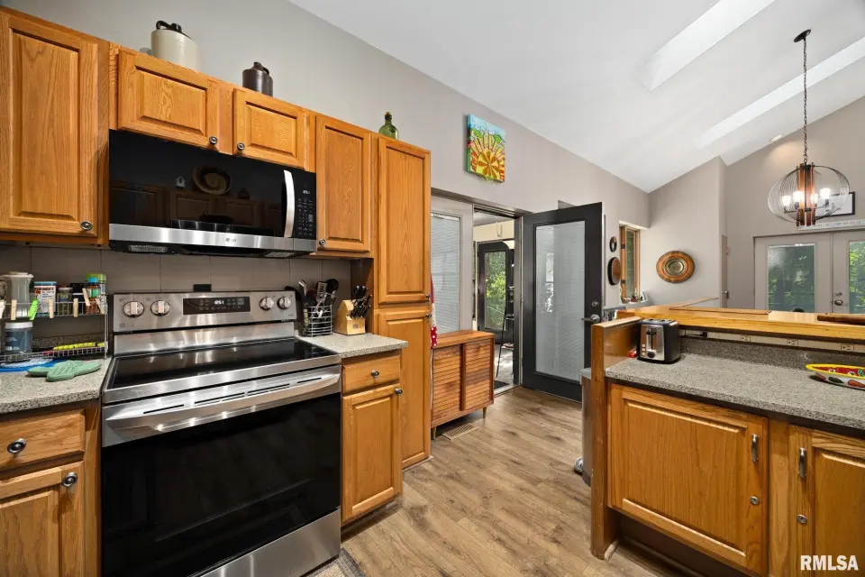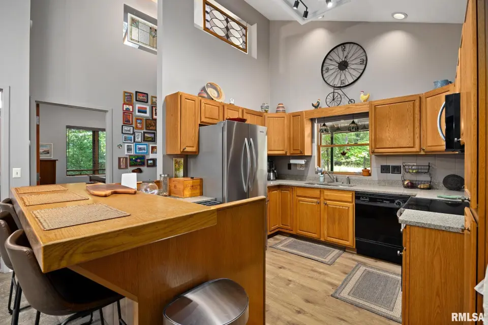 Offering comfort, modern upgrades, and plenty of room to spread out, this property is perfect for those seeking privacy without sacrificing convenience. Inside, you'll find spacious living areas with fresh paint throughout, new laminate flooring (2024), and a cozy downstairs family room featuring a rebuilt fireplace (2023), new ceiling, and recessed lighting. A DC remote-controlled ceiling fan in the breezeway (2024) adds comfort and style, while the updated kitchen boasts a new range and microwave/vent (2025). The home is equipped for modern living with MTCO fiber internet and TV (2022), a new water heater (2022), and a new washer (2024). Practical improvements include a new breaker box (2023), new effluent pump for the septic system (2025), and a French drain to ensure proper drainage around the porch. Outdoors, features the fresh gravel driveway (2025), a fully fenced area in the front yard—perfect for pets or gardening—and a large pole barn with a new roof (2023), added window (2024), and freshly repainted steel trim and doors (2025). The attached garage features a new heater and provides ample space for projects. This special property offers a rare opportunity to own a serene, wooded retreat with all the right upgrades.