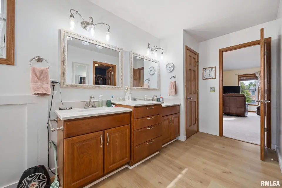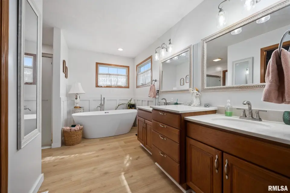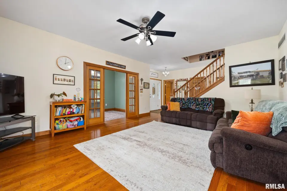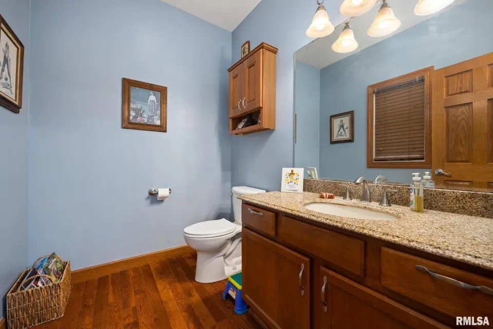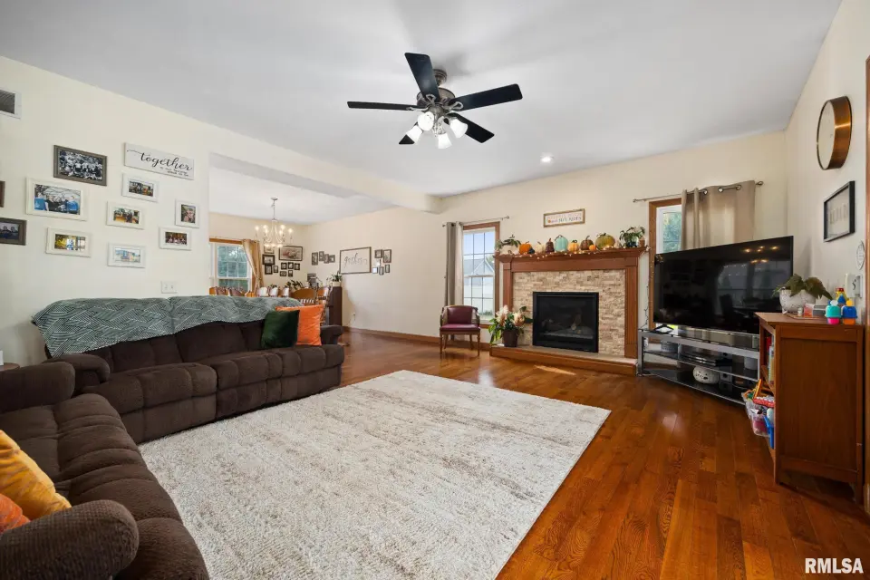 The main floor features a bright, open great room with a wood-burning fireplace (with gas starter), an adjoining office with French sliding doors, and a formal dining room—each accented with gorgeous hardwood floors. The large eat-in kitchen includes rich wood cabinetry, granite countertops, a generous island, stainless steel appliances, a pantry, and a slider leading to the backyard. Upstairs, you’ll find four spacious bedrooms. The primary suite boasts a second fireplace, an updated bath with a soaking bowl tub, dual sinks, a 5' walk-in shower, and a large walk-in closet. The main bath includes a double vanity, tub/shower, and linen cabinet. The partially finished basement provides even more space with a huge family/rec room, a workout or flex room, a full bath, and convenient cabinetry with a refrigerator for snacks and beverages. If you’re looking for abundant living space, storage, and a prime location—this home is the perfect fit!