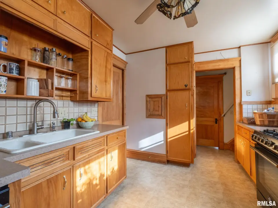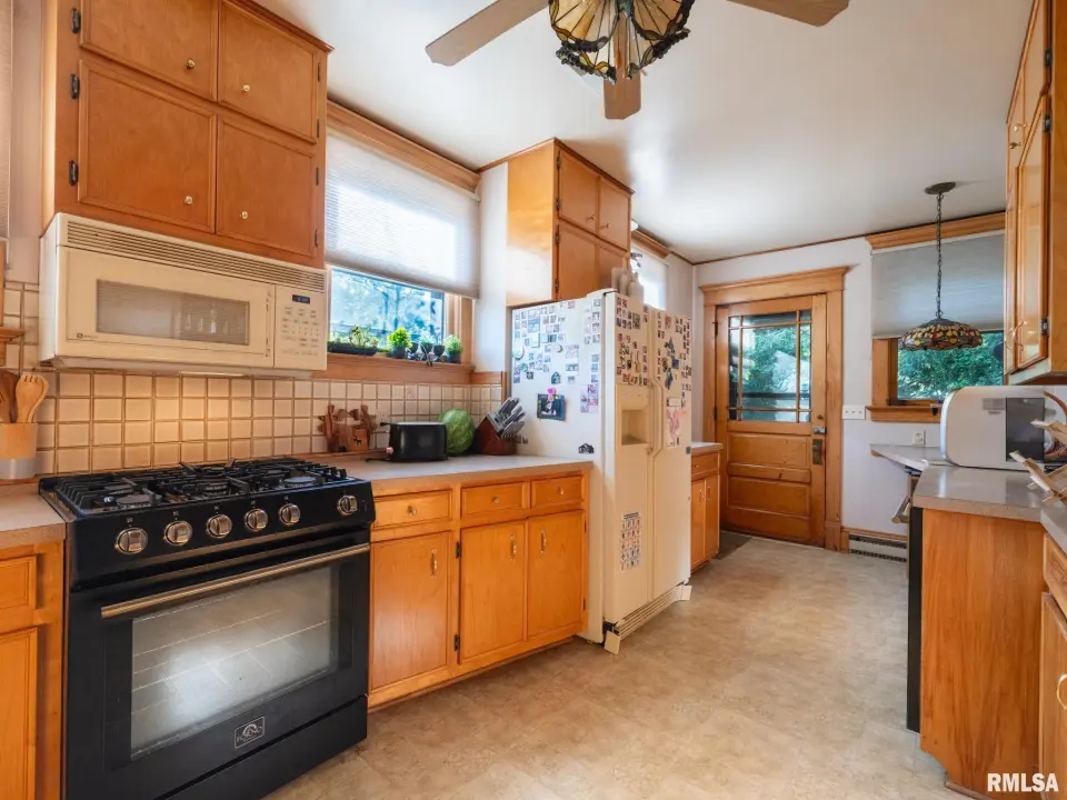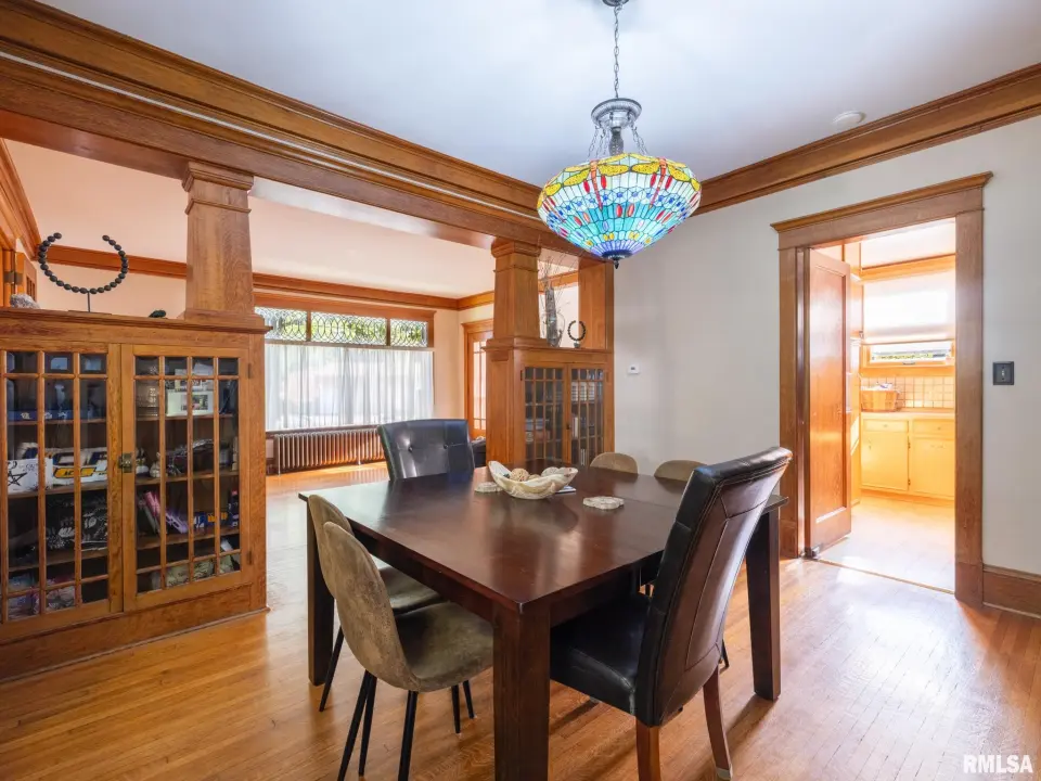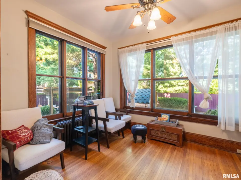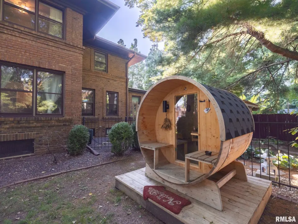 Rare Tiffany-style lighting, rich quarter-sawn oak woodwork, pocket doors, built-ins, hardwood floors, crown molding, leaded and beveled glass, and even a classic laundry chute showcase the craftsmanship throughout. Enjoy generous living space with soaring ceilings, dual sunrooms, a formal dining room, and a spacious primary suite featuring a walk-in closet plus bonus space perfect for an office, nursery, or flex area. A partially finished basement adds versatility and room to grow. Step outside to your private retreat with a beautifully landscaped lot complete with pergola, brick walkways, fenced yard, mature plantings, and a two-car garage. Best of all—your dream steam sauna awaits! Recent updates include a new boiler (2024), new stove, dishwasher, washer, and dryer, along with a sauna kit installed in 2024. Don’t miss this one-of-a-kind home—schedule your private showing today!
