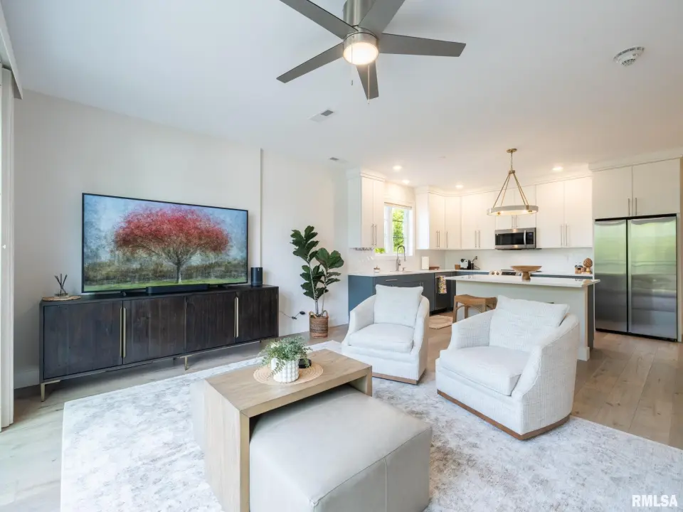 Just steps away from restaurants, park, and walking trail. Condo building has an ADA entrance, elevator, security system, cameras, heated garage parking options with extra storage or work bench area & rough-ins for electric car charger already in place. Unit is stunning with custom cabinetry, open floor plan & grand french doors leading to deck for entertaining & enjoying the outdoors.