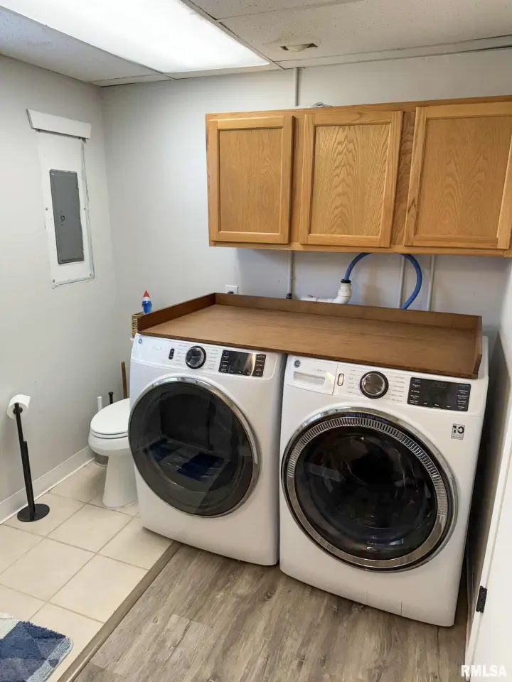 The other hook ups are located in lower-level full bathroom. The fireplace in family room has never been used and not functional. Home has new flooring in upper level and living room along with some freshly painted walls! The family room in lower level has new ceiling. The owner has put up a beautiful new privacy fence around the whole back yard where you can host family and friends on the large, covered deck or have a great yard for kids and pets!! A newer shed for storage! HVAC new in 21', Newer siding, roof, gutters, gutter guards.