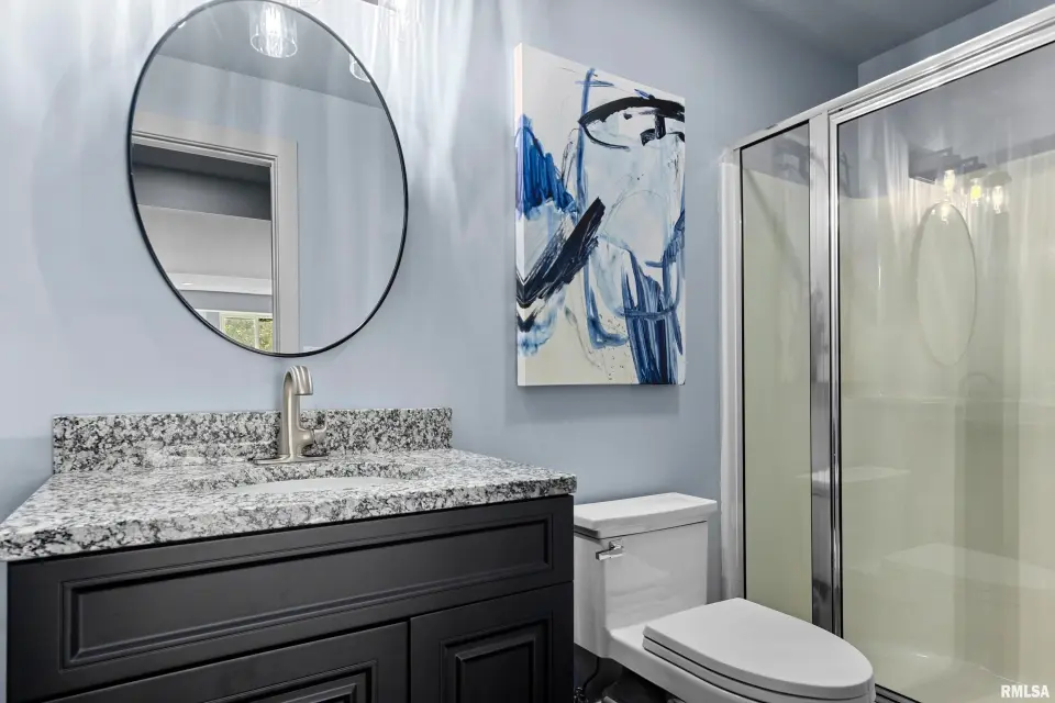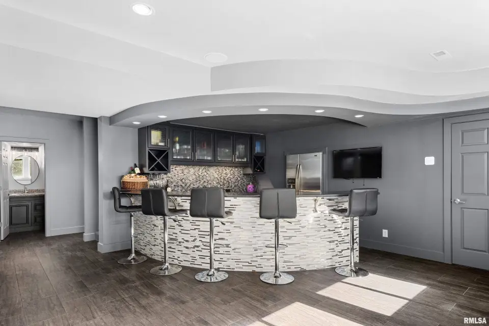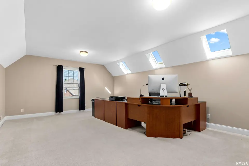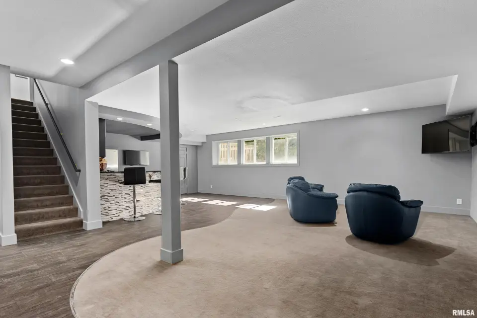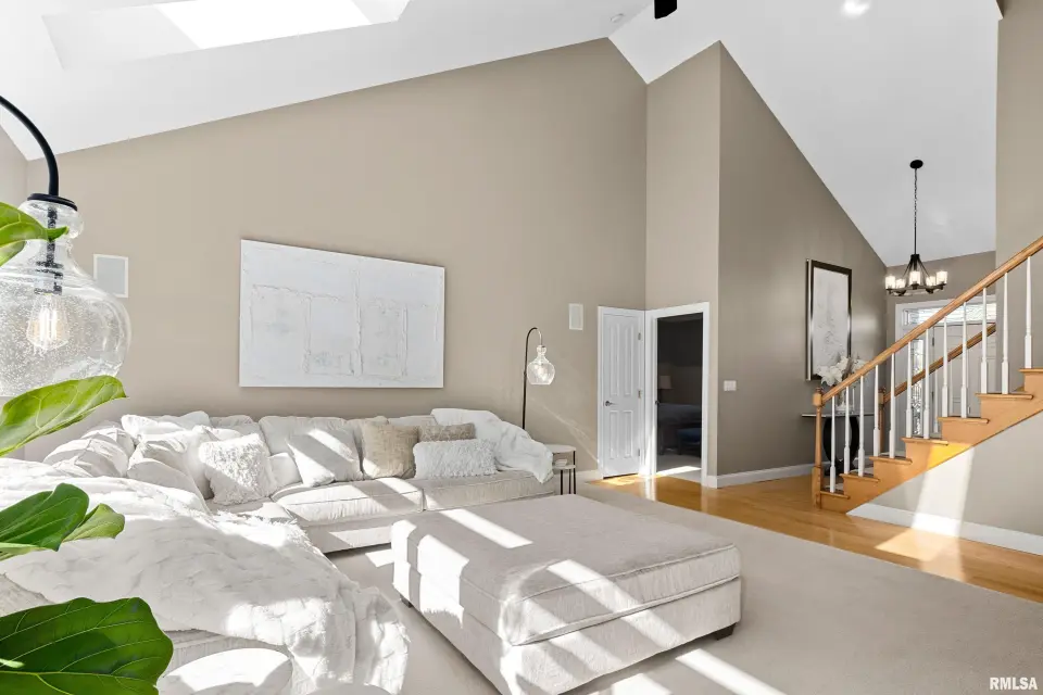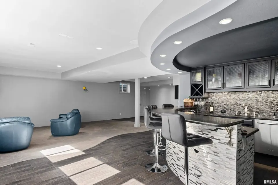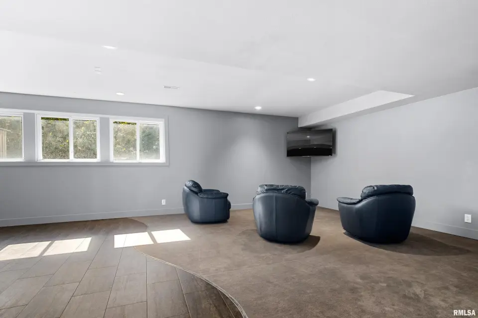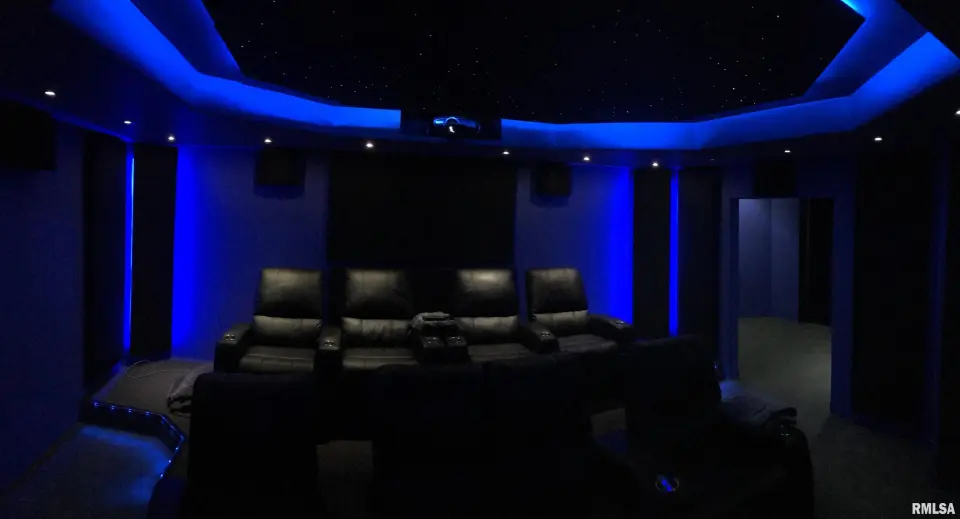 Step inside to find a sun-drenched living room with a cozy gas fireplace, a formal dining room with warm wood floors, and a spacious kitchen boasting beautiful cabinetry, a large island, and eye-catching countertops. The main level also features a private master suite for ultimate convenience. Upstairs, you'll find three generously sized bedrooms and a massive bonus room/den/office with skylights—perfect for work, play, or guests. The finished basement is an entertainer’s dream! Enjoy a custom-built wet bar with stunning granite countertops, a full bathroom, and a sprawling recreation room. Movie nights or gaming will never be the same in the impressive theatre room with dazzling lighting features and pre finished conduit lines in place. for all your future needs. All high end Theater equipment is negotiable. Additional highlights include a 3-stall attached garage with epoxy floors, an irrigation system and a location that offers both privacy and convenience. This home is truly one-of-a-kind—don’t miss your chance to make it yours!