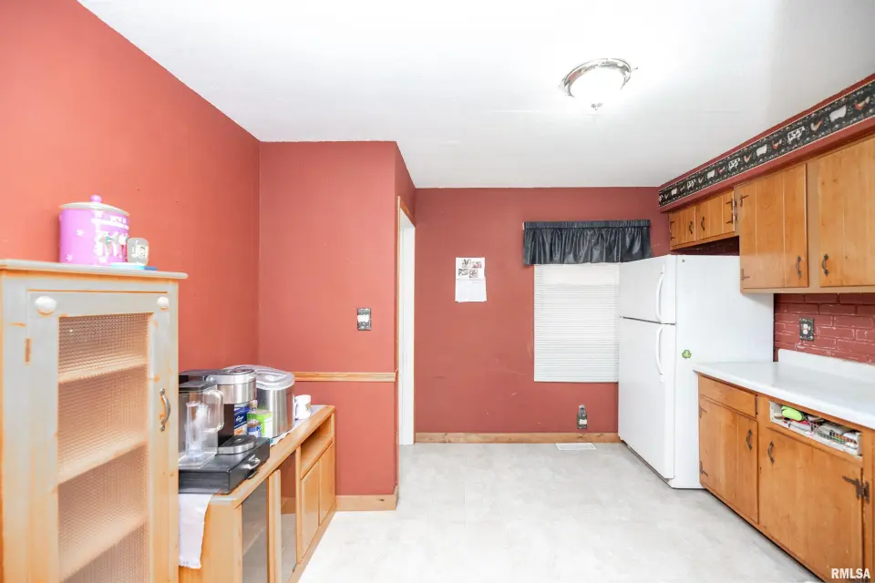 The inviting kitchen features ample counter space, generous cabinetry, and comes fully equipped with all appliances. Enjoy the convenience of a main floor bedroom and full bath, plus two additional bedrooms and another full bath upstairs. The spacious sunroom is a standout feature with laundry, filled with natural light and surrounded by windows—perfect for morning coffee, relaxation, or entertaining. Step outside to a nice-sized yard with a patio and partial fencing, providing room for kids, pets, and outdoor gatherings. A detached 1-stall garage adds extra storage and convenience. With additional baseboard heat upstairs and a functional layout. Updates include roof-24, hvac-22 and main floor bathroom this home blends charm, practicality, and value. Don’t miss this opportunity to own a move-in ready home in a friendly community—schedule your showing today!