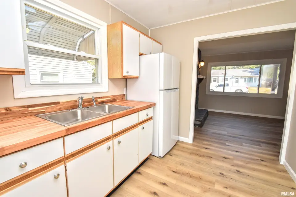 You'll love the spacious patio, ideal for grilling out or unwinding after a long day. Inside, nearly everything has been updated, including flooring, paint, fixtures, butcherblock counter tops, and electrical service. The layout offers comfortable living with efficient use of space, and the backyard provides room to garden, play, or just enjoy the fresh air. Located in a convenient area of Pekin, you’ll be close to shopping, schools, parks, and more. Whether you're a first-time buyer or downsizing, this home is a great blend of charm and value. Agent owned