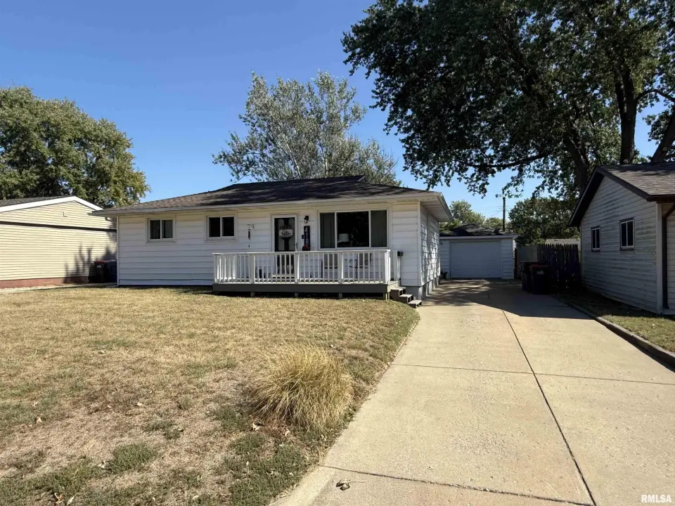 Welcome to this charming and well-maintained 3-bedroom, 1-bath ranch, nestled in a quiet North Pekin Neighborhood. This home offers comfort just minutes from shopping and schools. Enjoy the evenings on the front or back deck, perfect for relaxing or entertaining. The large, fenced backyard features a cozy fire pit, a storage shed, and a privacy fence — only a small section across the driveway is needed to fully enclose it. Inside, you will find a spacious living area, a partially finished basement with 9-foot ceilings, a large family room, and abundant storage space. The home also includes a detached 1-stall garage and comes with a Home Warranty for added peace of mind. Seller offering an allowance of $1,100 for a new Bathtub surround.