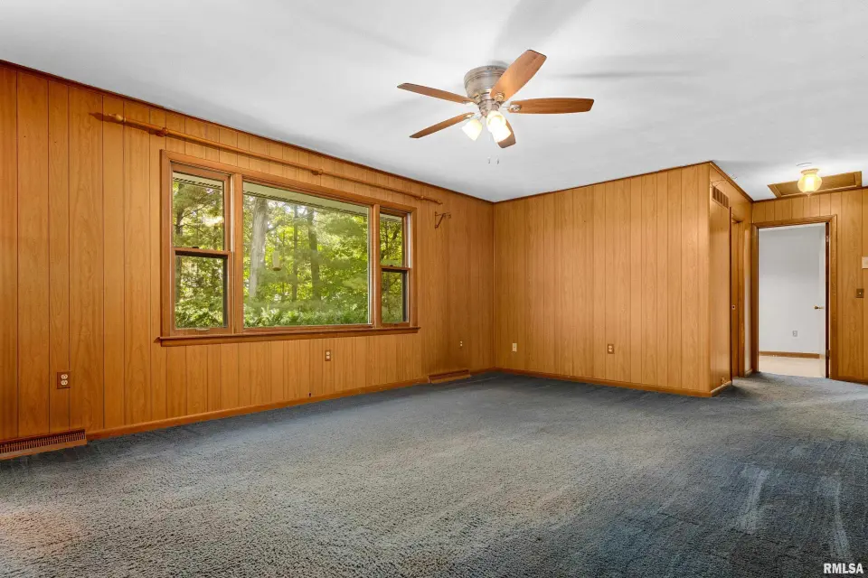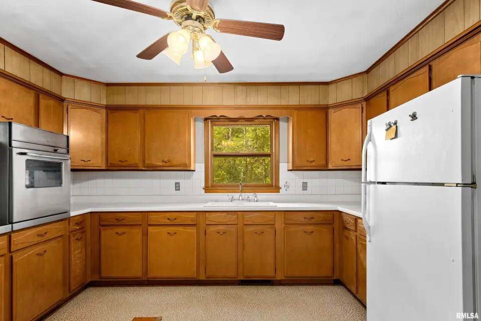 Sitting on just under 2 acres across from open farmland, the setting is serene and private, framed by mature trees—including shagbark hickories and fruit trees that line the front yard. Inside, a spacious living room and a large lower-level family room provide plenty of room to relax or entertain. The walk-out basement opens onto an oversized patio that overlooks the wooded backyard, where nature and privacy abound. The kitchen also enjoys a lovely backyard view, and the attached garage and multiple sheds add valuable storage and hobby space. With its solid layout, natural setting, and the character that only time can give, this home is ready for someone with vision to make it their own. Home is being sold as-is, offering a rare chance to customize and update in a beautiful, country-quiet location.