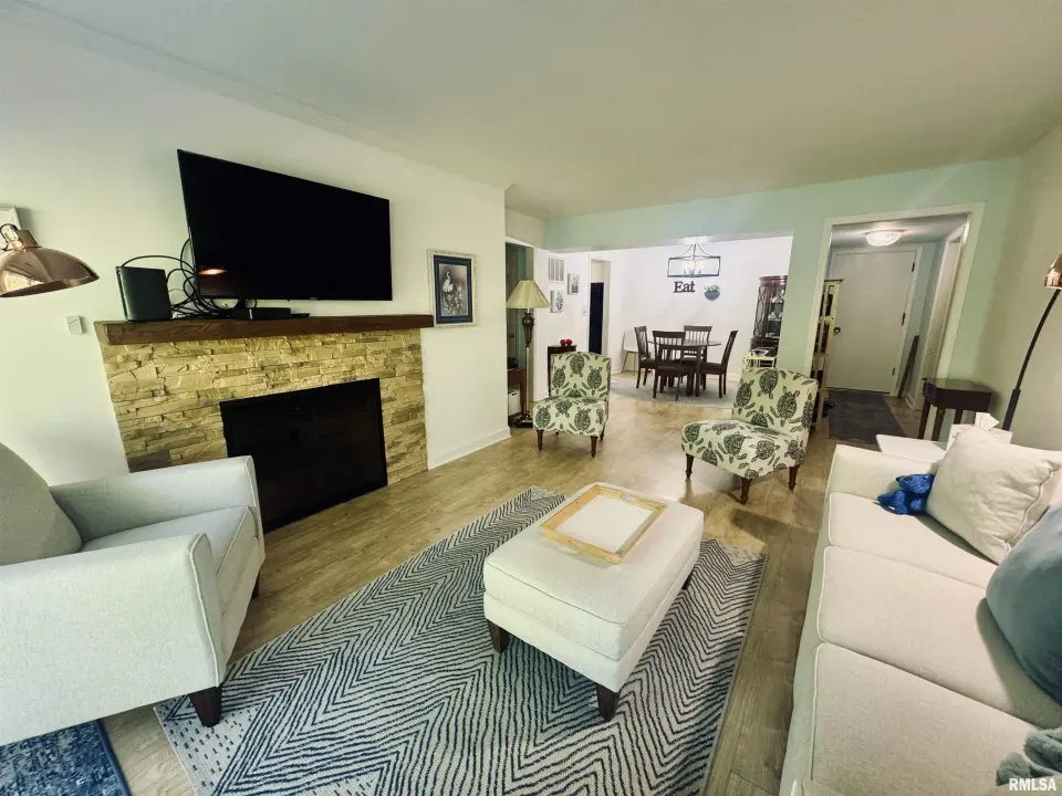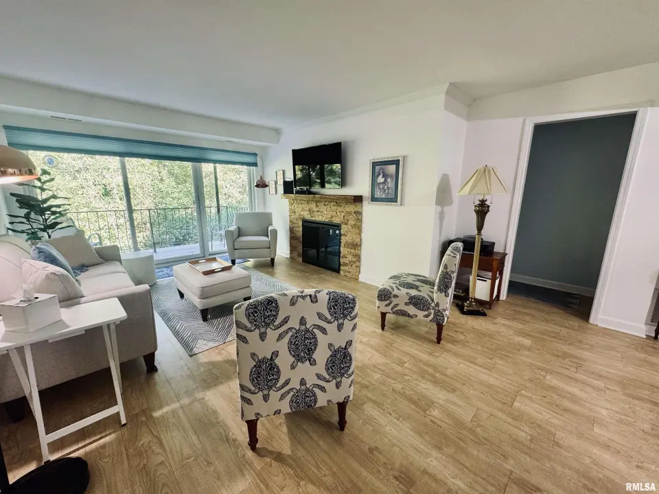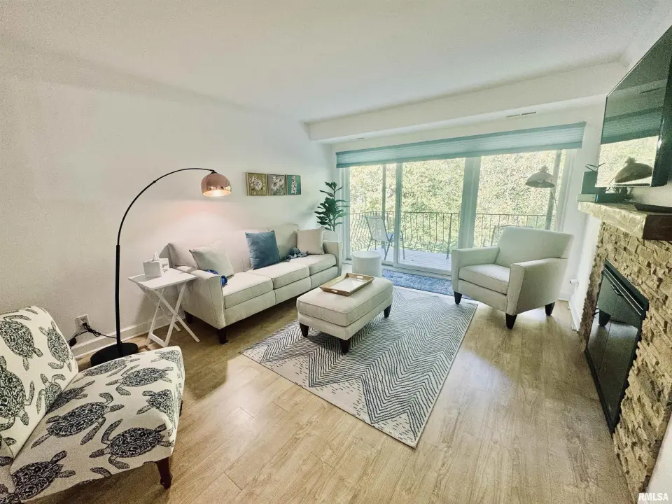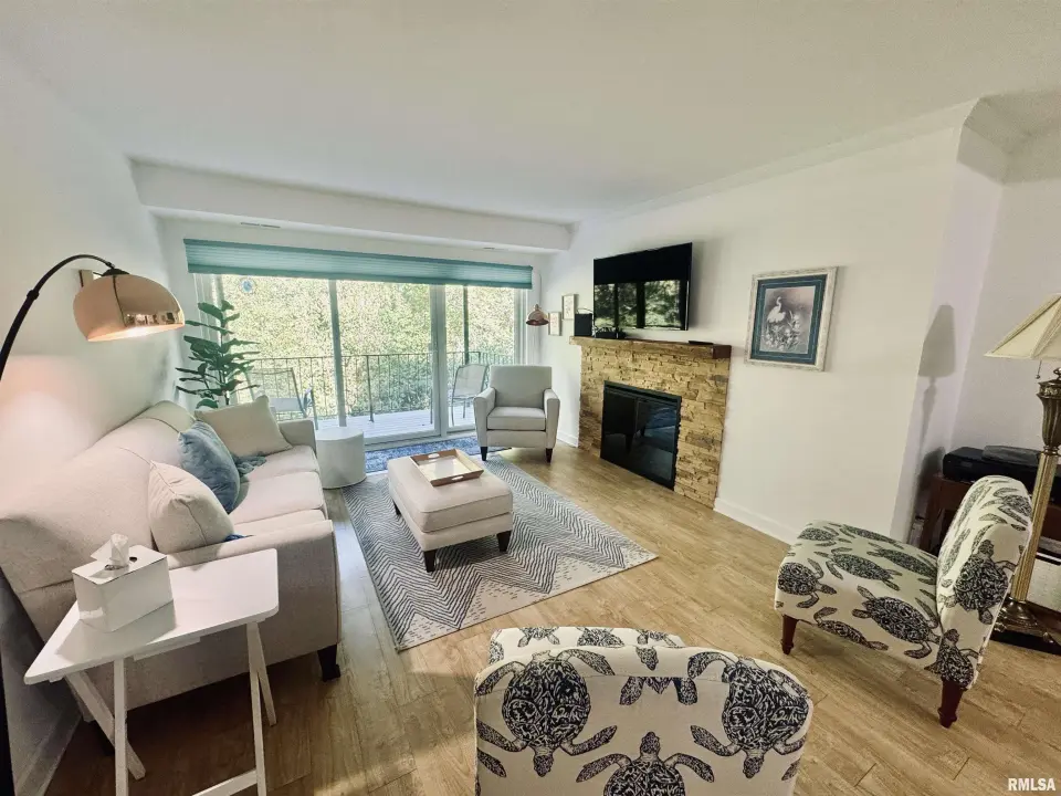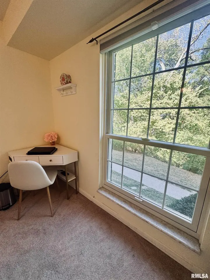 The open, airy layout features generous storage, in-unit laundry, and all appliances are included. Recent updates—spanning baths, flooring, lighting, windows/triple slider, stylish fireplace surround with new insert & Nest thermostat - add a fresh, move-in-ready touch. Residents enjoy peace of mind with secure underground parking, elevator for easy access, and private pool perfect for summer relaxation. Ideally located near shopping, dining, the Rock Island Trail, and just minutes to downtown Peoria—this is the perfect combination of tranquility, convenience, and low-maintenance living. Pets, Smoking, & Rentals not allowed.