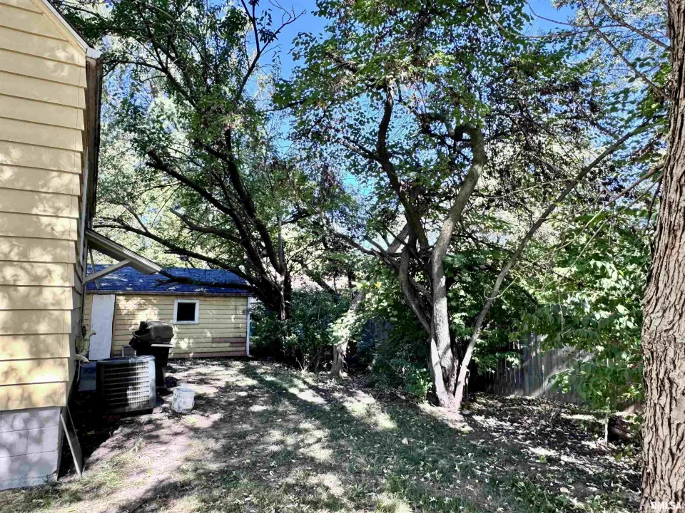 The main level has a living room, dining room, kitchen, two bedrooms, and a bath. The upper level has two bedrooms and a larger landing at the top of the stairs that would be a nice office area or reading nook. The home has hardwood floors in most rooms, a basement with lots of storage, and a detached garage.