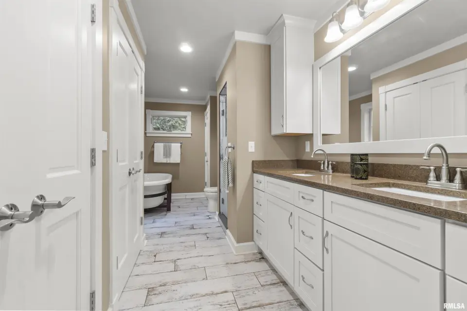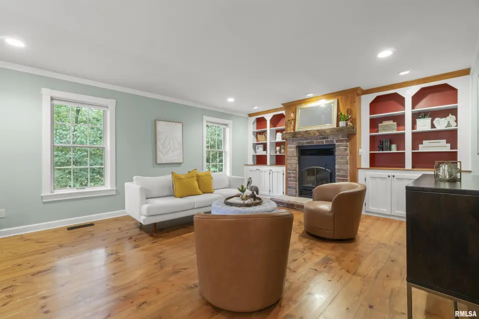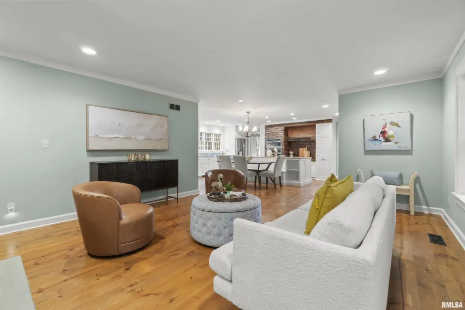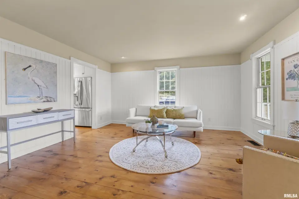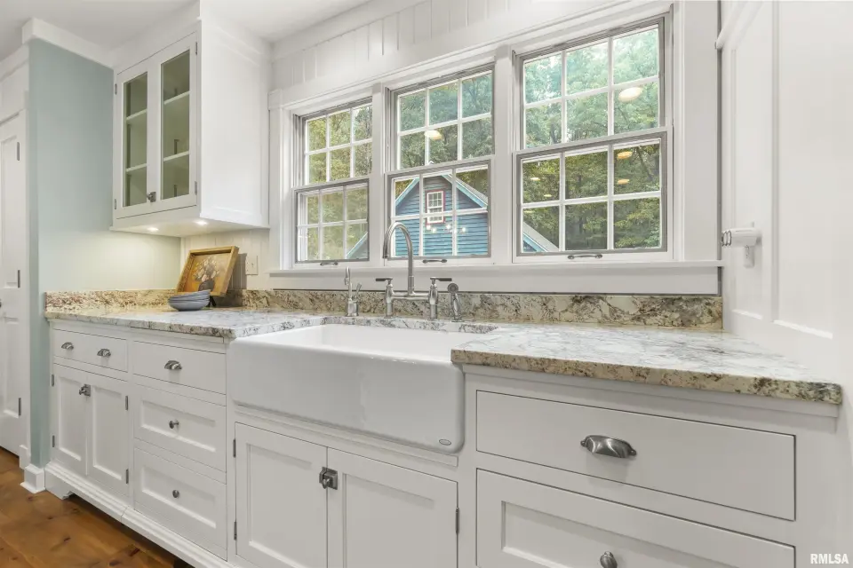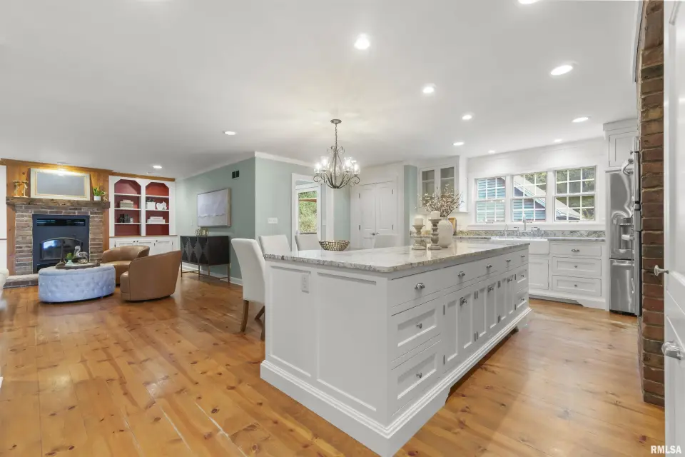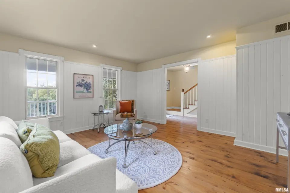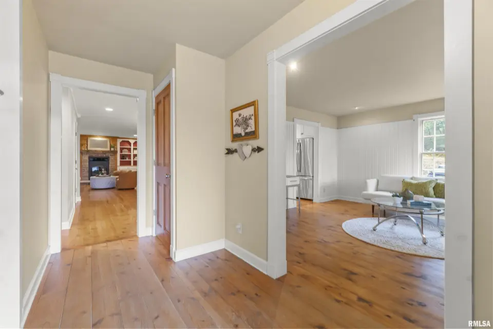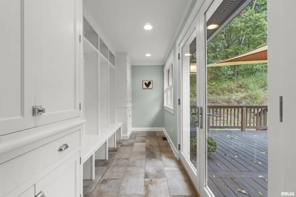 A wide staircase leads to the newly refinished, full-length front porch-the perfect spot to relax and enjoy the peaceful setting. Step inside to stunning hardwood floors and a large foyer that sets the tone for the home. To your right, you’ll find a versatile space ideal for a family room/formal dining area. The open floor plan flows seamlessly into the gorgeous, professionally renovated kitchen, living room, and mudroom—a custom remodel by Dan Waibel. The kitchen features striking granite countertops, a gas stove, abundant cabinetry, built-in bench seating, and a fabulous pantry. The mudroom offers exceptional function with custom lockers and cabinetry, plus glass paneled French doors that open to a spacious deck overlooking the scenic yard. Upstairs, you’ll find two generous bedrooms and a shared full bath with plenty of space and charm. The lower level adds even more versatility with a recreation room, fourth bedroom, full bath, large bonus rm. (appx. 24x14-partially finished), workshop, storage room, and a 20x15 indoor basketball ct/gym! The oversized 3-stall garage provides ample parking and includes stairs leading to a huge unfinished storage area that could easily be finished for additional living space. If you’re looking for privacy, space, and beautiful craftsmanship, this is a must see!