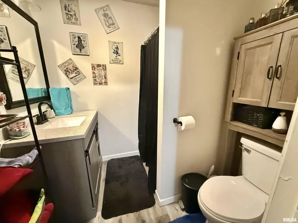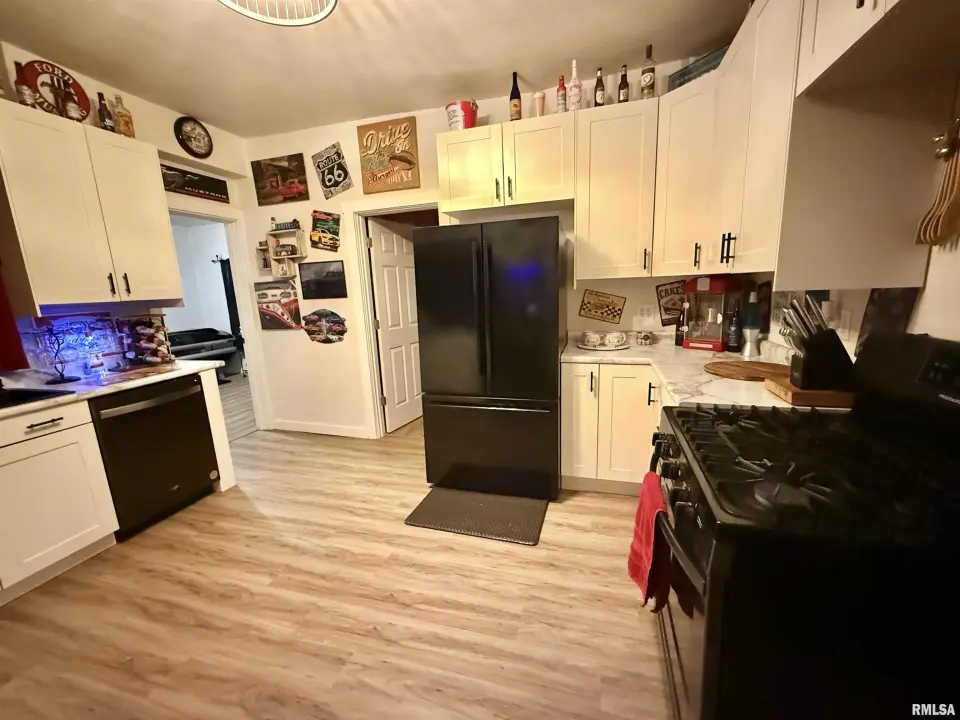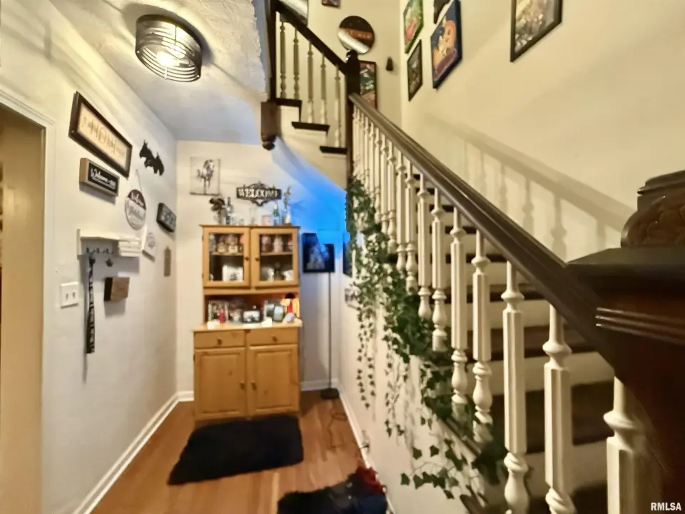 Renovated two story home. Four bedrooms with the main bedroom being on the main level with its own bathroom. Open living room and dining room. Open staircase in the front entry way. The kitchen has modern cabinetry and counter tops. Refrigerator stays. Main floor laundry room. Plus an additional half bathroom on the main level. Upper level has three bedrooms and full bathroom. Furnace/Central air and water heater installed about 2022. Updated Electrical and Pex Plumbing lines. Vinyl siding. Front porch. There is a deck just out from the kitchen to enjoy. Living room has a fireplace with an electric insert. Some replacement windows. Hardwood flooring in DR/LR and two bedrooms.