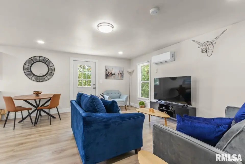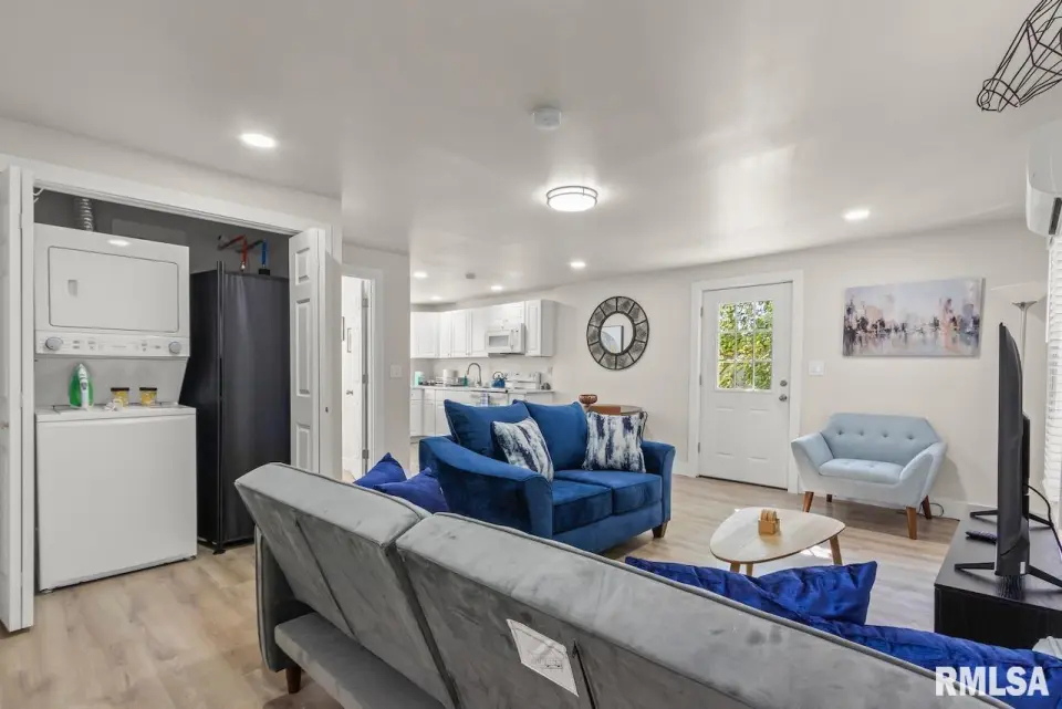 Each unit comes with private laundry and its own dedicated picnic area, creating a unique sense of space and privacy. Guests also enjoy four designated rear parking spaces, and inviting front and back garden areas. Set in a prime location within walking distance of the Village of Dunlap, the property also provides direct access to the scenic Rock Island Trail—perfect for biking, running, and outdoor enthusiasts. Blending personality with convenience, this duplex stands out as a high-demand short-term rental and a valuable contributor to the strength and diversity of the 11-unit portfolio. This is one property in a 11 unit portfolio spread over six properties. Seller does not wish to split the portfolio at this time.