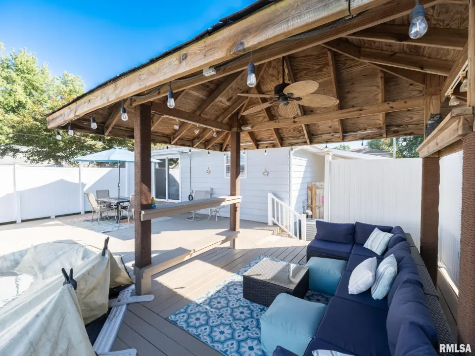 OUTSTANDING BACK YARD INCLUDES ABOVE GROUND POOL WITH REPLACED LINER 2022, WRAP AROUND DECK, GAZEBO, VINYL PRIVACY FENCING, PLAY AREA... AND, 2.5 STALL HEATED GARAGE WITH ADDITIONAL ACCESS DOOR, EPOXY FLOOR 2021, AND ATTIC STORAGE! WELL CARED FOR HOME!! SO MUCH VALUE!