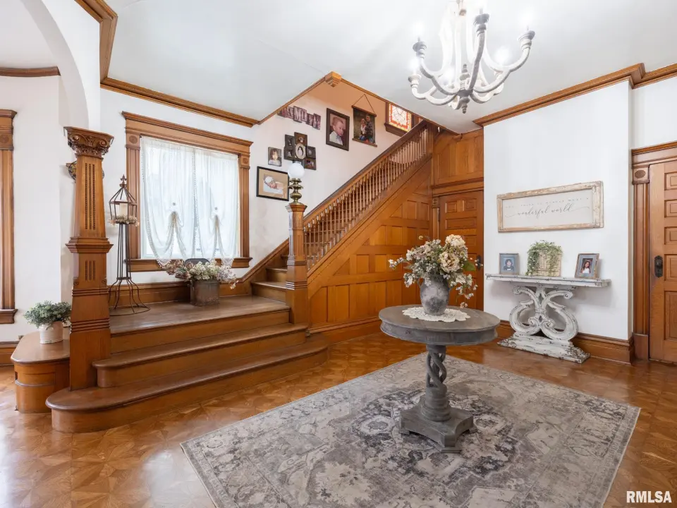 All the amazing original woodworking, built ins, dramatic entry open staircase, pocket doors, french doors, beamed ceilings, and much more you would expect in a PEKIN HISTORIC & legacy home as this! Even a Butler pantry 11 x 6 ! Third level original ballroom space perfect for rec room or guest suite! Loads of major upgrades including : New Boiler heat 2025, Central Air 2022, New roof including carport 2016, Beautifully Upgraded huge front Porch , Carport upgrades 20K, Loads of Anderson windows, Electrical panels, All new full bathroom remodel, Footings and Walls for new future garage, New stucco, Sunroom remodel, Most Fixtures replaced , Landscaping, 3rd level gutted with even new walls included ( Pictures will be added on Monday), and tree removal, plus more! WOW