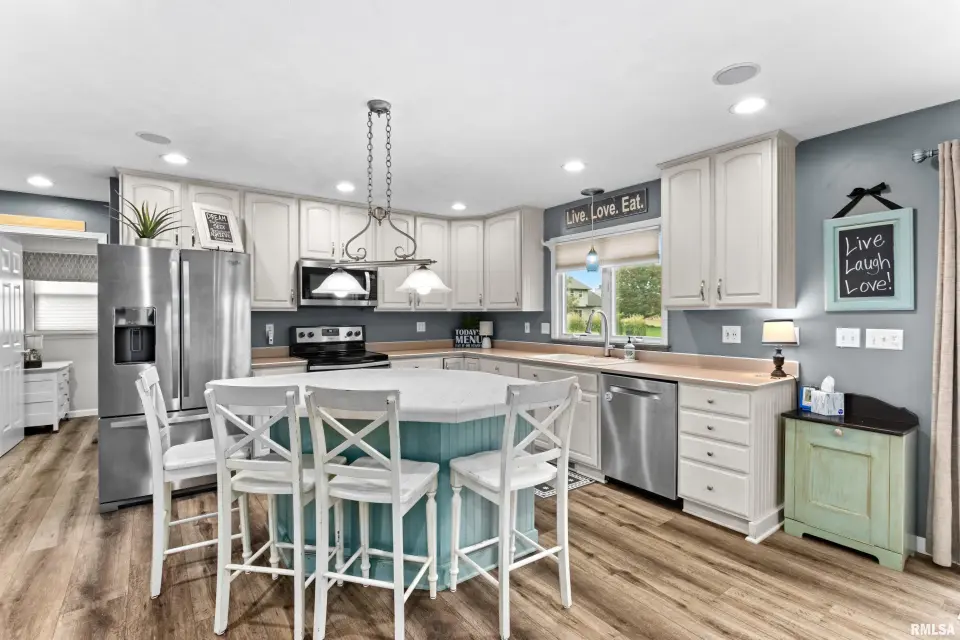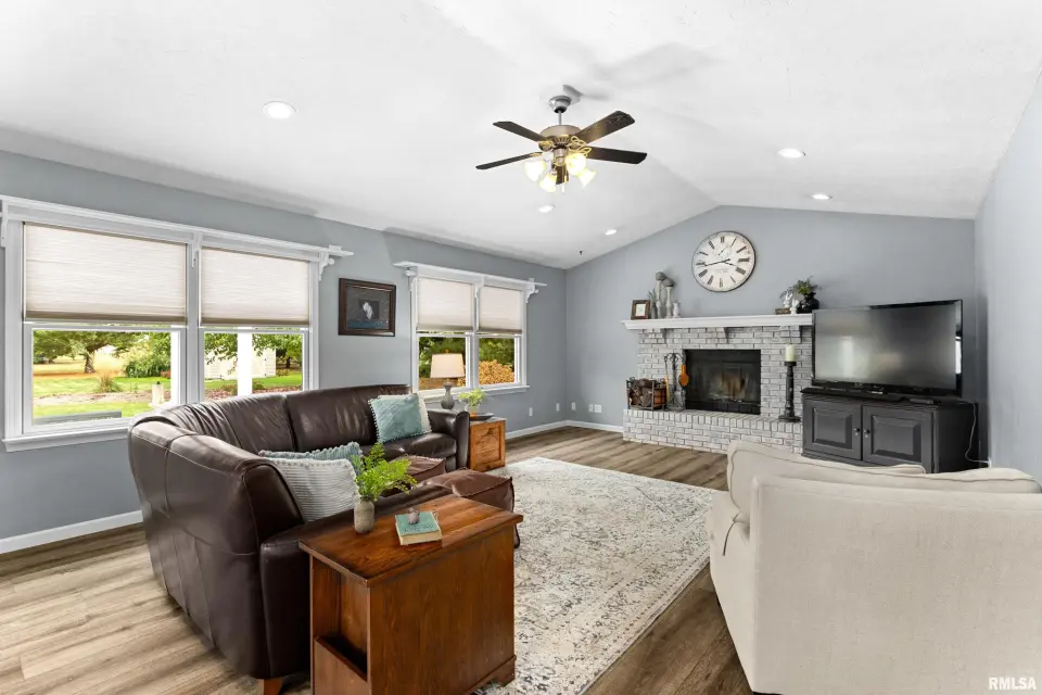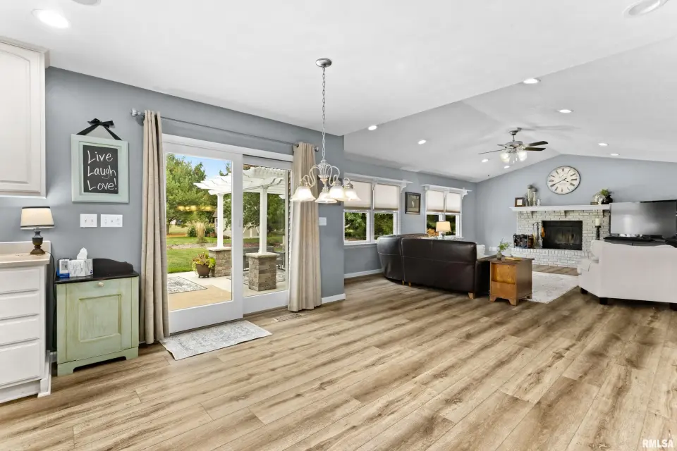 The main level boasts luxury vinyl plank flooring throughout, creating a seamless, modern look that’s both stylish and durable. Enjoy cozy evenings by the wood-burning fireplace in the open-concept living area. The wide-open kitchen and living floor plan is perfect for entertaining, complete with a large island and breakfast bar, stainless steel appliances, and plenty of counter space. Downstairs, you’ll find a full finished basement offering even more living space, tons of storage, and room for recreation or hobbies. Step outside to your HUGE backyard with over half an acre lot, featuring an 8x8 pergola-covered patio—perfect for relaxing or hosting summer gatherings. The property also includes an extra-large 19x12 shed with loft storage, underground fencing for pets if needed, and ample storage throughout the home. This home truly has it all—space, comfort, and functionality inside and out!