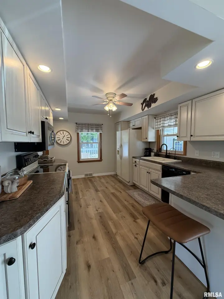 Featuring luxury plank flooring throughout and a warm neutral color palette this home offers comfort, style and effortless living all on one level. The living room is filled with natural light from large open windows creating a bright and inviting space to relax. The kitchen includes all appliances, which stay with the home (not warranted) and a convenient main floor stackable laundry. Enjoy the outdoors on the covered patio or side porch, perfect for morning coffee or evening entertaining. This property also include a 2-car detached garage with heated and cooled workshop. The basement offers a full bath and plenty of extra storage, current owners have a full workout area which could be modified for multitudes of uses. Nestled on a corner lot with an easy to maintain yard this charming all brick home is up to date and ready for you to move right in.