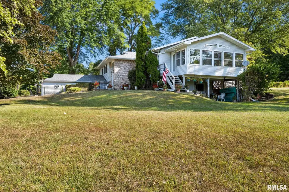 Nestled on 3.45 scenic acres with a shared pond, this home offers the perfect blend of privacy and convenience. The upper level features a spacious eat-in kitchen and a formal dining room that opens to a bright sunroom overlooking the pond. The walk-out lower level is ideal for entertaining with a fireplaced family room, wet bar, and rec room with pool table and storage. Step outside to the patio with serene pond views . Updates include HVAC (2023), roof (2010), garage addition (2005), sunroom (2000), Generac generator (2013), new garage door opener, and lower-level remodel (2003). Enjoy a gardener’s paradise with a 12x28 greenhouse, shed, and a 24x38 pole barn featuring two 11x12 horse stalls. A beautiful, well-maintained property offering space, comfort, and peaceful country charm just minutes from town.