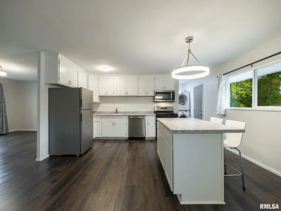 The open-concept layout offers seamless flow between living, dining, and kitchen spaces—perfect for everyday living and effortless entertaining. Beautifully refreshed with an updated kitchen and bath, plus newer carpet and fresh paint throughout, while major improvements in 2023—including a new roof, windows, furnace, and electrical system—offer peace of mind and long-term value. The attached one-stall garage offers everyday convenience, complemented by a spacious yard and a handy storage shed. Whether you're starting out, downsizing, or simply craving low maintenance living, this home delivers comfort, style, and functionality in one smart package.