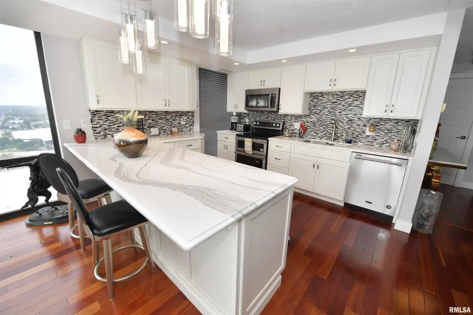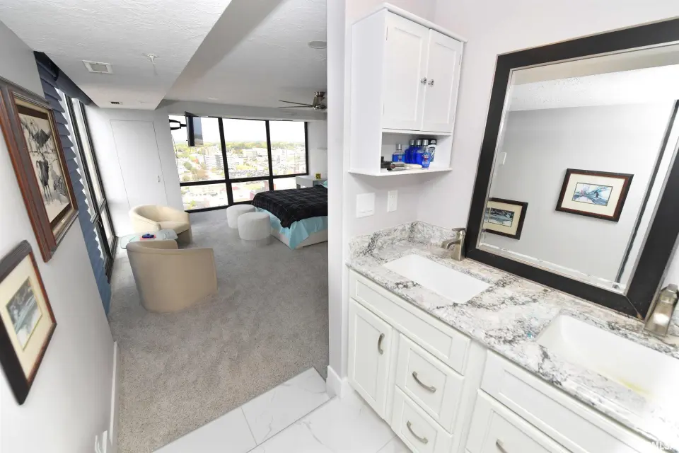 This unit has been fully updated with newer kitchen and granite counter tops, stainless appliances, tile showers, paint and lighting. Electric remote-control blinds on all windows. The unit can also come fully furnished with the higher end furniture so it could be turnkey moving and maintenance free living. 2 large bedrooms with private bathrooms and large walk-in closets. In unit laundry. HOA includes water, sewer, and trash. Parking in the deck for $75 per space per month. Private parking area available for owners in the deck. Conference room, party room, and outdoor patio with grills available to owners as well. You can't beat the view and everything this unit has to offer!