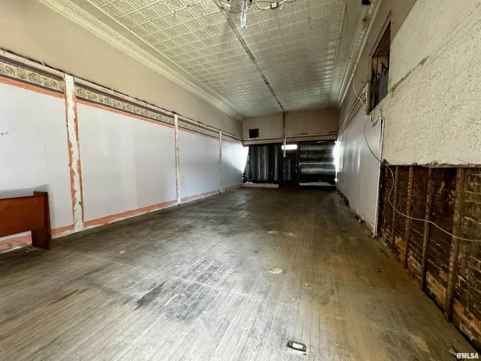 The main level of this building has a storefront that has just over 1000 sq ft, with tall ceilings and with original tin ceiling, large front windows for display, a half bath, and an unfinished basement area, vacant, ready to be finished as needed, great space for retail or office. Also on the main level of the building is another unfinished space that would make a great office area or small retail, it has just over 480 sq ft. On the back of the building is a finished office/retail space with a half bath, small storage closet, and large window, all tastefully decorated. It is currently rented at $400 a month, ending Jan 2027. The upper level of the building has been gutted and is ready to be renovated into apartments or office space. The front part of the upper level has just over 1000 sq ft, with large windows with great views of the downtown, and the back part also has lots of large windows with great views. The building has a new roof as of April 2024, and almost all new windows in 2025.