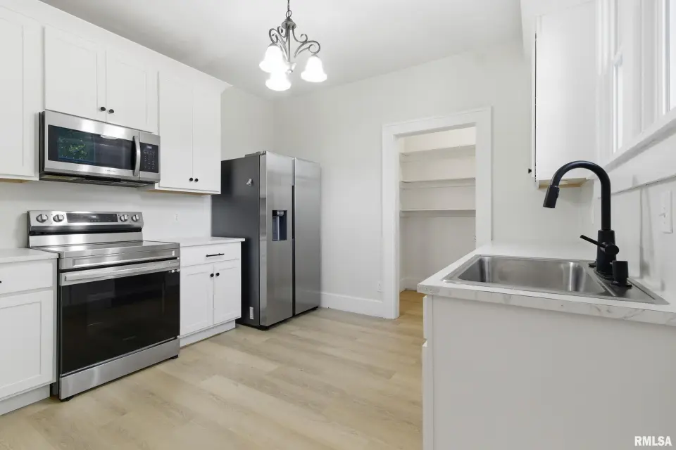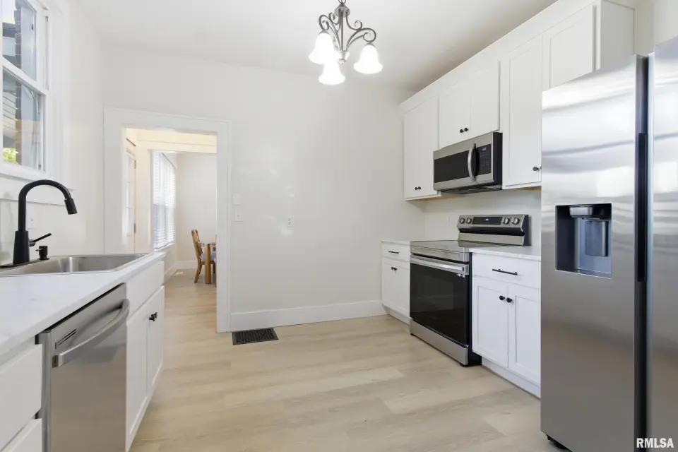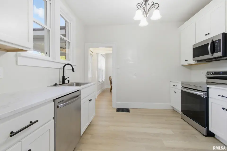 Starting with a brand new kitchen and appliances, to all new flooring throughout the home (vinyl plank and carpet in the bedrooms). The main level and upper bathrooms also received new cabinets, flooring and fixtures. When entering rooms throughout the house you will appreciate all the new doors, hardware and light fixtures. All 18 windows in this home received vinyl replacement windows and were wrapped on the exterior. The exterior also had maintenance free facia and soffitt added in addition to new gutters. On the front of the house you will enjoy sitting on the new deck. To complete the renovation a new furnace and central air unit was added. This house sits conveniently located one block from Western Illinois University and a short walk to the new Performing Arts Center! If move-in ready is important to you, this house fits the bill! It would be very hard to find this much space that has received this much renovation for this price!