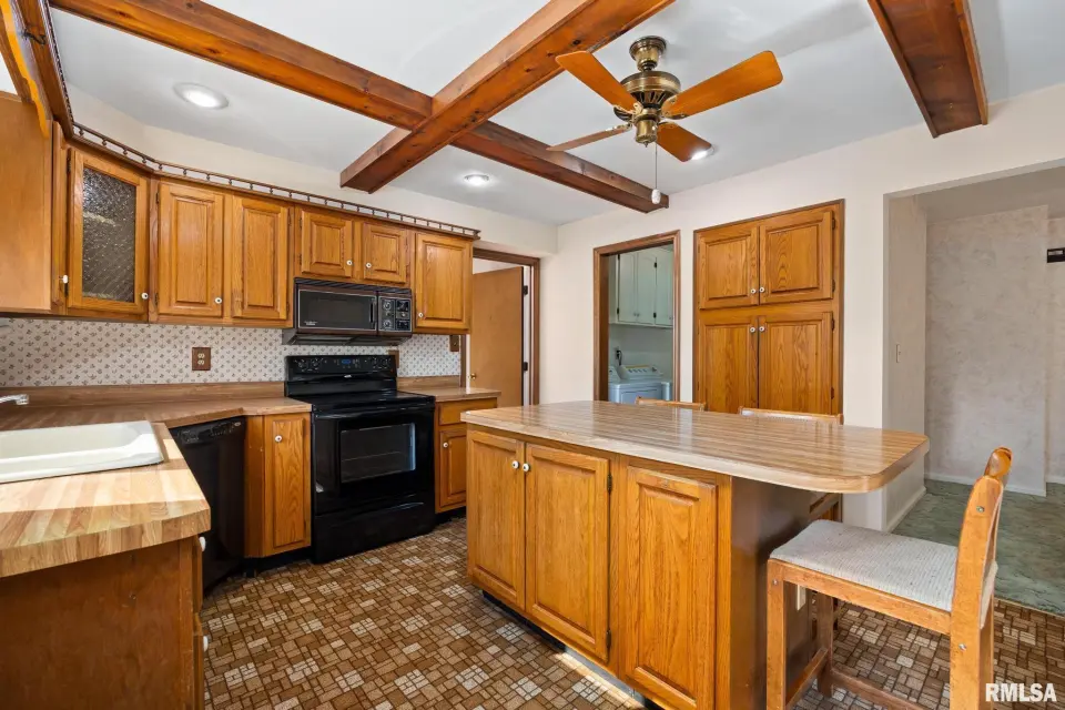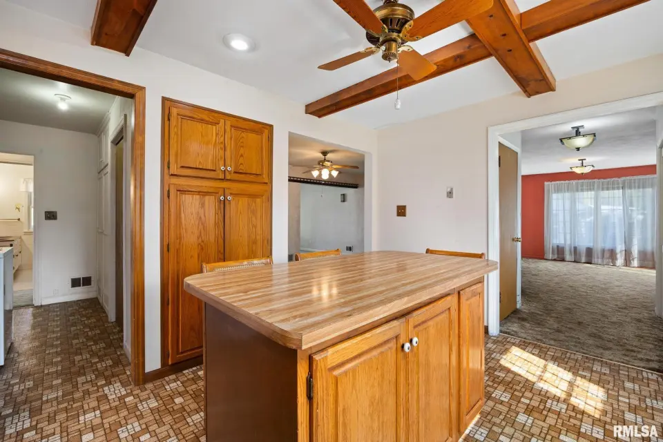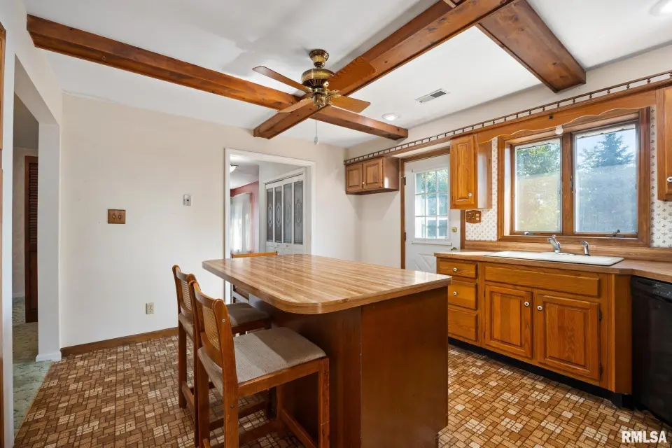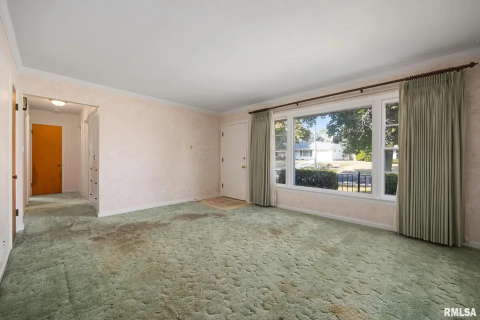 ft. ranch home offers a fantastic floor plan in an excellent subdivision and a great central location in Peoria! The spacious front living room welcomes you with a large picture window, crown molding, and a convenient coat closet plus other great storage closets throughout. A separate family room adds extra living space and includes a large corner window that fills the room with natural light plus the convenient 1/2 bath located between the family room & kitchen. Very functional kitchen offers a window over the sink overlooking the fenced backyard, a center island with breakfast bar, wood beams on the ceiling adding great character, recessed lighting, & excellent built-in pantry! Enjoy easy access to the patio—perfect for outdoor entertaining! Main floor laundry with storage cabinets & closet adds to the convenience. Charming built-in hallway linen cabinet and full bath with double sink vanity and tub/shower combo. The 3 bedrooms complete this home and one has a slider to the backyard as well. Roof approximately 2008, some replacement windows & exterior painted in '25. This home has tons of potential, is priced with room for updates so you can make it your very own, and once again you will LOVE the floor plan! Don’t miss this great opportunity in the desirable Knoll Crest Subdivision. This property is being sold "as is".