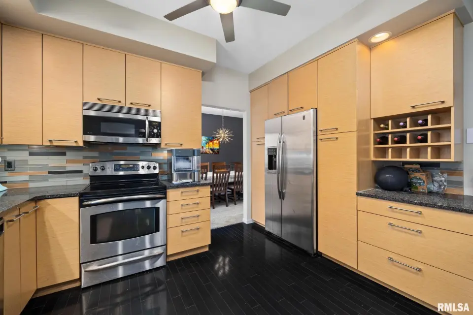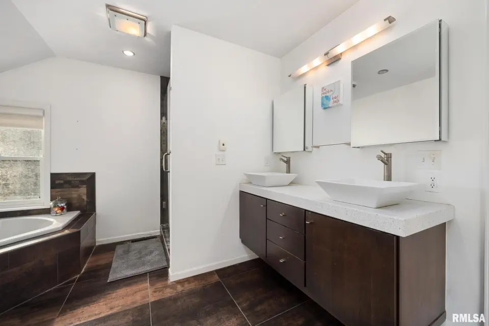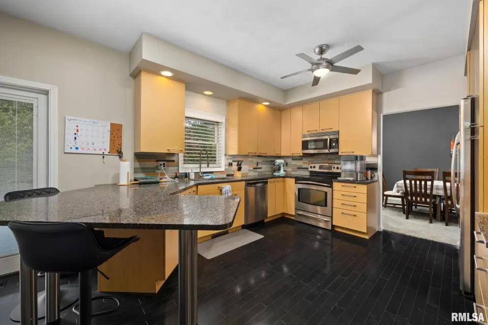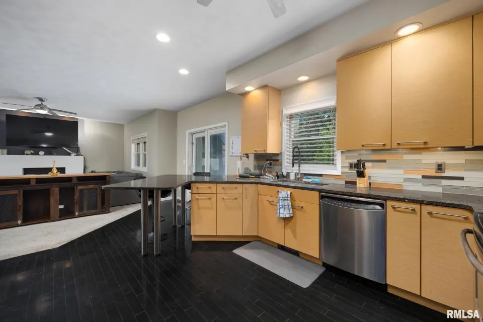 The open floor plan seamlessly connects to a dining area that comfortably seats 10—perfect for family dinners and holidays—topped off with a contemporary statement light fixture that adds warmth and sophistication. You’ll love the high-end kitchen featuring abundant custom cabinetry with soft-close drawers and rollouts, stunning quartz countertops, tiled backsplash, stainless steel appliances, and rich black wood flooring.The kitchen opens to a main floor family room with a gas fireplace and inset art niches, extending effortlessly to the large patio—ideal for outdoor entertaining.Head upstairs through the open staircase to four spacious bedrooms, where the primary suite steals the show! Enjoy a generous bedroom layout with room for a sitting area, a dream walk-in closet w/heated floors with built-ins, and a spa-inspired ensuite featuring heated tile floors,dual floating vanities, a separate soaking tub, oversized designer tile, and a walk-in glass shower.The finished lower level offers even more living space—perfect for movie nights, game days, or a private hangout area for the family.All this and located in Dunlap School District