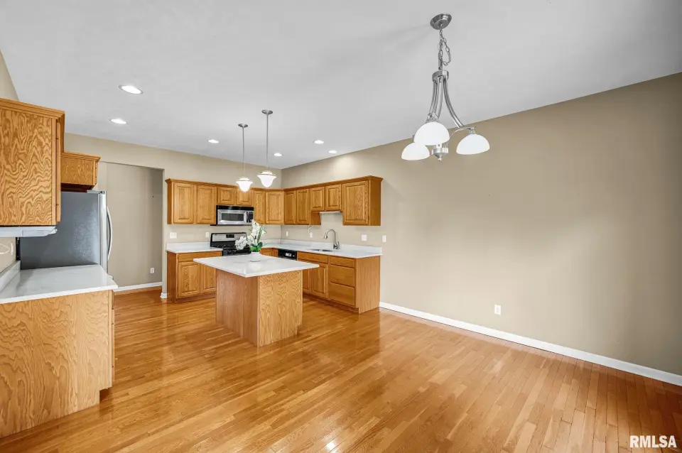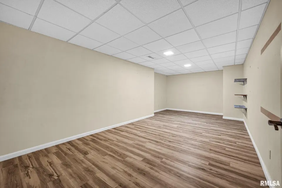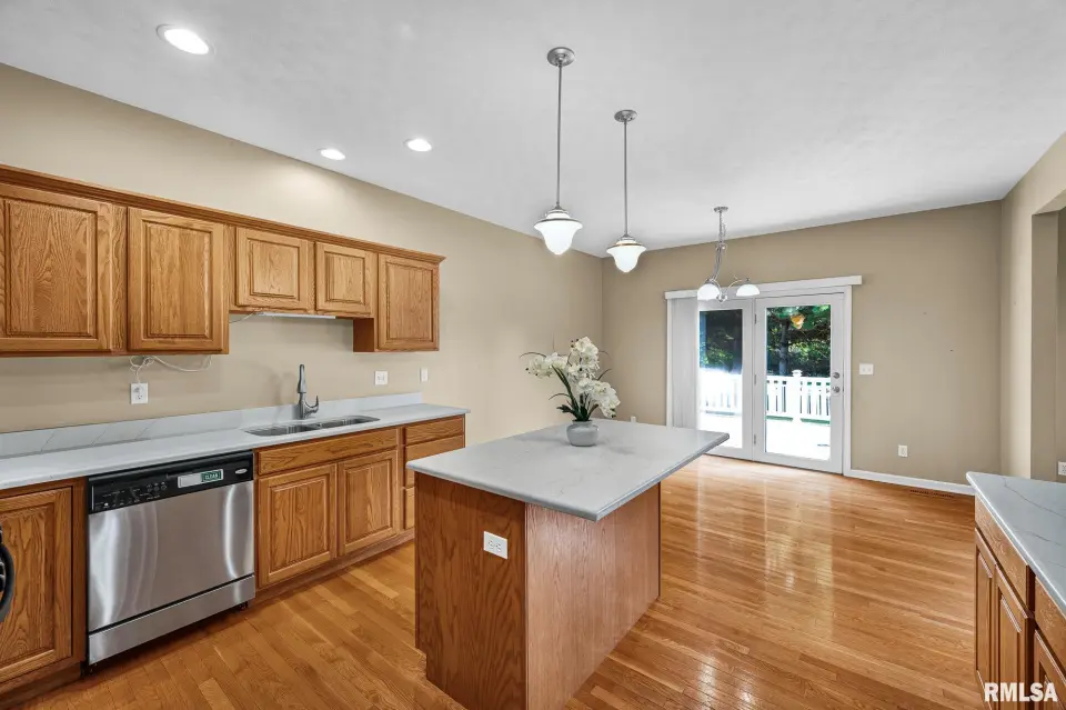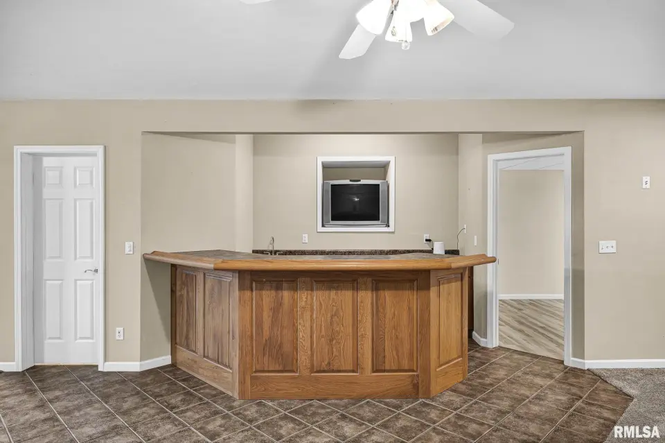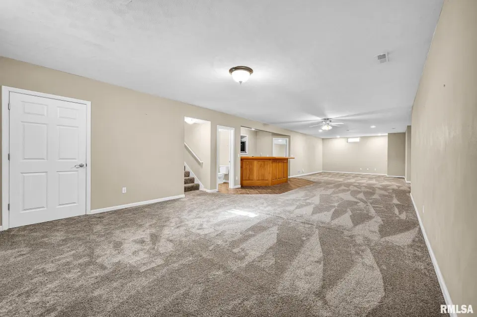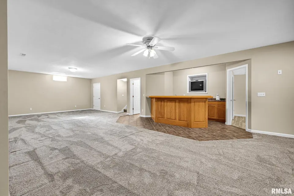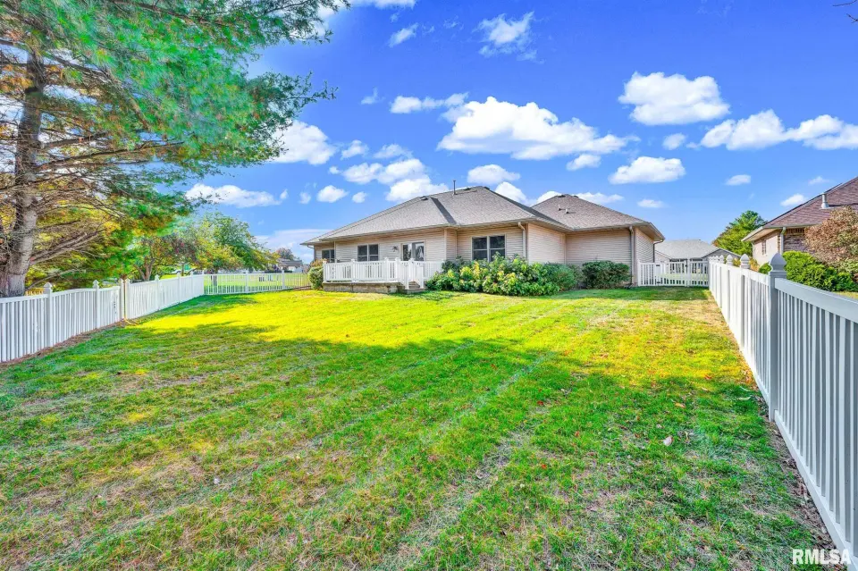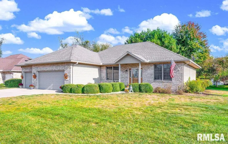 Keeping your lawn pristine is effortless with the winterized irrigation system. The desirable split-bedroom floor plan ensures privacy. The Primary En-Suite is a true retreat, featuring a spacious bathroom with a garden tub, separate shower, wide vanity, and a large walk-in closet. Two additional good-sized bedrooms and a full bath are located on the opposite side of the home. A convenient main-floor laundry room with a new washer and dryer (2024) completes the main level.The entertainment continues in the fully finished basement, which spans the width of the home. This expansive space includes a wonderful recreation room and a custom-built wet bar—ideal for hosting game days or parties! The basement also features a newly finished LVP-floored den, perfect for a home office, gym, or play area. The large 3-stall garage offers extra depth for a dedicated workshop area. The home exterior is a charming mix of brick and vinyl siding. Key Updates: Peace-of-mind updates include: A new Water Heater (2025), Roof replacement (2019), and a Dewatering System (2019). This wonderful home can be yours for the Holidays! Don't miss the opportunity to own this turn-key home. Schedule your private showing today!