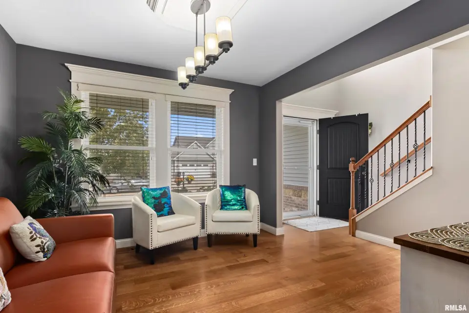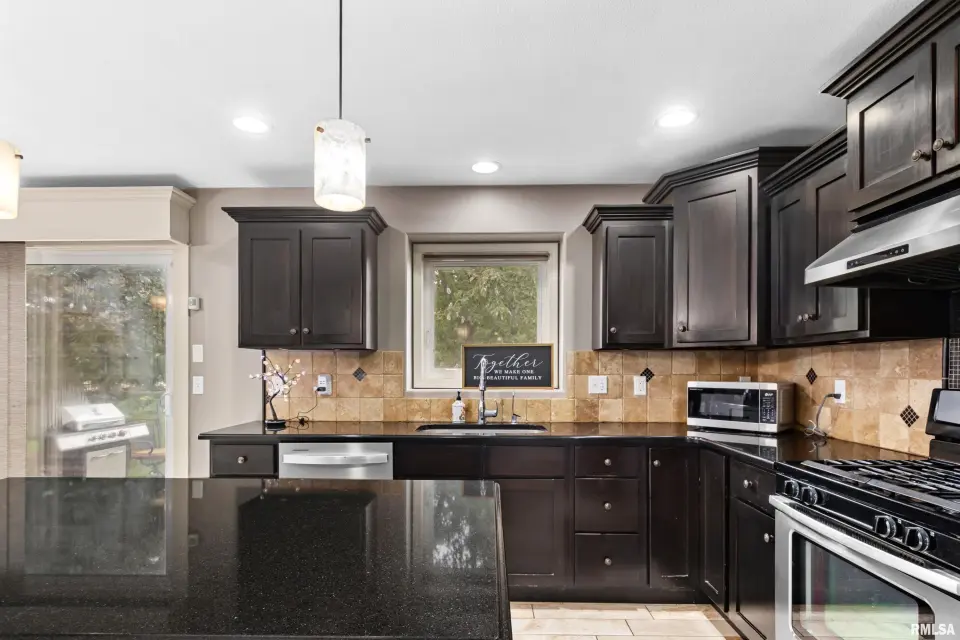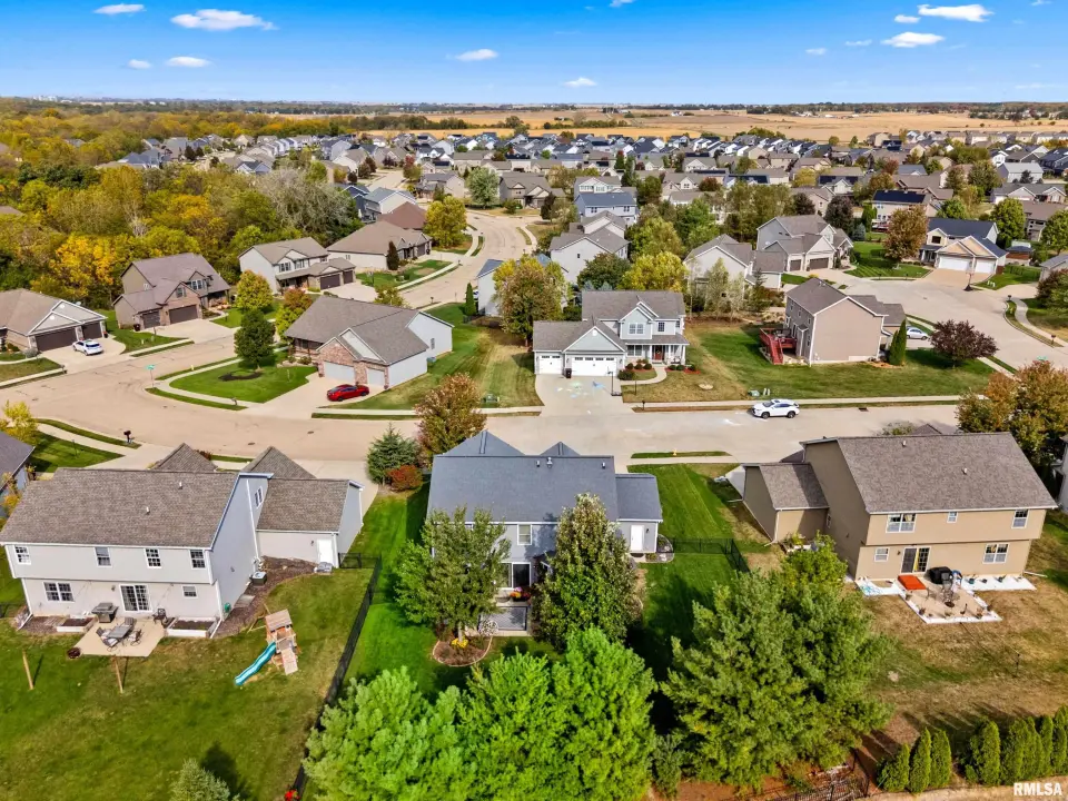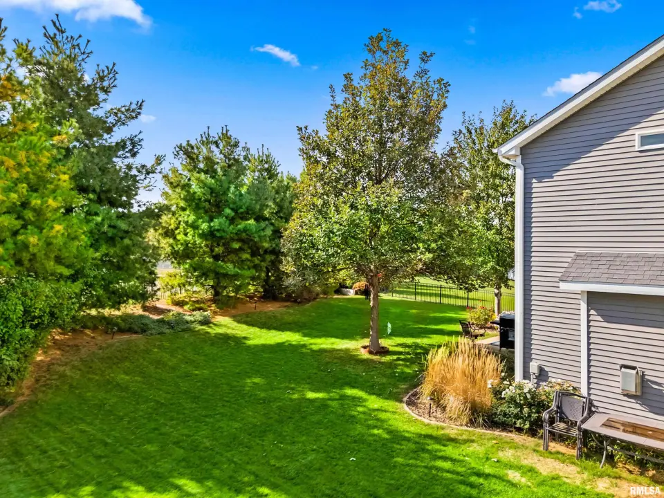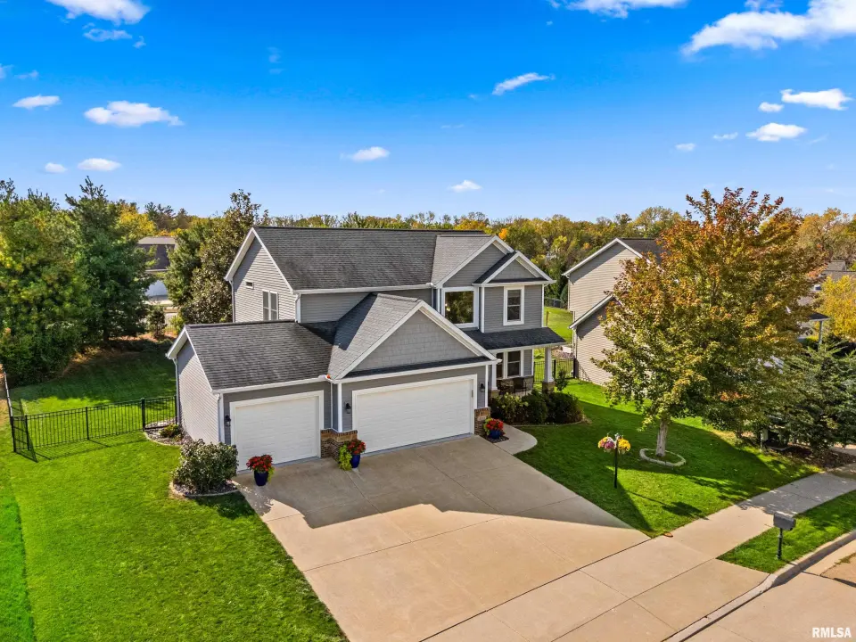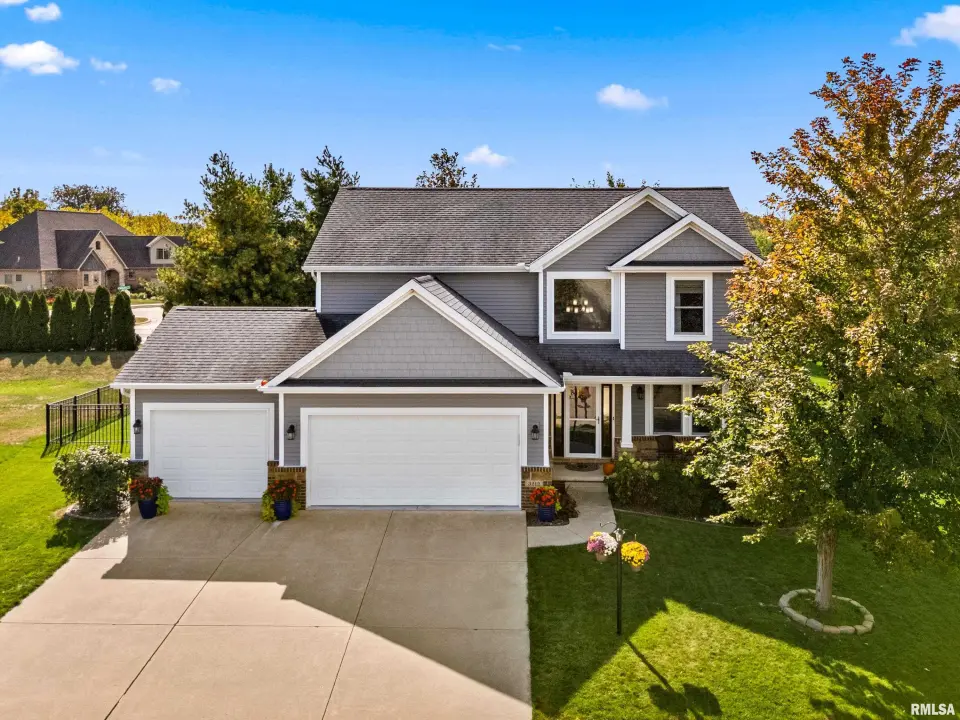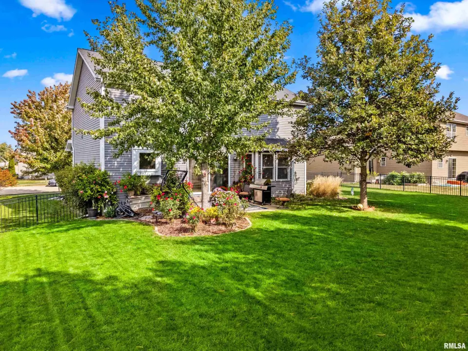 Inside, the cozy great room features a fireplace & opens seamlessly to the dining area. The kitchen features granite countertops, kitchen island, stainless steel appliances, RO system, custom cabinetry, tiled backsplash & tiled flooring. There is a flex room that can be used as dining or living room. Upstairs, you’ll find four spacious bedrooms filled with natural light & generous closet space with laundry conveniently located here. The master suite offers a true retreat with a vaulted ceiling, walk-in closet, & bathroom complete with dual sinks & a standing shower. The finished basement provides additional living space with a recreation room, perfect for entertaining or relaxing. Step outside to enjoy a large fenced-in landscaped backyard with a sprinkler system, vegetable garden & large pine trees for privacy & is ideal for gatherings, playtime, or quiet evenings. With the Rock Island Trail just moments away, this home offers the perfect combination of comfort, style, & convenience in one exceptional package. Updates include basement flooring, garage epoxy flooring, new carpet, fresh paint in ‘25, Refrigerator in ‘24, Dishwasher ‘23, Disposal, Washer & Dryer ‘22. 14-M Standard Home Warranty.
