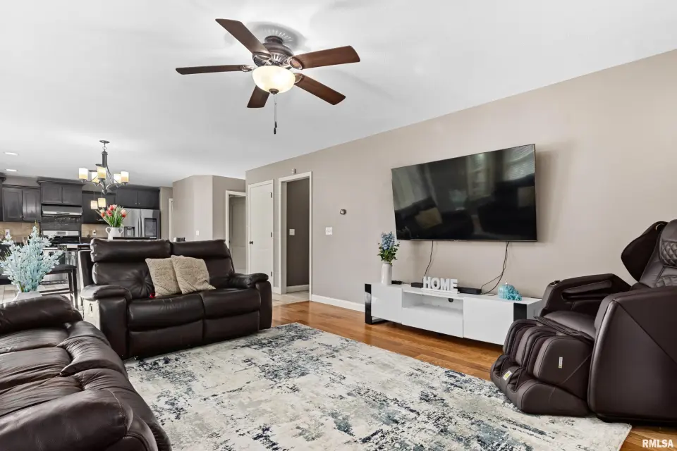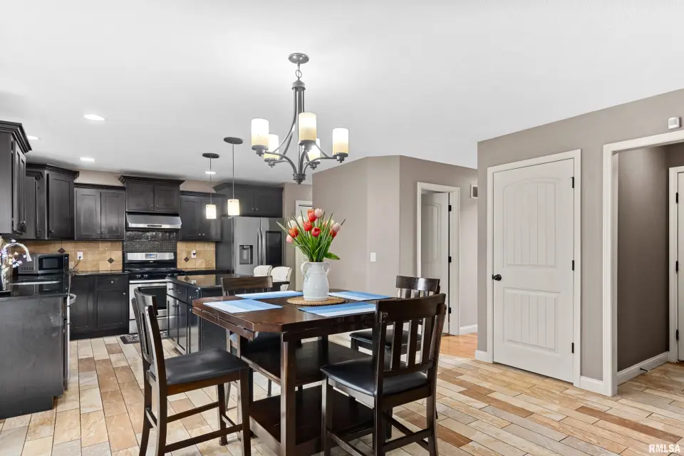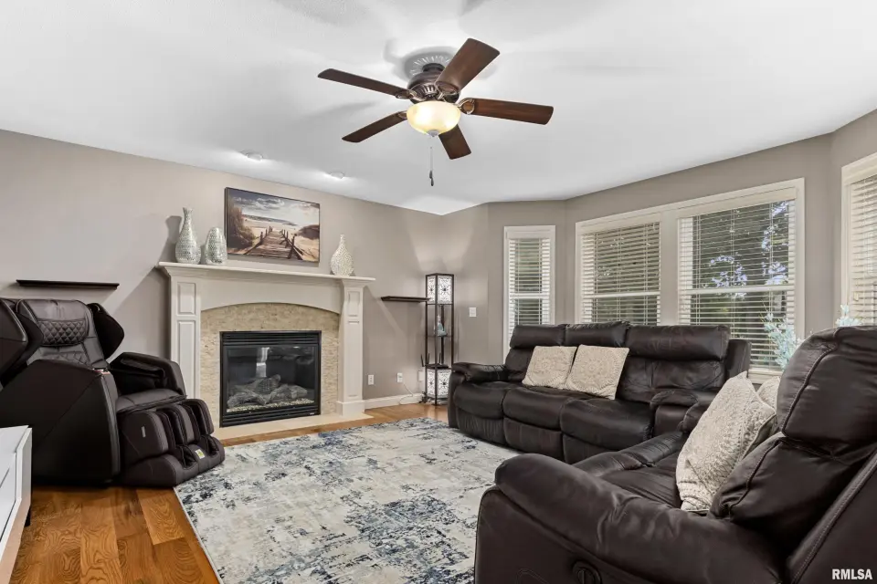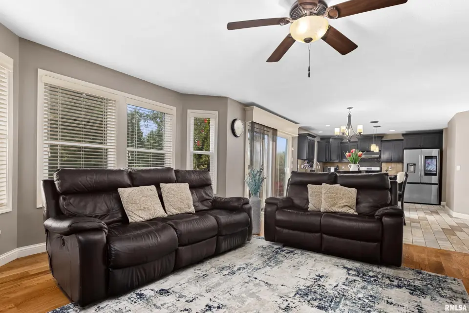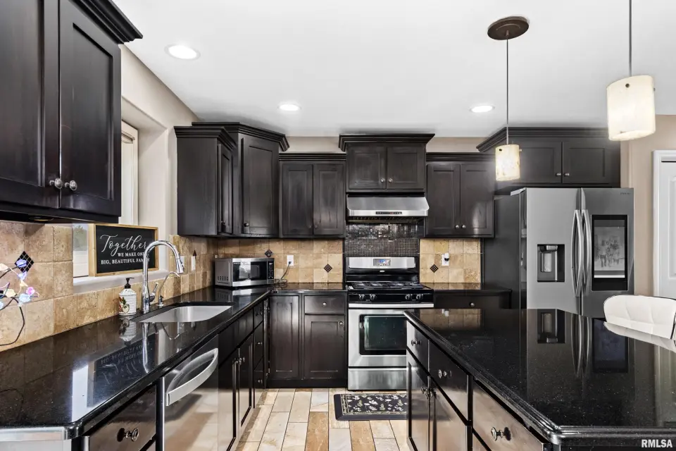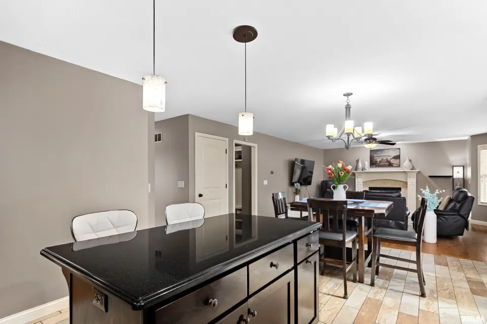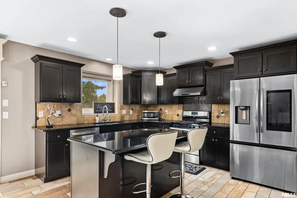 Inside, the cozy great room features a fireplace & opens seamlessly to the dining area. The kitchen features granite countertops, kitchen island, stainless steel appliances, RO system, custom cabinetry, tiled backsplash & tiled flooring. There is a flex room that can be used as dining or living room. Upstairs, you’ll find four spacious bedrooms filled with natural light & generous closet space with laundry conveniently located here. The master suite offers a true retreat with a vaulted ceiling, walk-in closet, & bathroom complete with dual sinks & a standing shower. The finished basement provides additional living space with a recreation room, perfect for entertaining or relaxing. Step outside to enjoy a large fenced-in landscaped backyard with a sprinkler system, vegetable garden & large pine trees for privacy & is ideal for gatherings, playtime, or quiet evenings. With the Rock Island Trail just moments away, this home offers the perfect combination of comfort, style, & convenience in one exceptional package. Updates include basement flooring, garage epoxy flooring, new carpet, fresh paint in ‘25, Refrigerator in ‘24, Dishwasher ‘23, Disposal, Washer & Dryer ‘22. 14-M Standard Home Warranty.