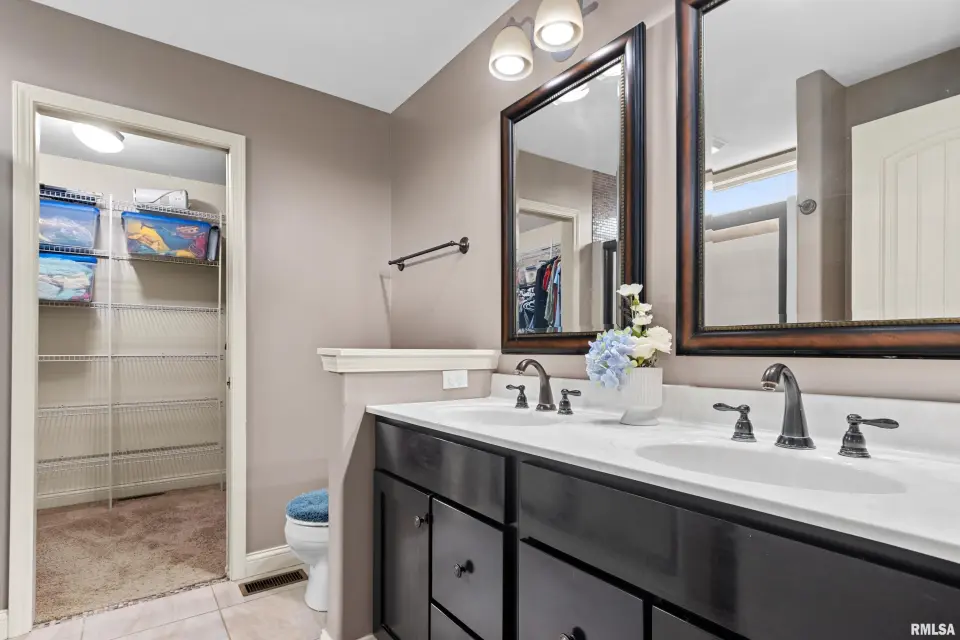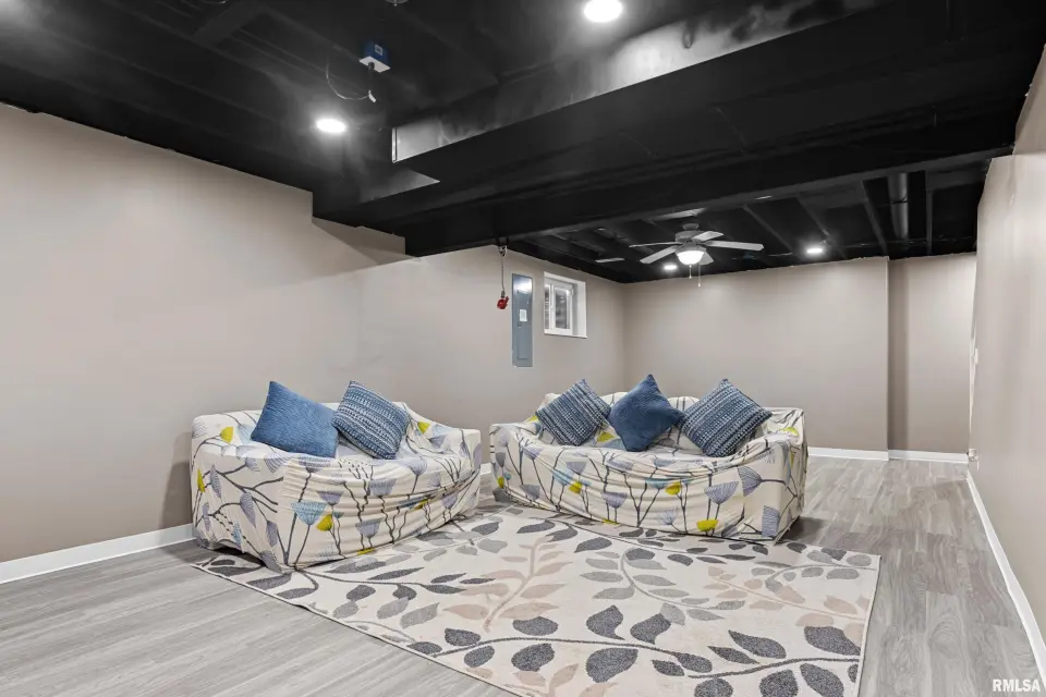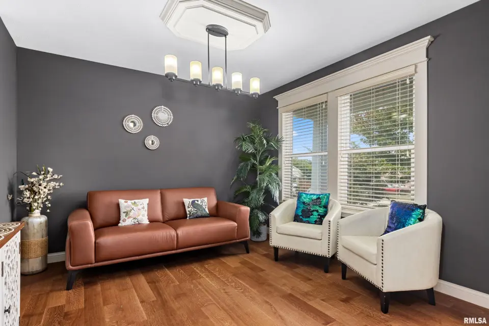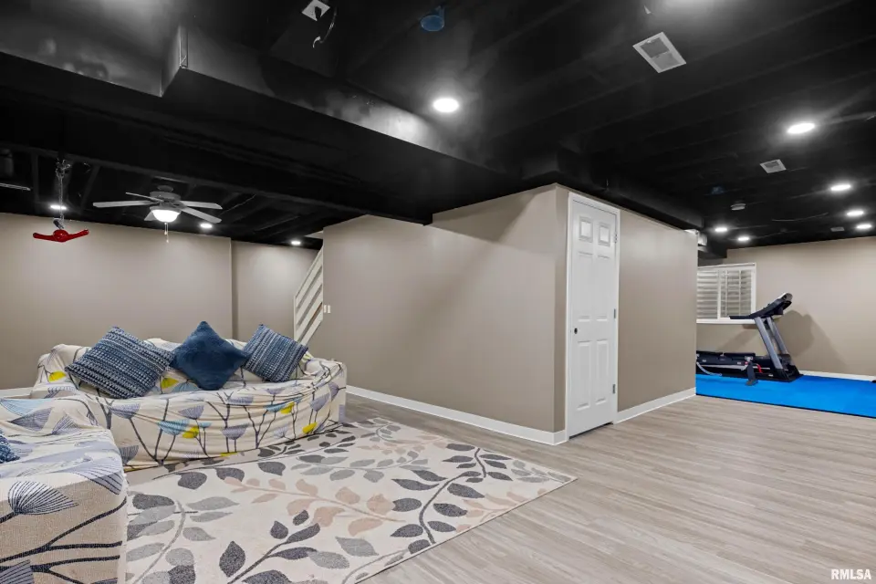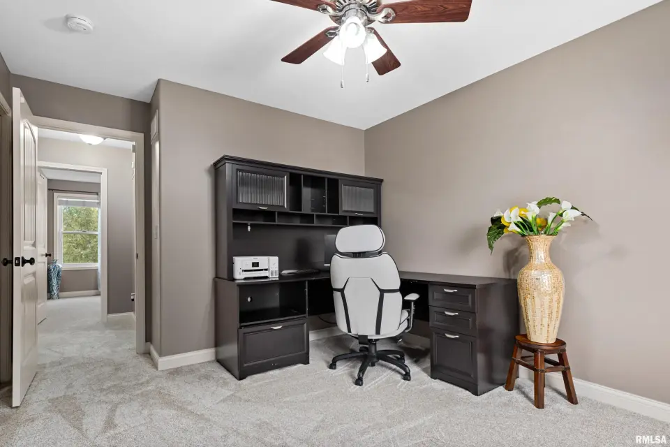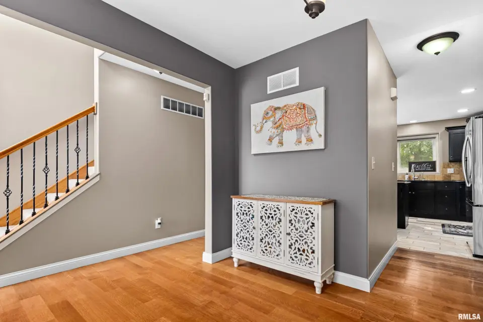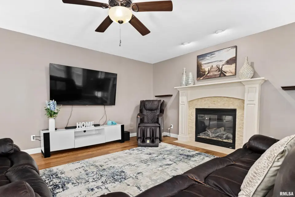 Inside, the cozy great room features a fireplace & opens seamlessly to the dining area. The kitchen features granite countertops, kitchen island, stainless steel appliances, RO system, custom cabinetry, tiled backsplash & tiled flooring. There is a flex room that can be used as dining or living room. Upstairs, you’ll find four spacious bedrooms filled with natural light & generous closet space with laundry conveniently located here. The master suite offers a true retreat with a vaulted ceiling, walk-in closet, & bathroom complete with dual sinks & a standing shower. The finished basement provides additional living space with a recreation room, perfect for entertaining or relaxing. Step outside to enjoy a large fenced-in landscaped backyard with a sprinkler system, vegetable garden & large pine trees for privacy & is ideal for gatherings, playtime, or quiet evenings. With the Rock Island Trail just moments away, this home offers the perfect combination of comfort, style, & convenience in one exceptional package. Updates include basement flooring, garage epoxy flooring, new carpet, fresh paint in ‘25, Refrigerator in ‘24, Dishwasher ‘23, Disposal, Washer & Dryer ‘22. 14-M Standard Home Warranty.