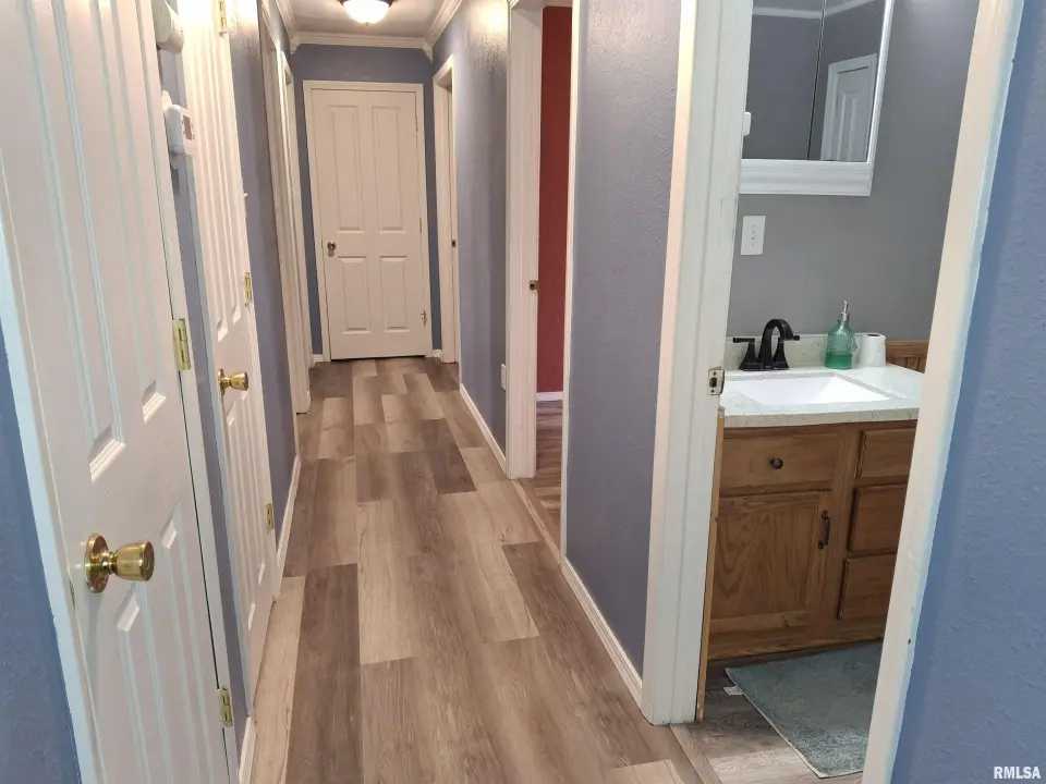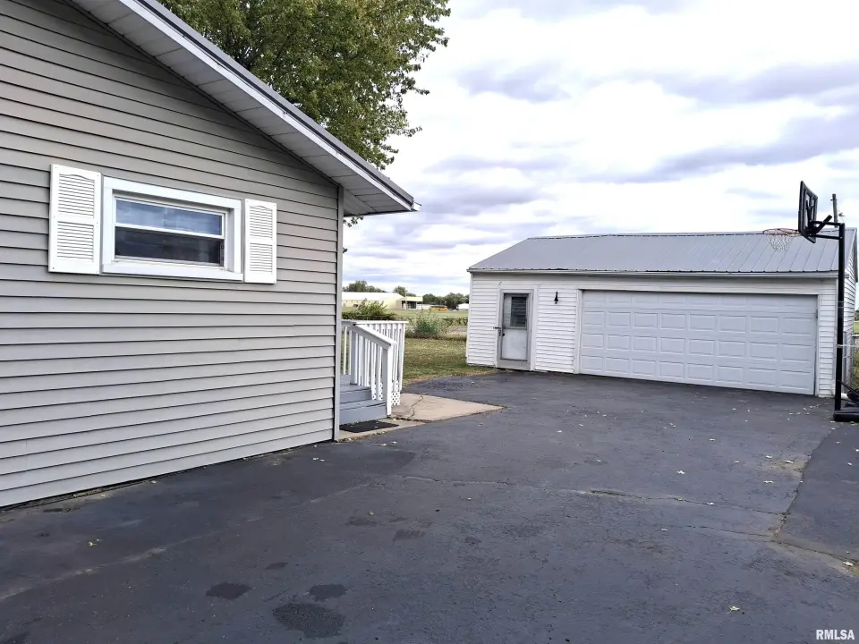 New luxury vinyl plank floor in living room (Oct. 2025) and newer luxury vinyl plank in 2 bedrooms. Furnace, water heater and metal roof new in 2022.Front and back decks. Extra-large corner lot. Two plus car detached garage with storage area and extra parking in driveway. Property "Sold As Is".
